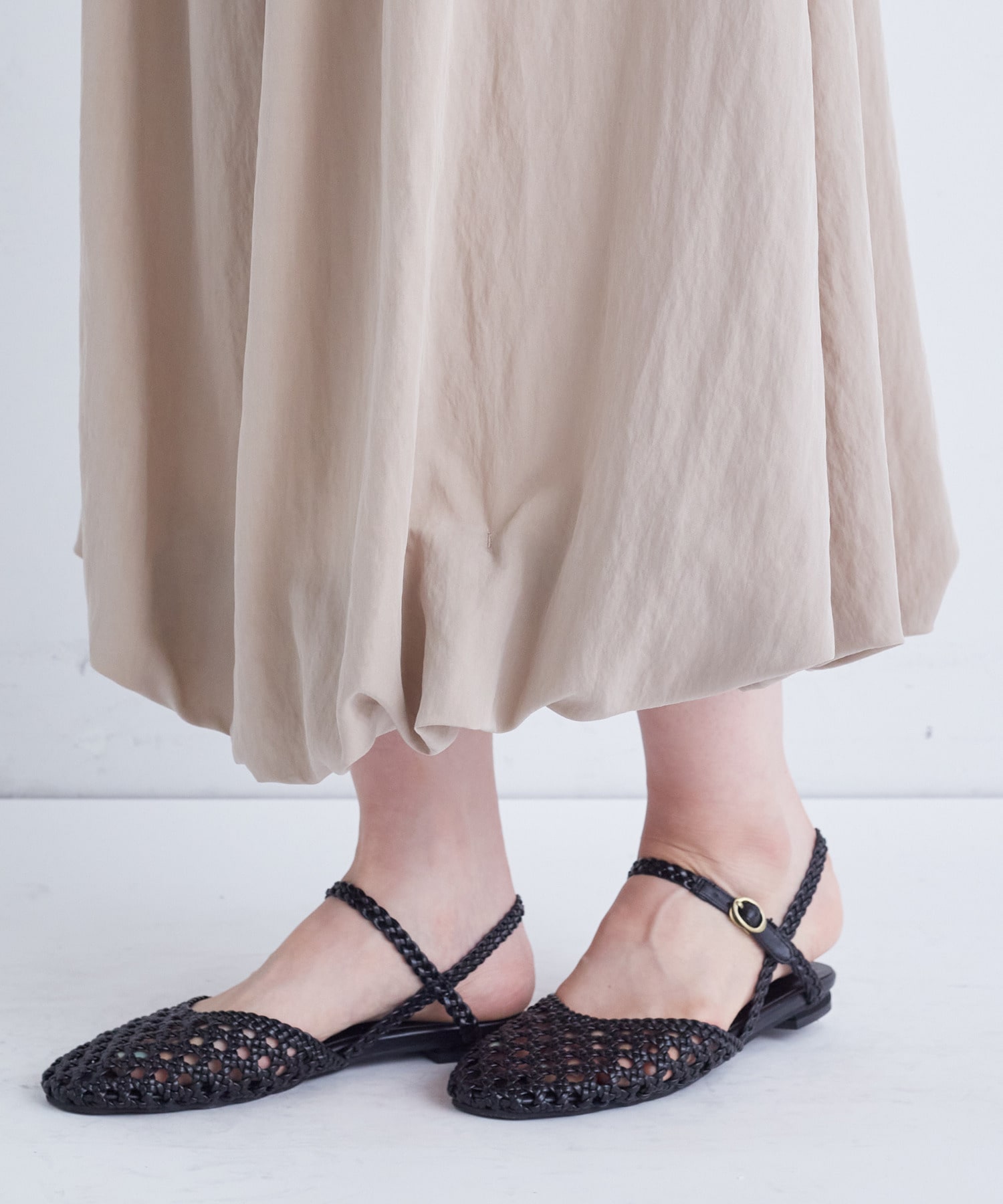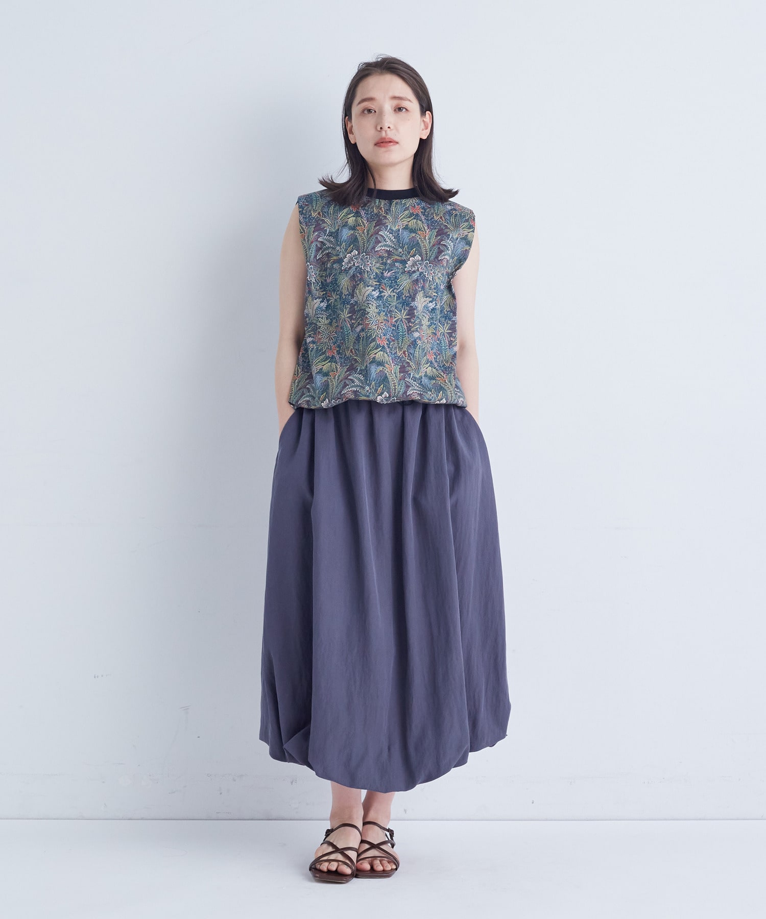 バルーンシルエットですが落ち感のある素材ですので甘くなりすぎないのもポイントです。