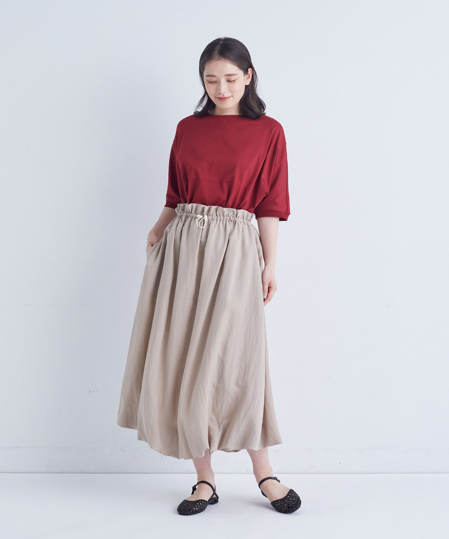 裾内側にゴムを通したバルーンスカートです。