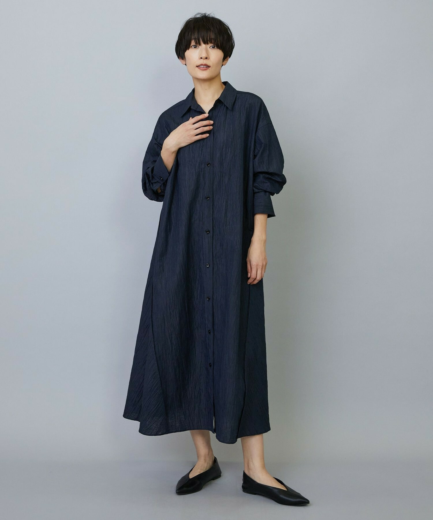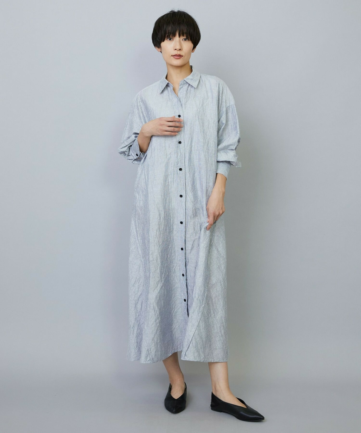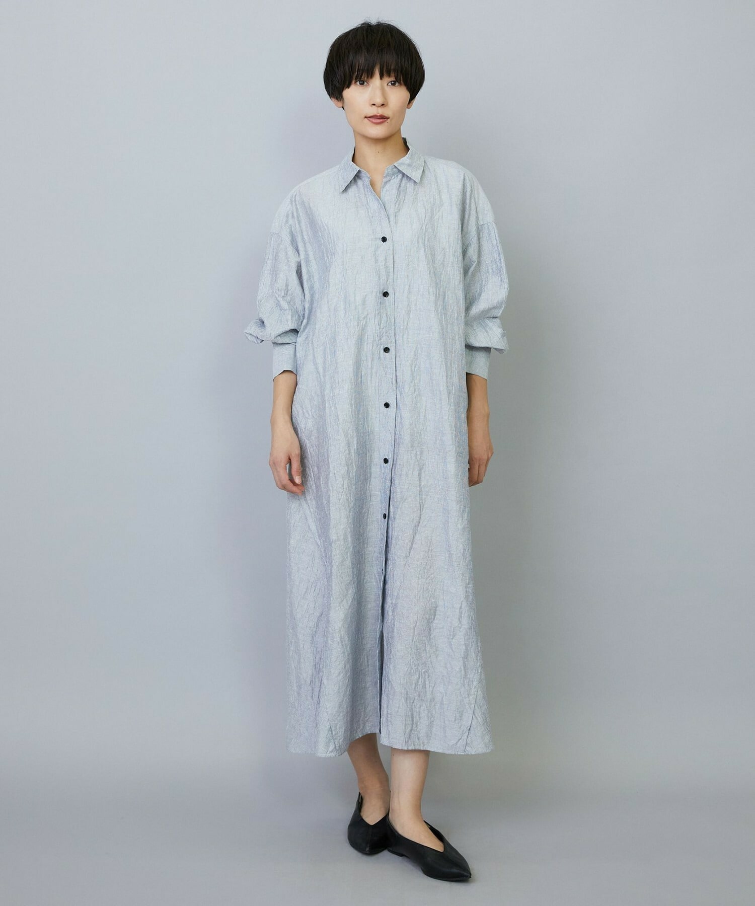 • 【MOGA】リネンワッシャーフレアーシャツワンピース 詳細画像 ブルー 13