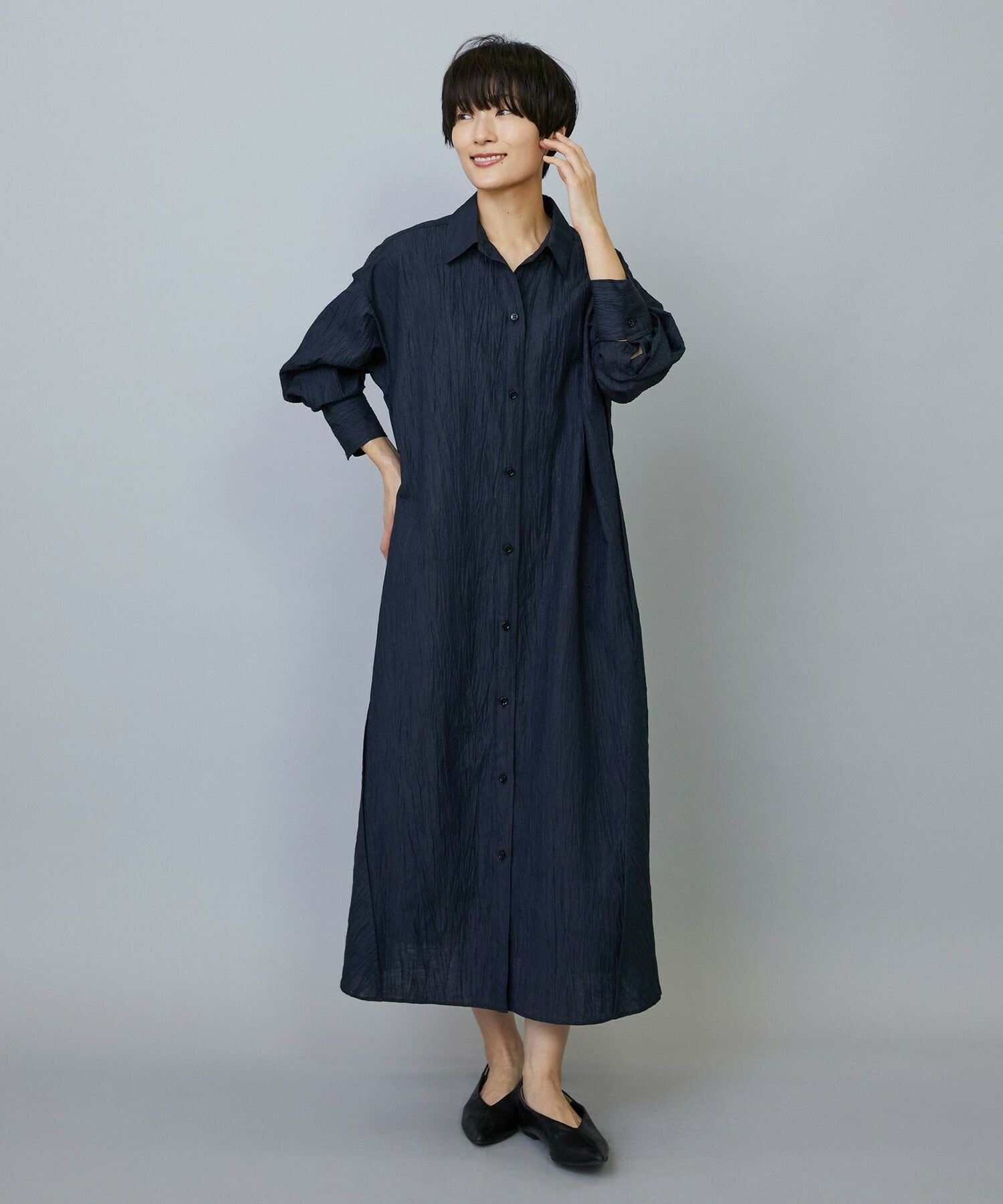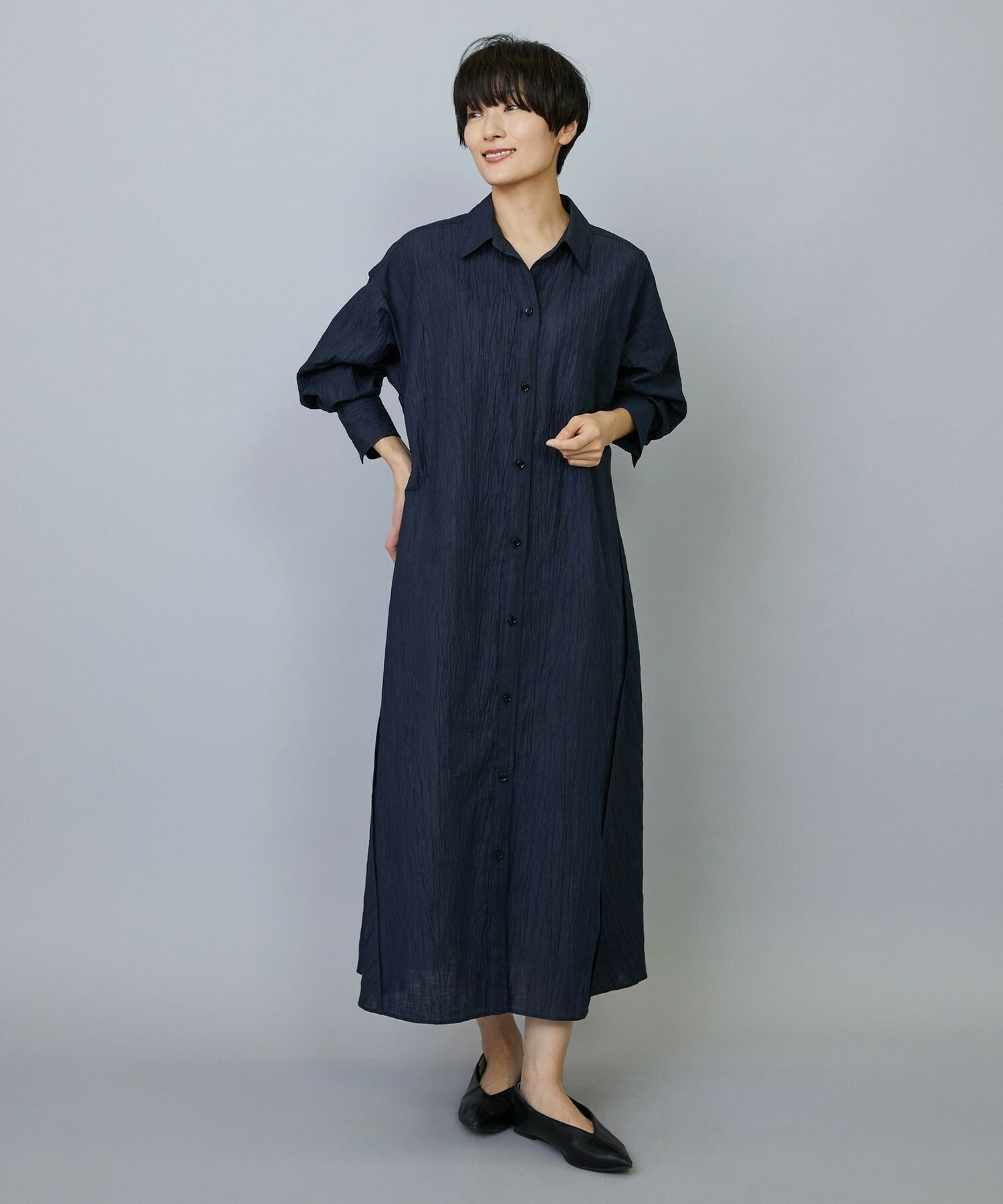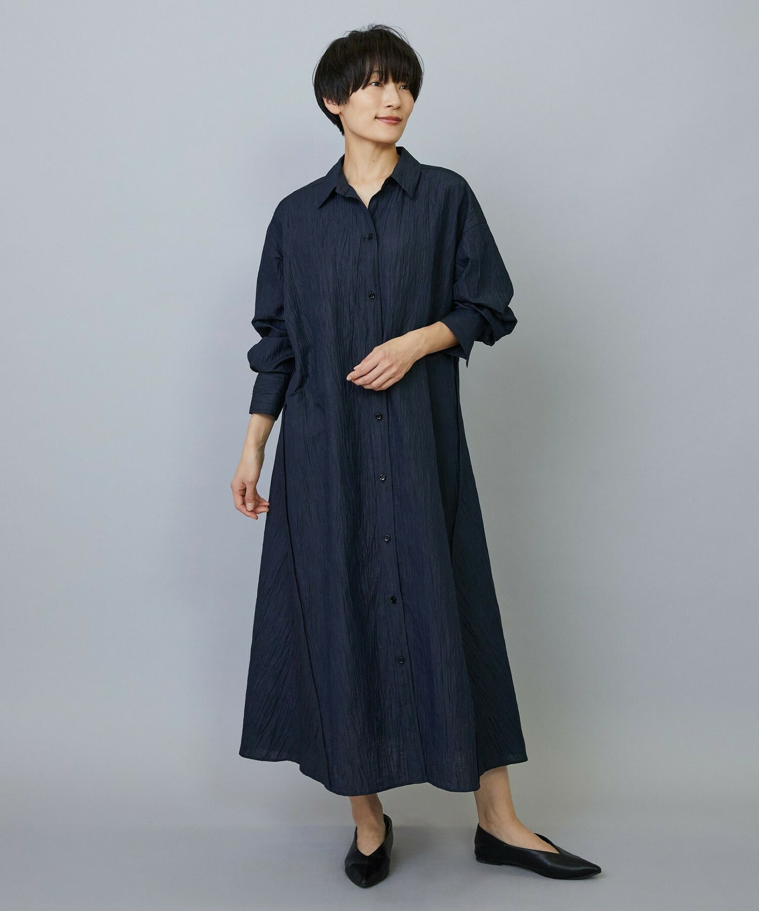 • 【MOGA】リネンワッシャーフレアーシャツワンピース 詳細画像 ブルー 13
