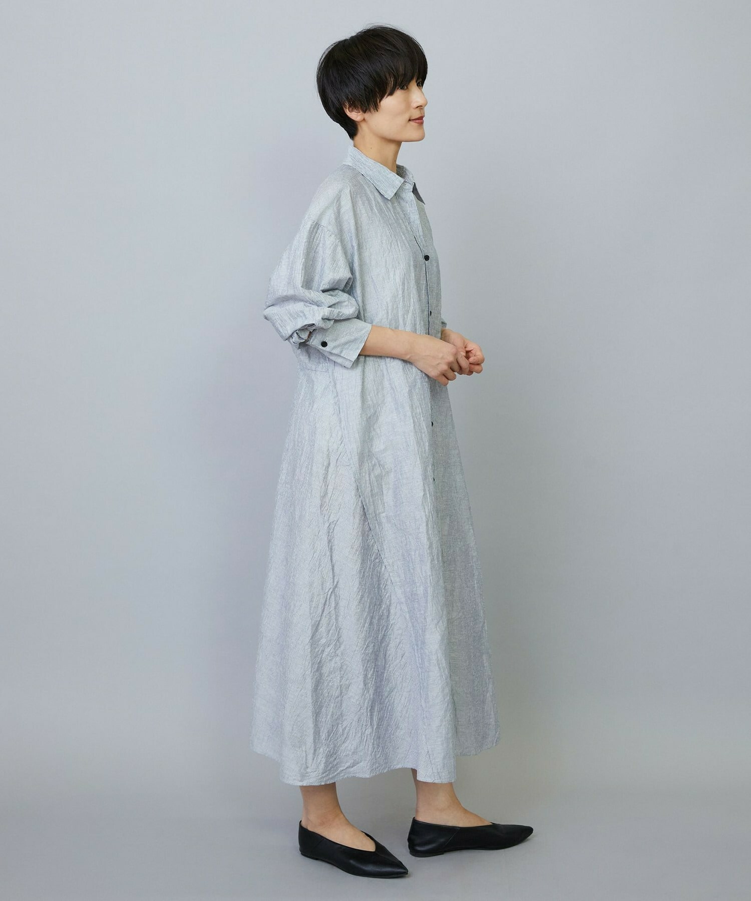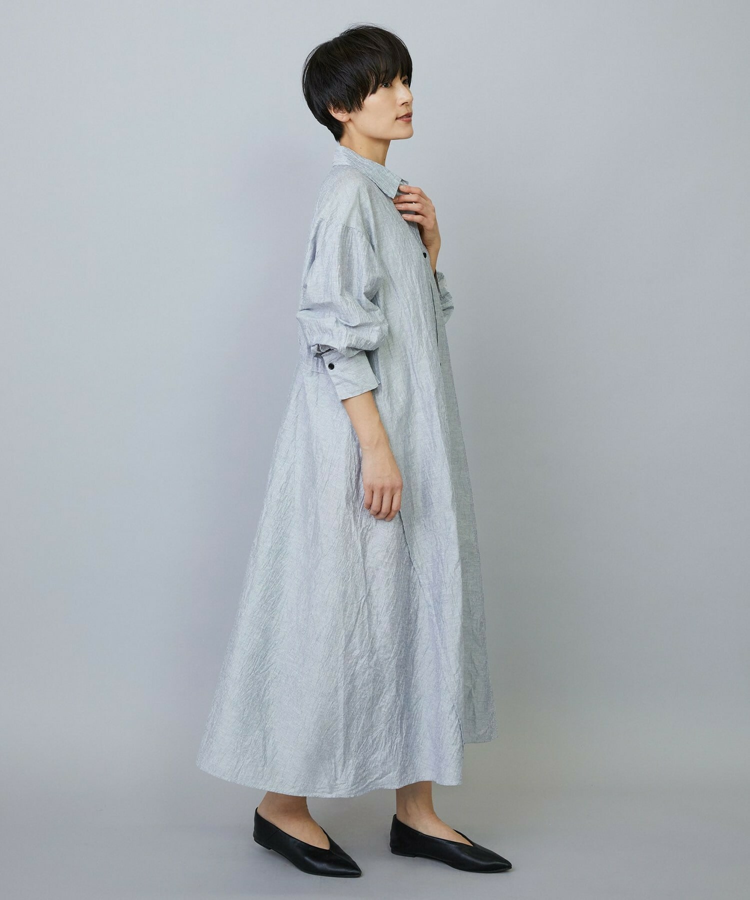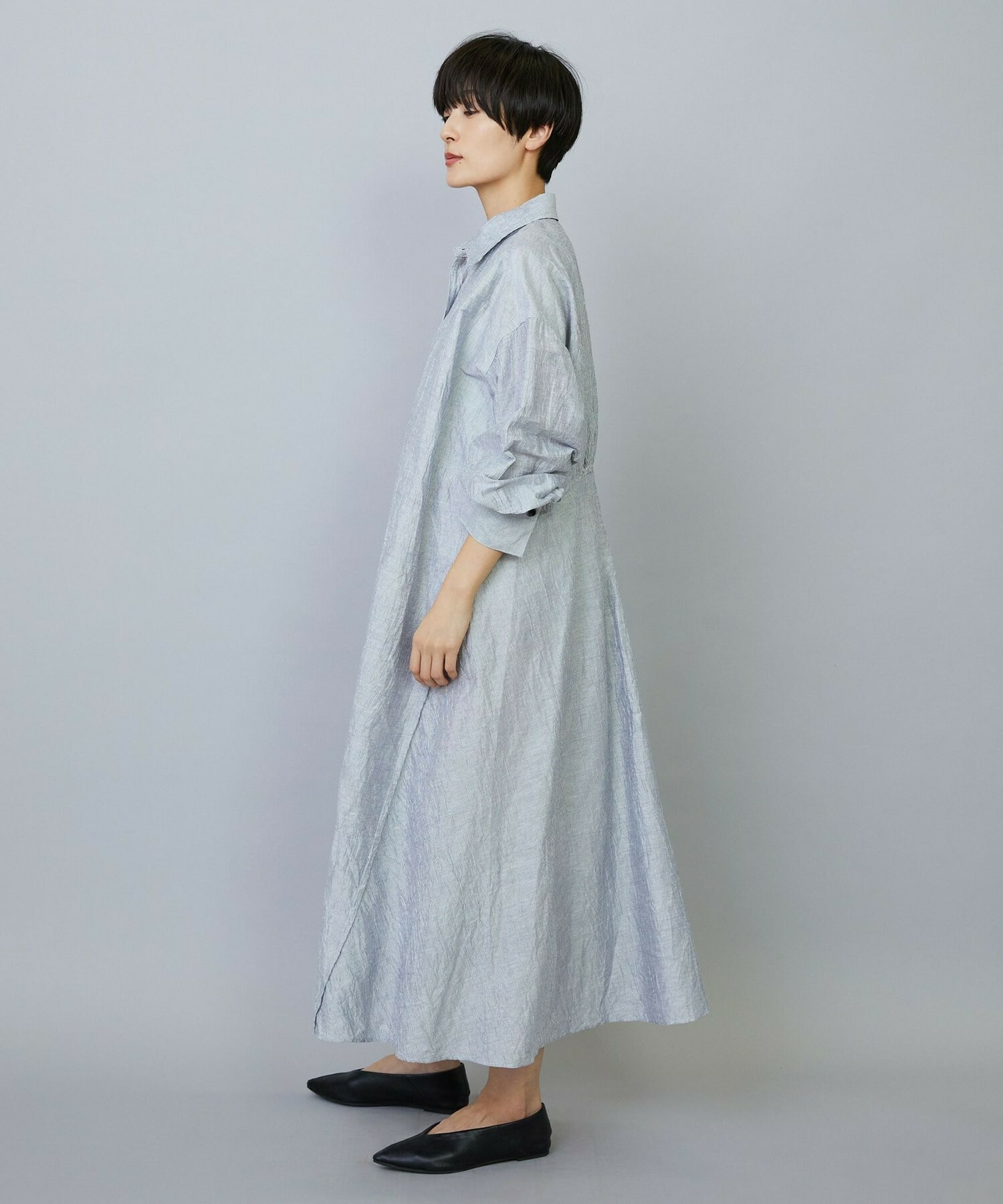 • 【MOGA】リネンワッシャーフレアーシャツワンピース 詳細画像 ブルー 6