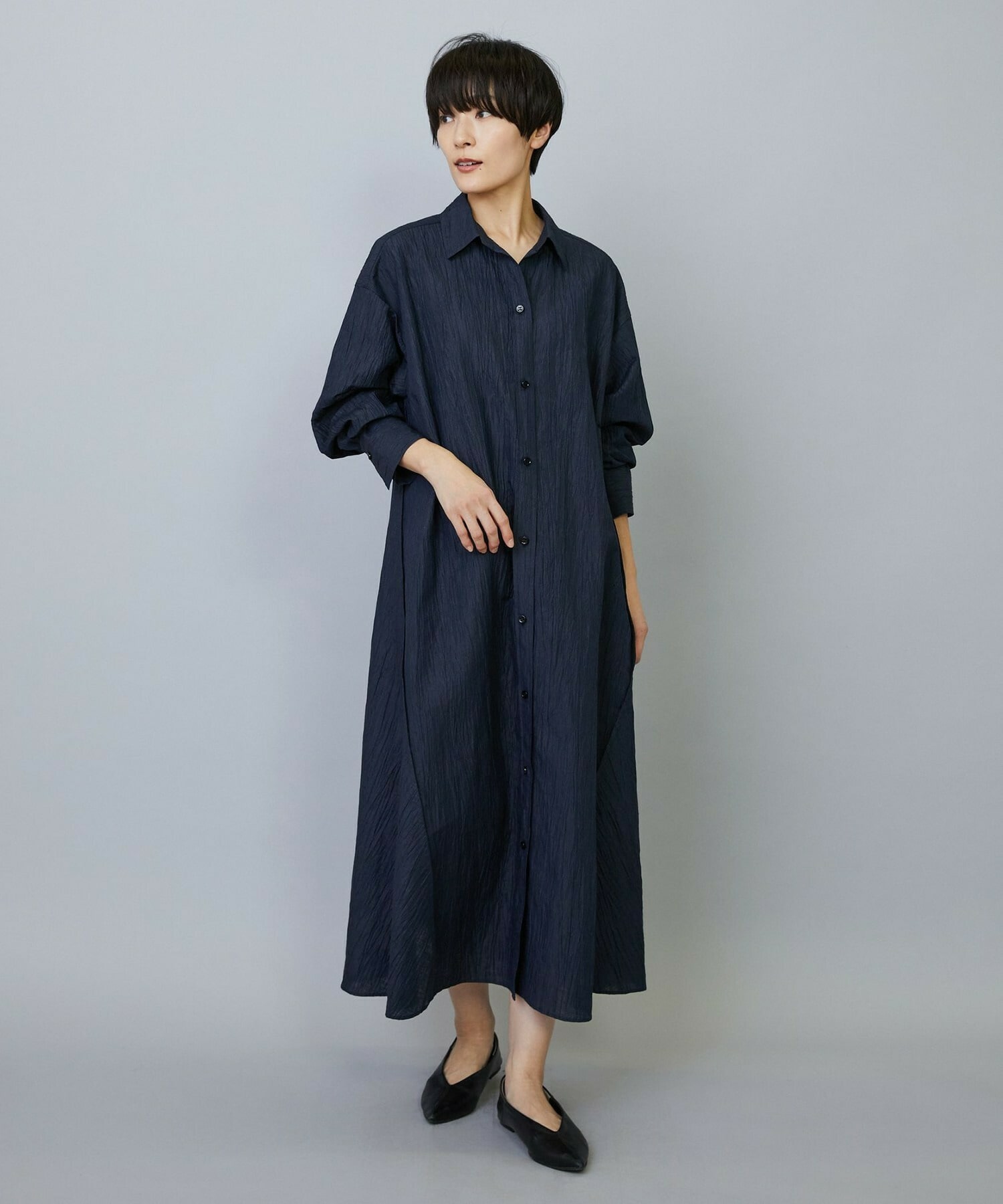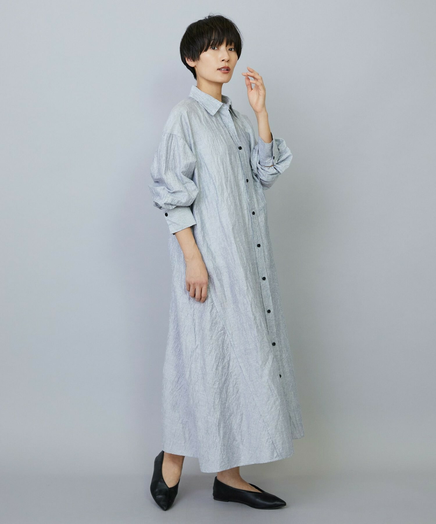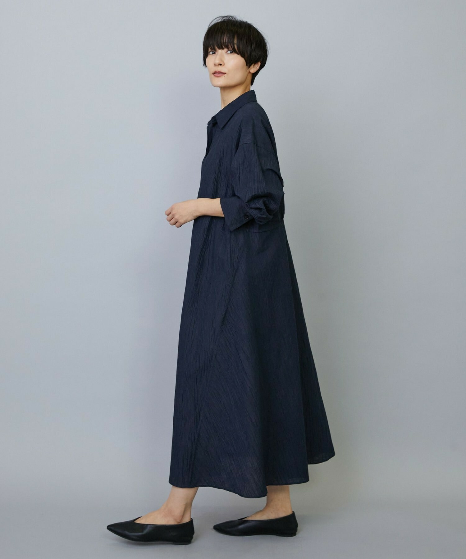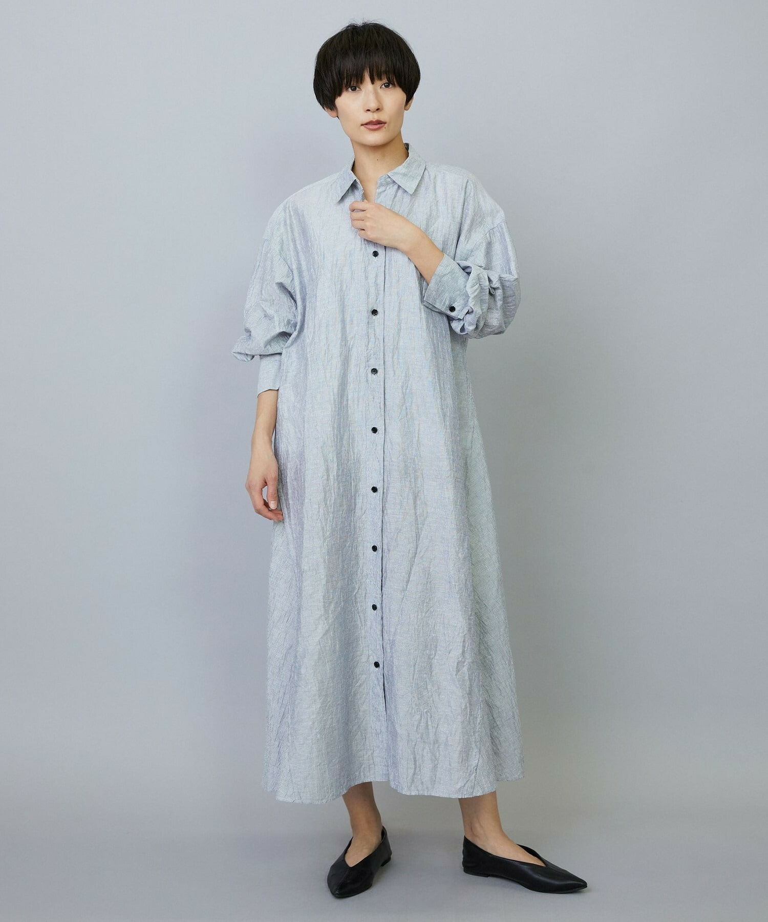 • 【MOGA】リネンワッシャーフレアーシャツワンピース 詳細画像 ブルー 6