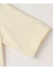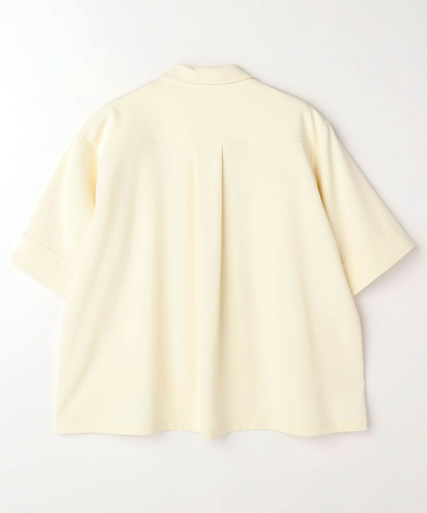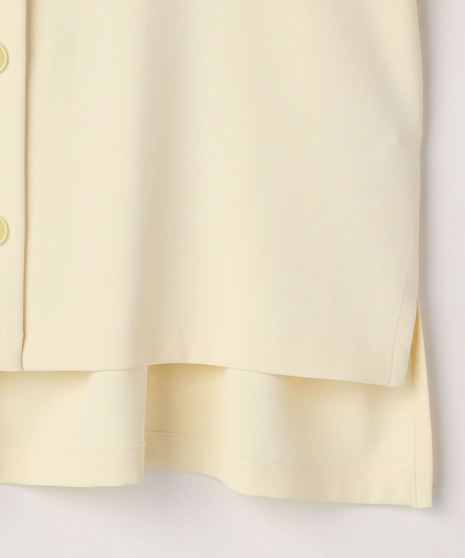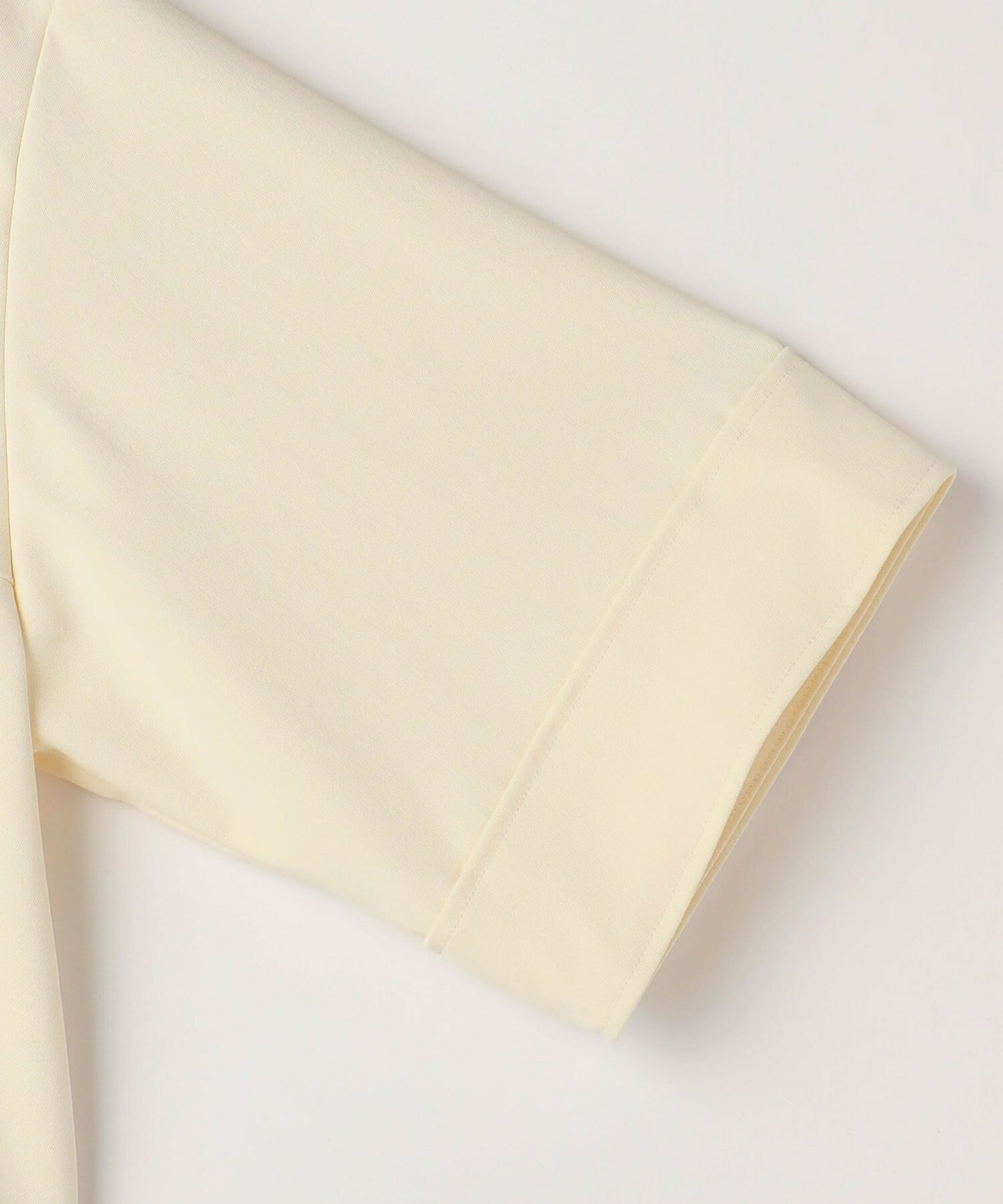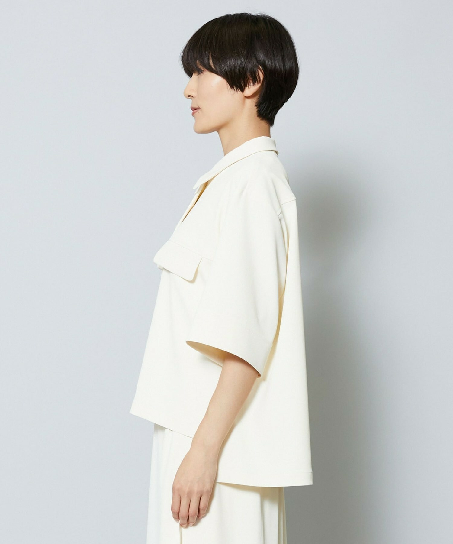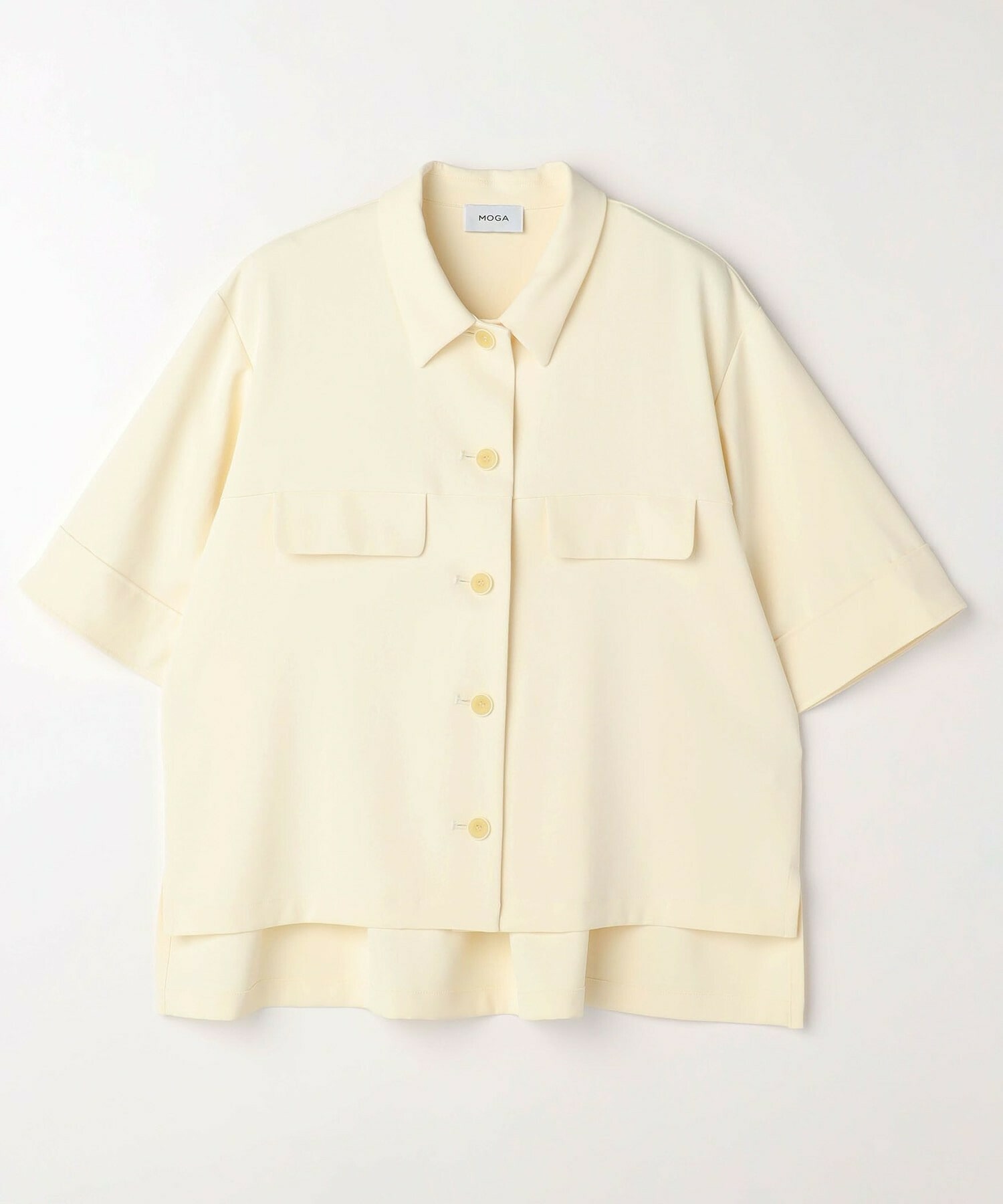 ジャケットライクな半袖シャツです。少し大きめのボタンにフェイクフラップを取り付け、半袖ながらもキレイめな大人な雰囲気のデザインにしました。前だけインしていただいても雰囲気が出るように、前後の着丈に差寸をつけてインしやすいようにスリットも入れています。