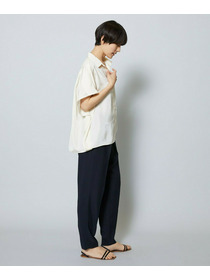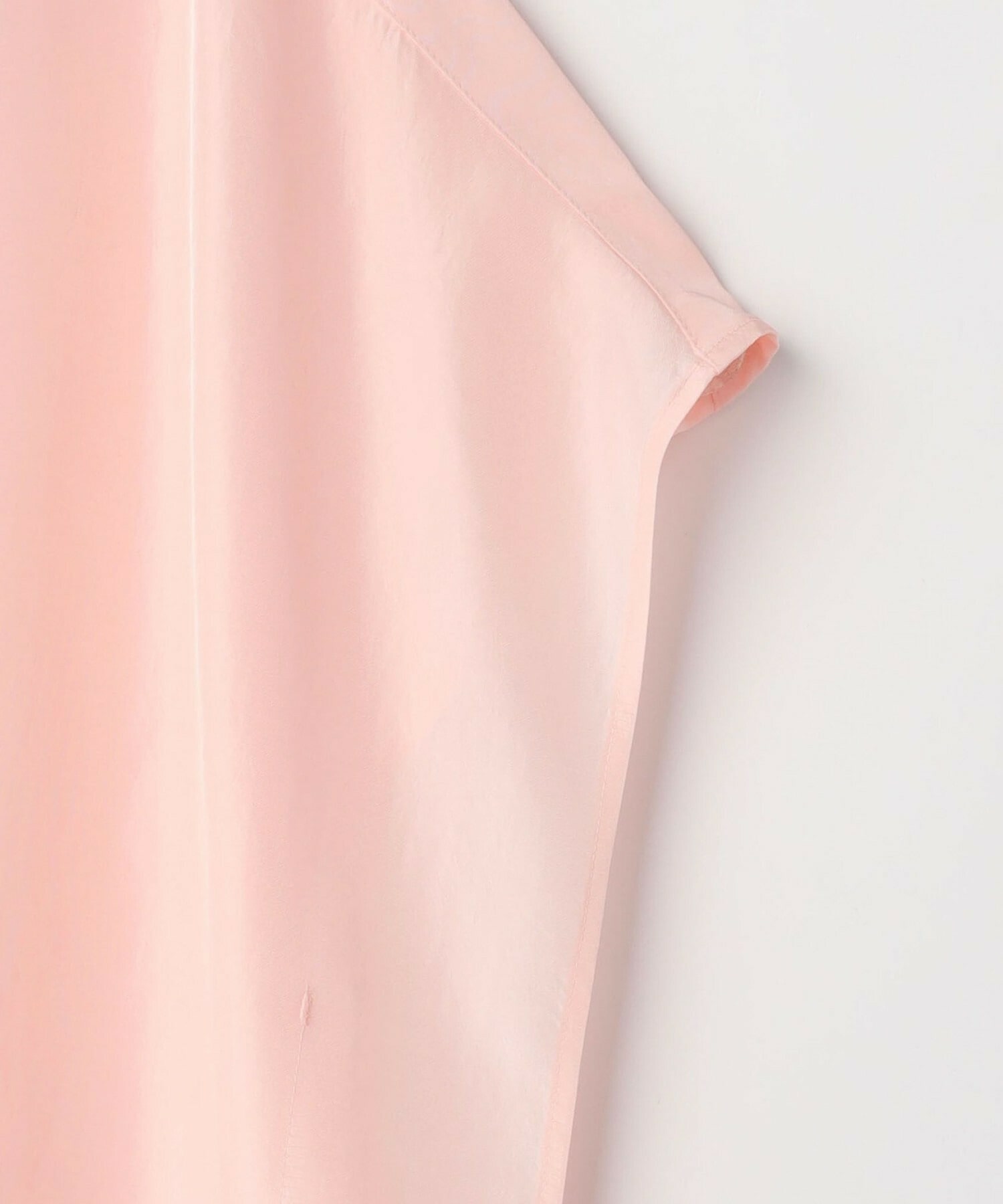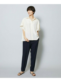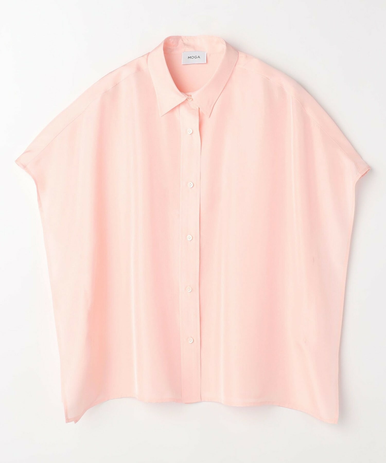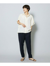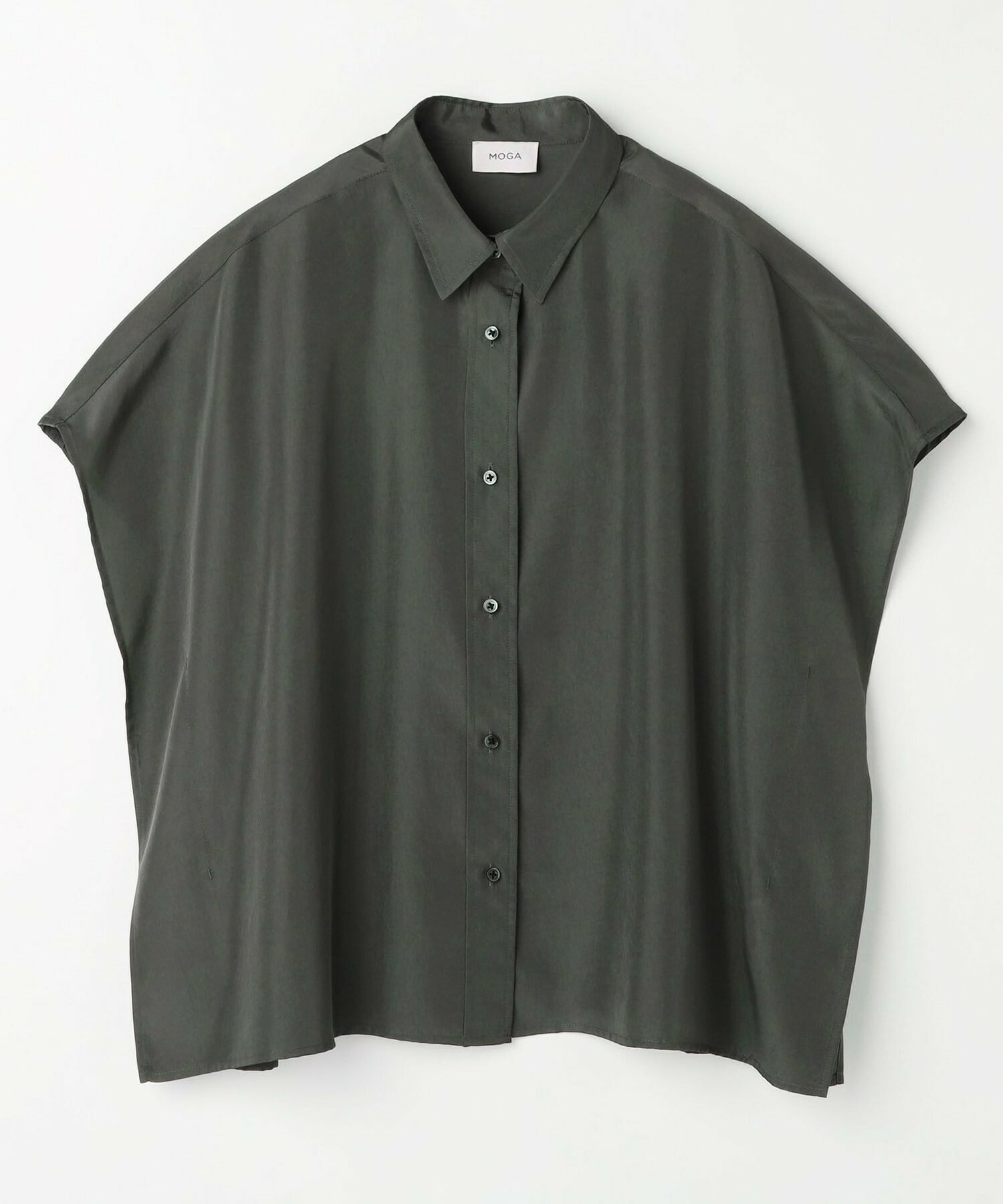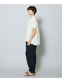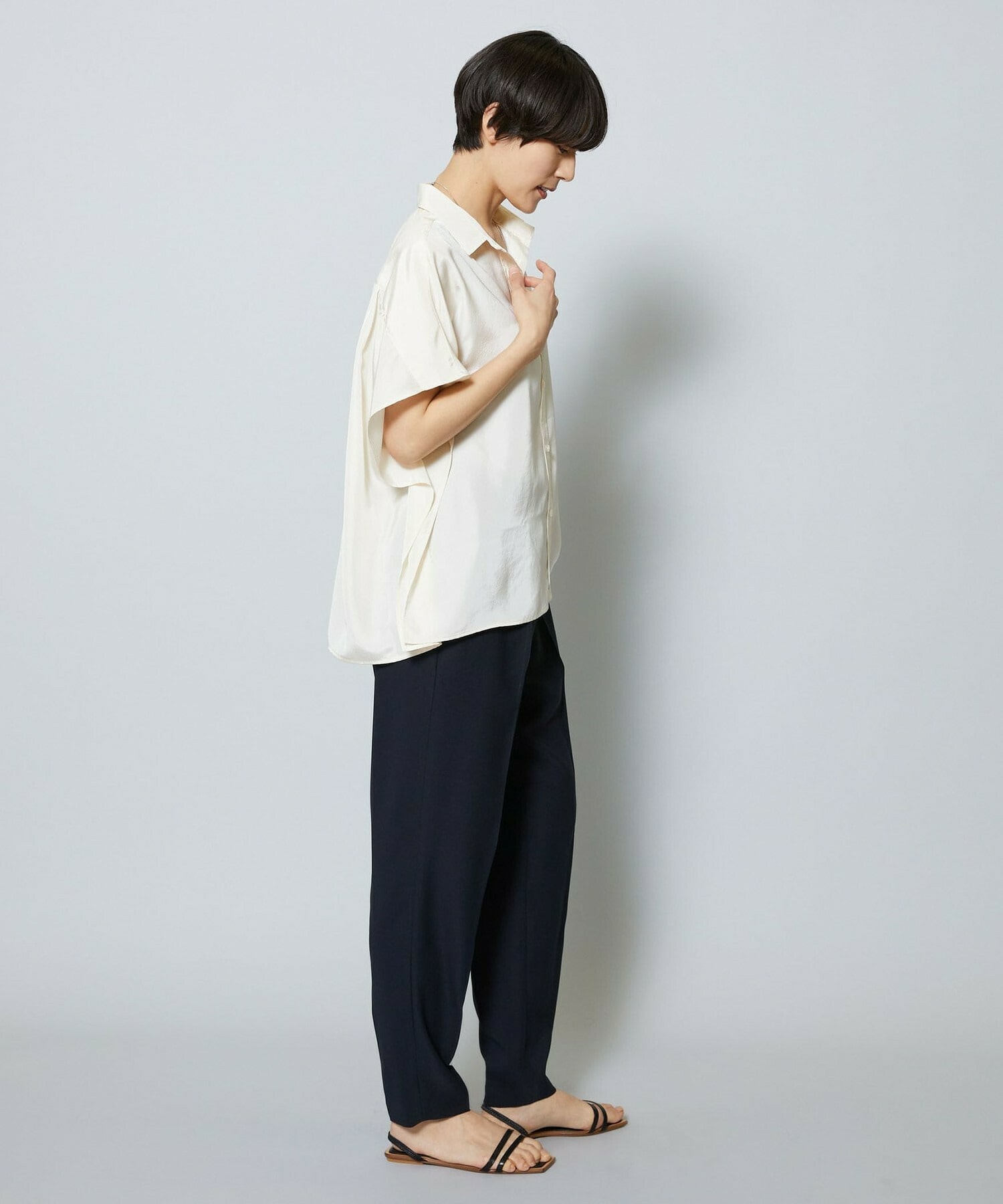 1枚着で映えるケープシャツです。暑い日にはサラッと羽織っていただけるアイテムです。二の腕を強調しないデザインになっており、アームホールがない設計なので汗染みも気になりにくいです。サイドにはケープならではのドレープ感がアクセントに。襟や前立てはしっかり決めているので、緩くなりすぎないキレイめな見え方です。