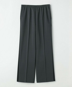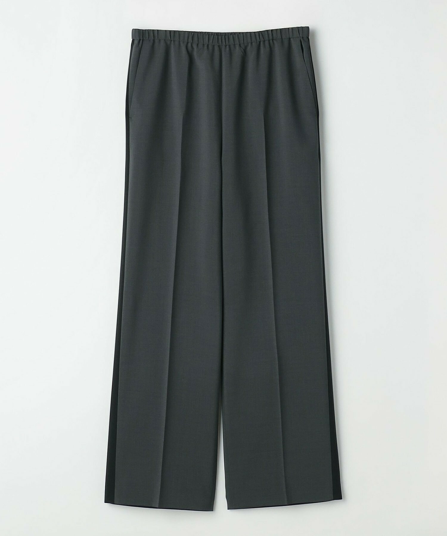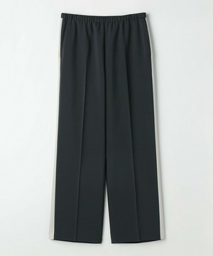 切り替えで表現した、ラインパンツ。太すぎないストレートシルエットで、トップスを選ばずバランスの取りやすい形です。少し太めに入れたラインでスポーティさを取り入れつつ、シックな素材と色目なので、きれい目に着こなせる一枚です。