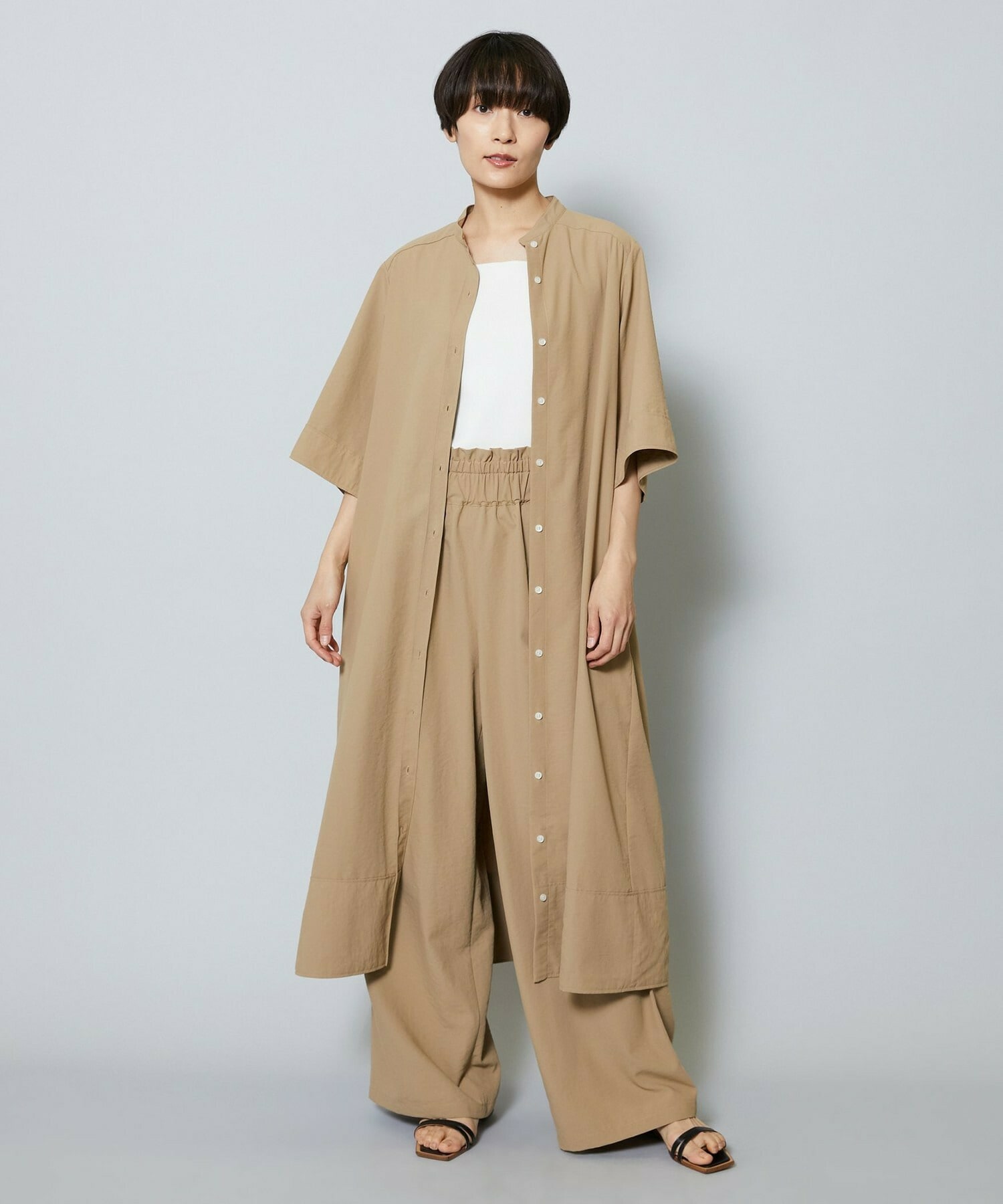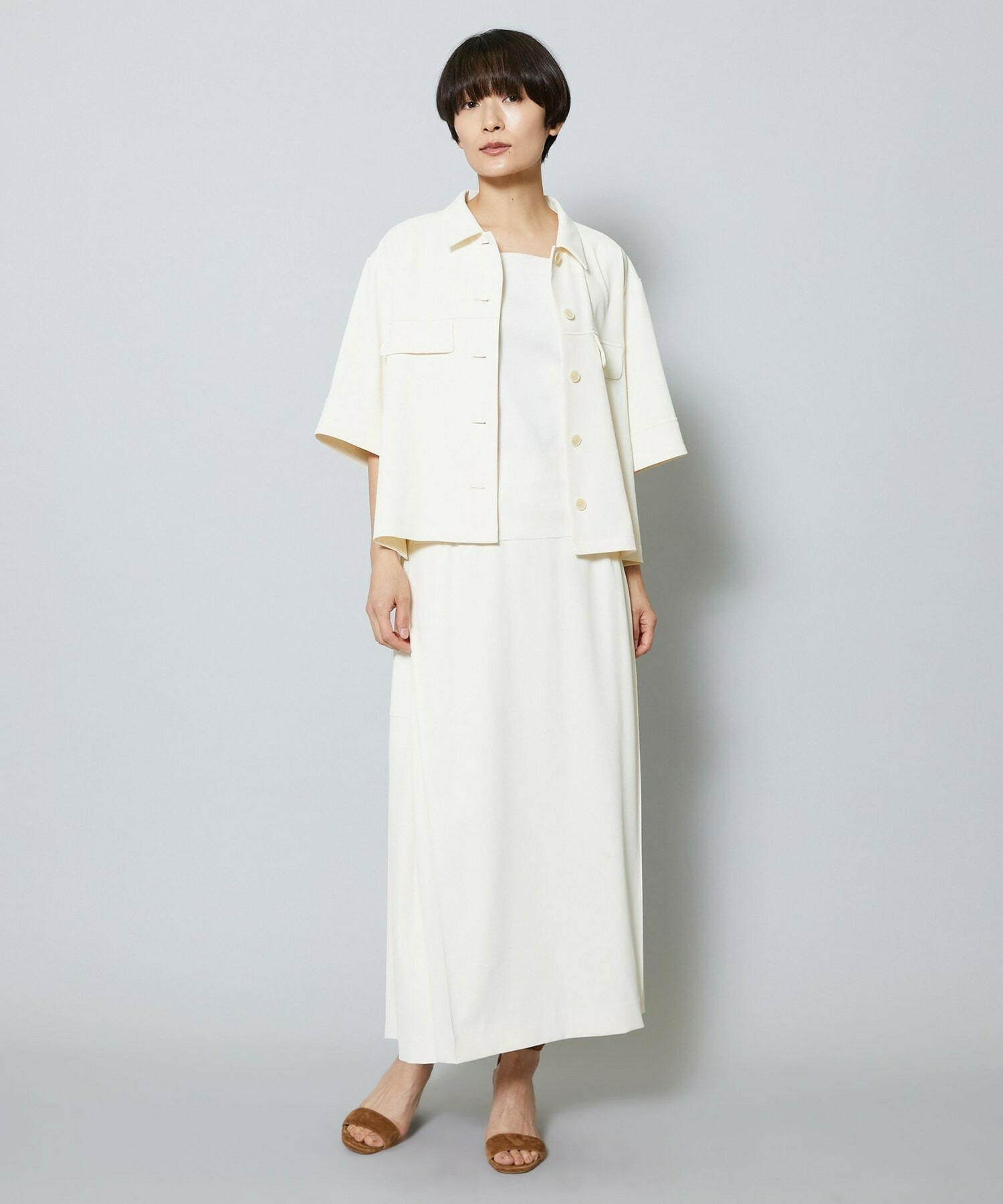 シャツやジャケットを羽織って、ネックデザインをちらっと覗かせたトレンド感あるスタイルが完成します。