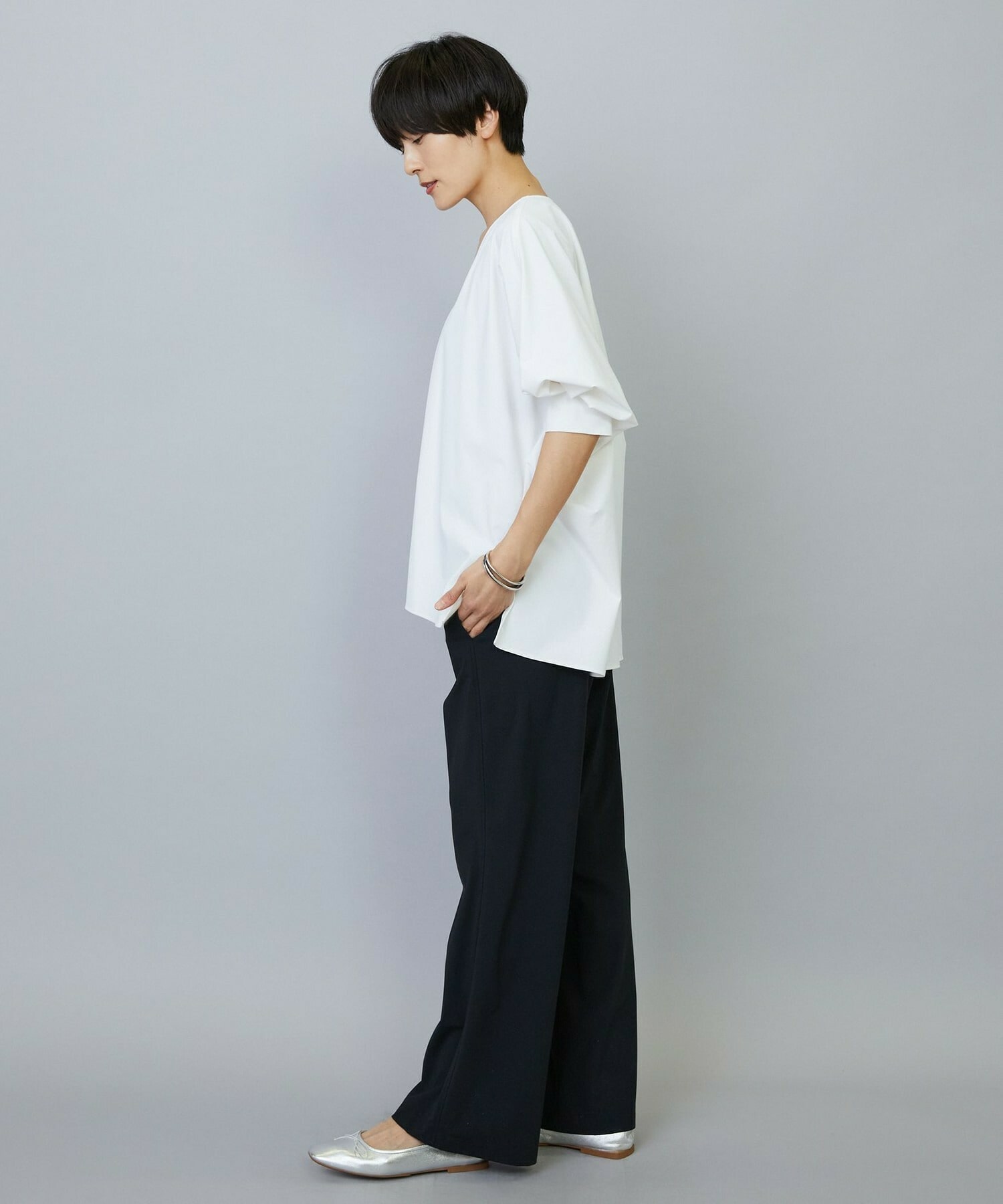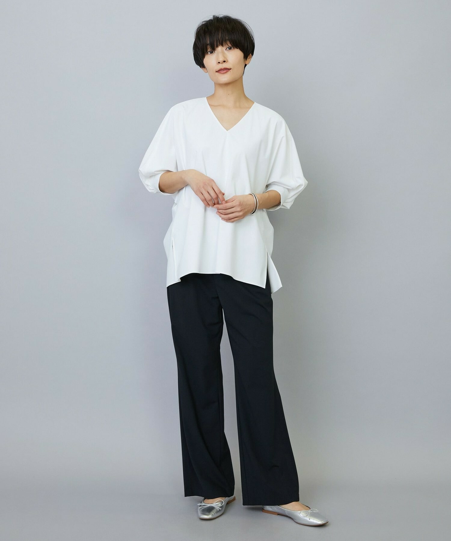 • 【MOGA】クールトリコットVネックドルマンスリーブトップス 詳細画像 ホワイト 1