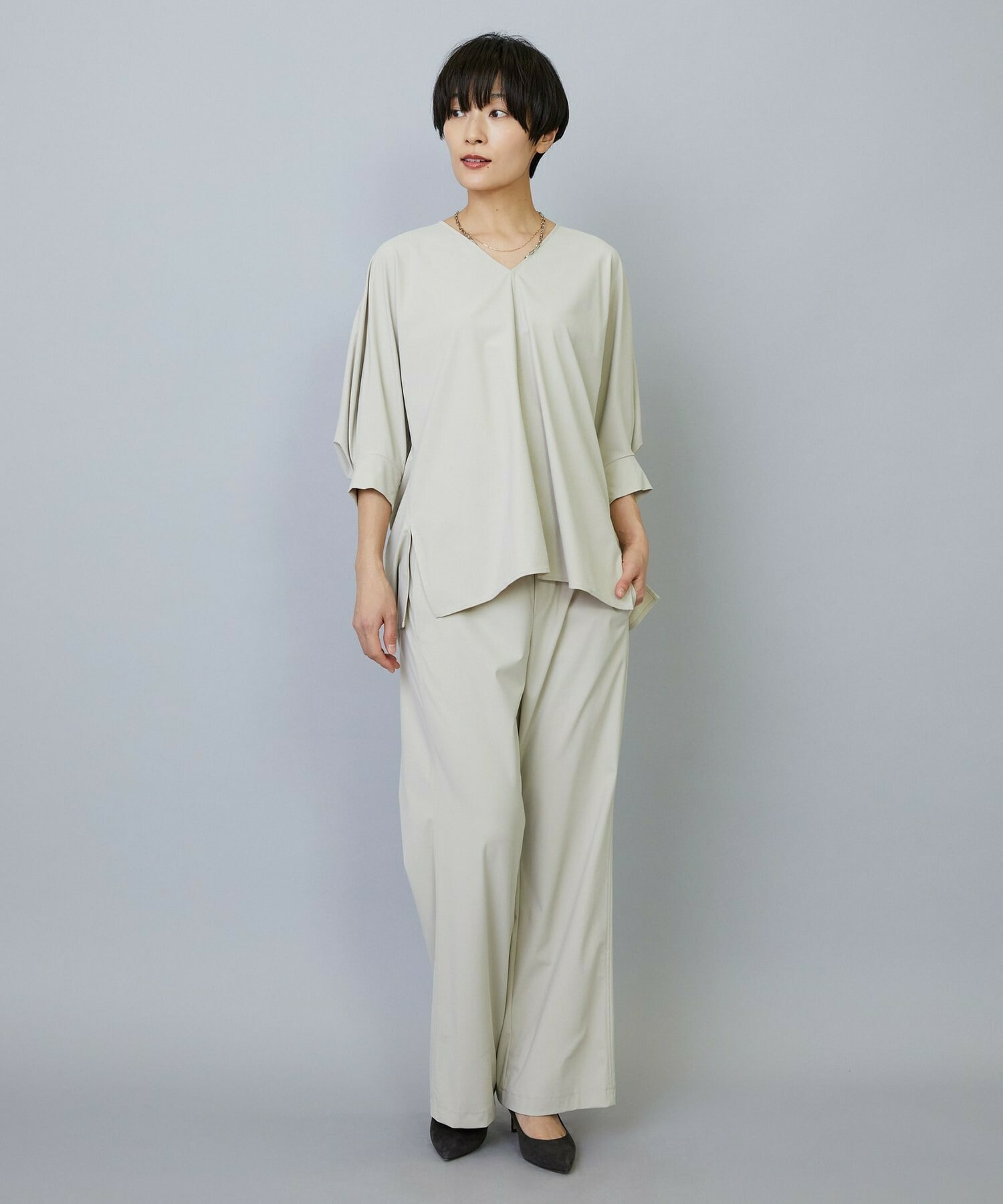 • 【MOGA】クールトリコットVネックドルマンスリーブトップス 詳細画像 ライトベージュ 2