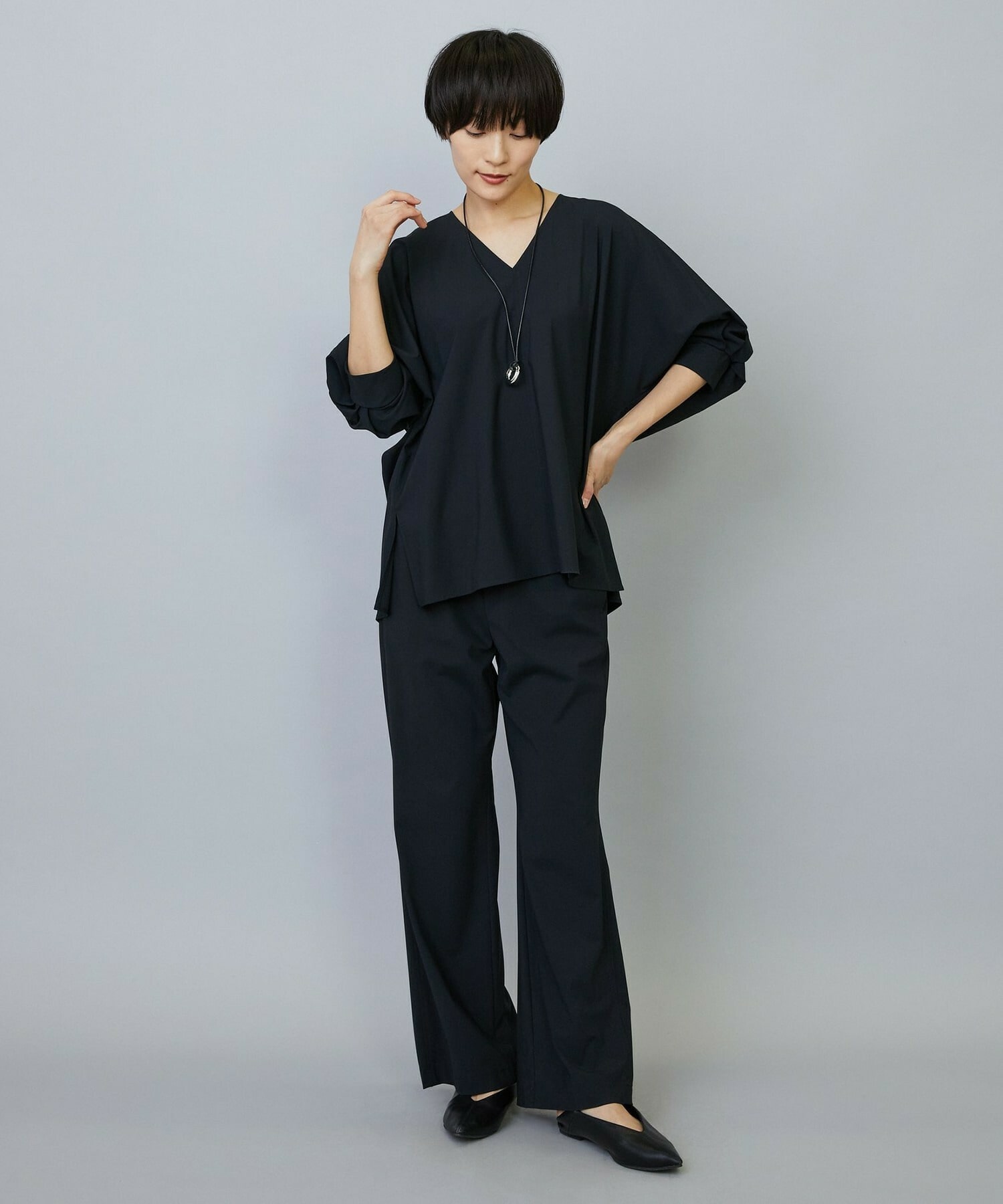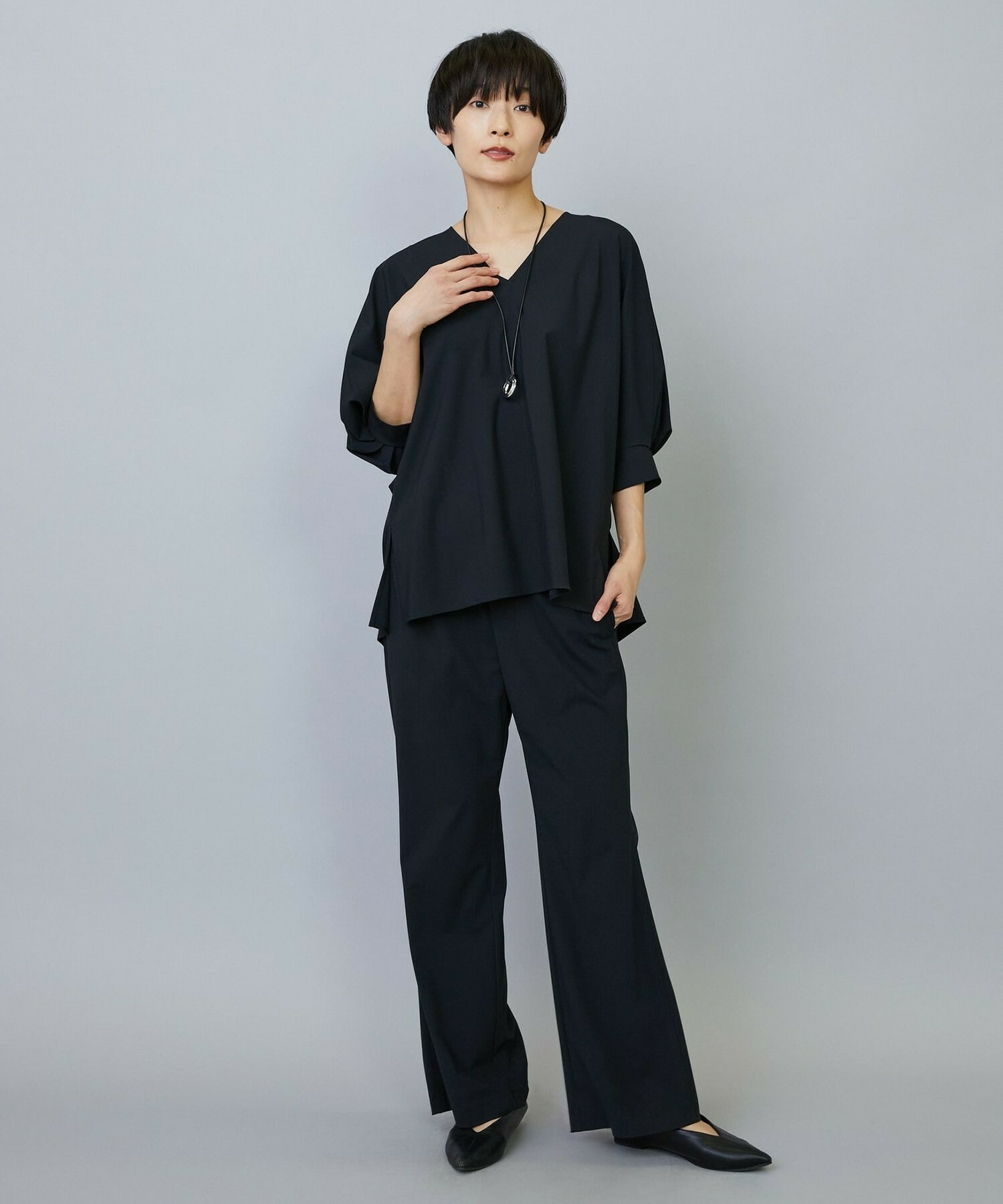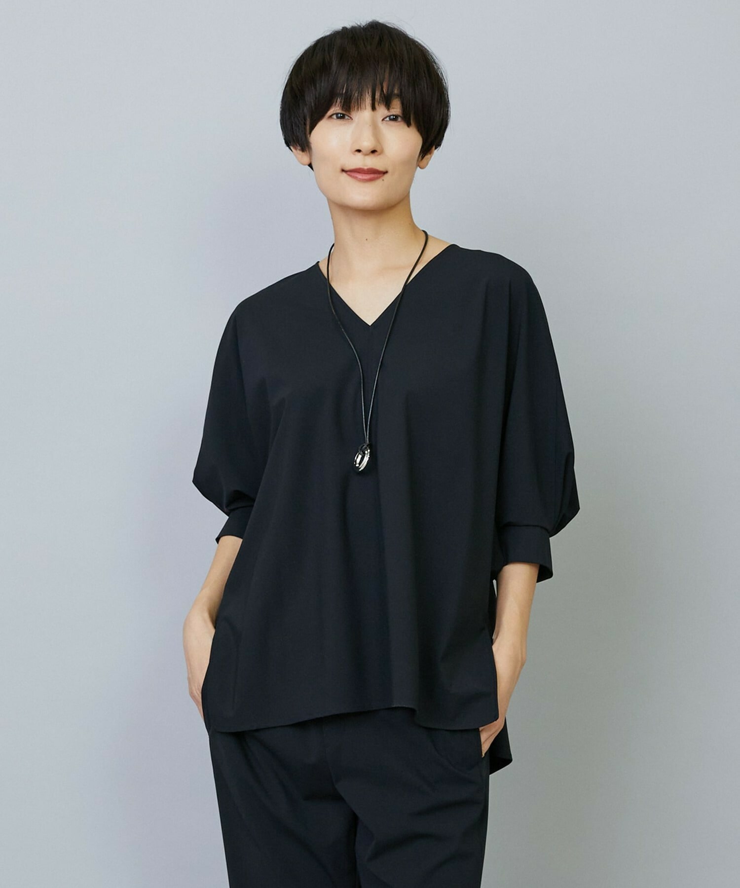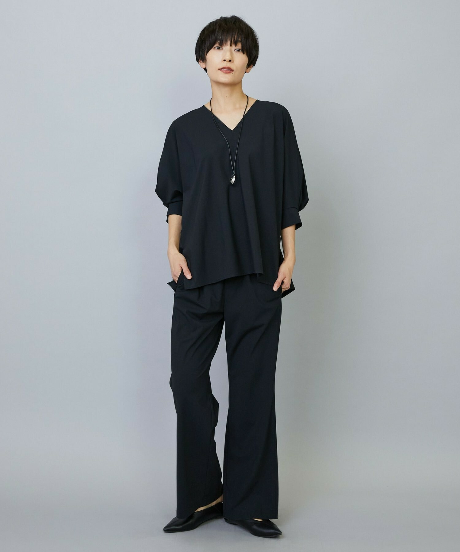 • 【MOGA】クールトリコットVネックドルマンスリーブトップス 詳細画像 ブラック 21