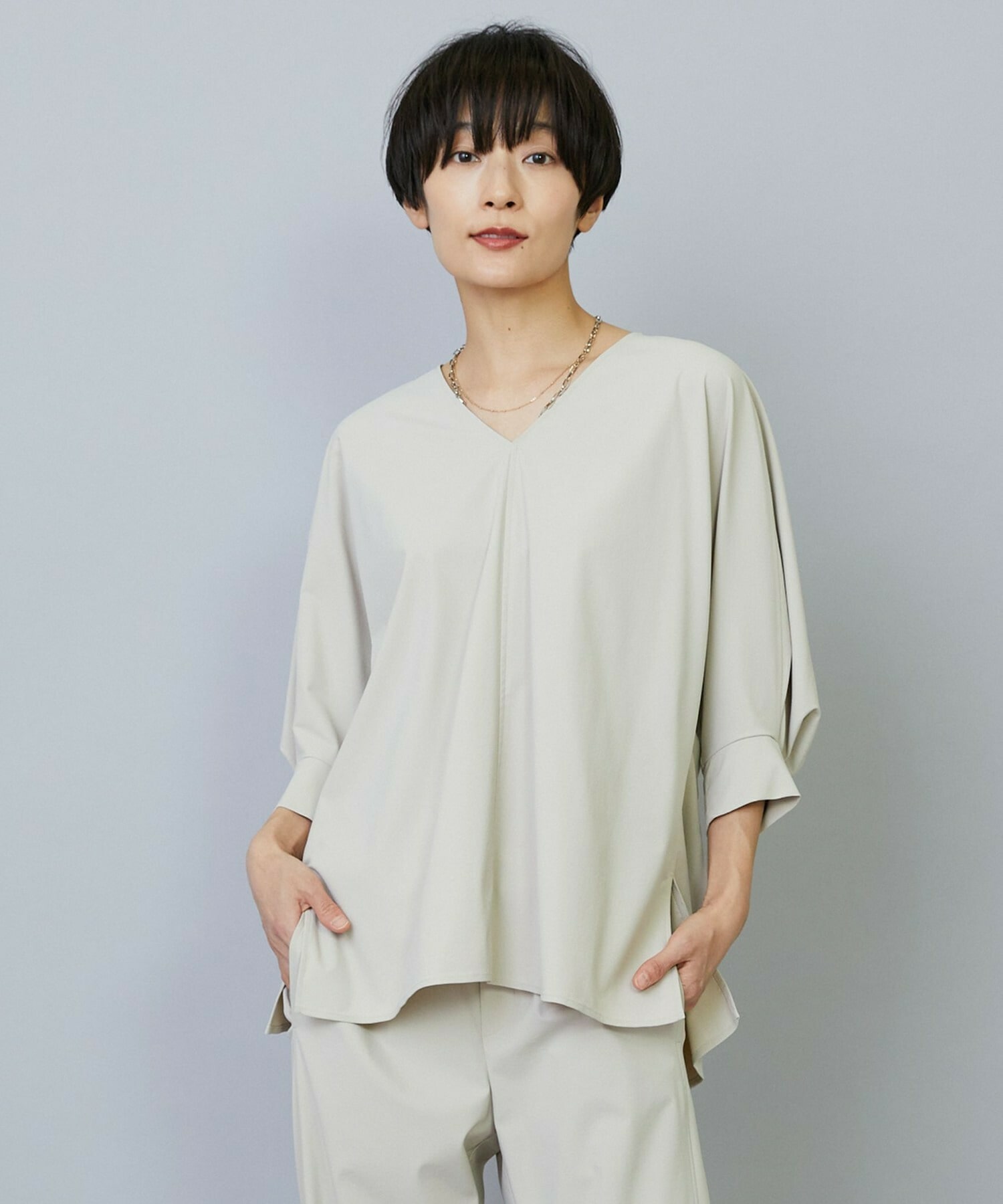 • 【MOGA】クールトリコットVネックドルマンスリーブトップス 詳細画像 ライトベージュ 1