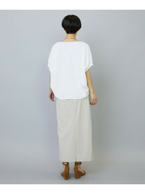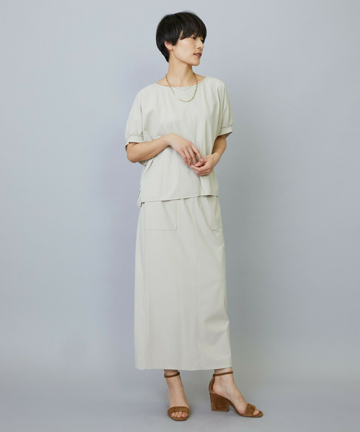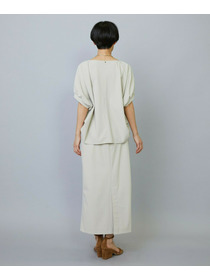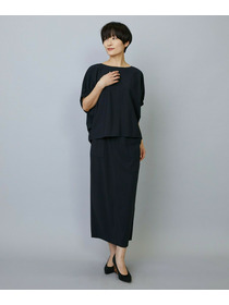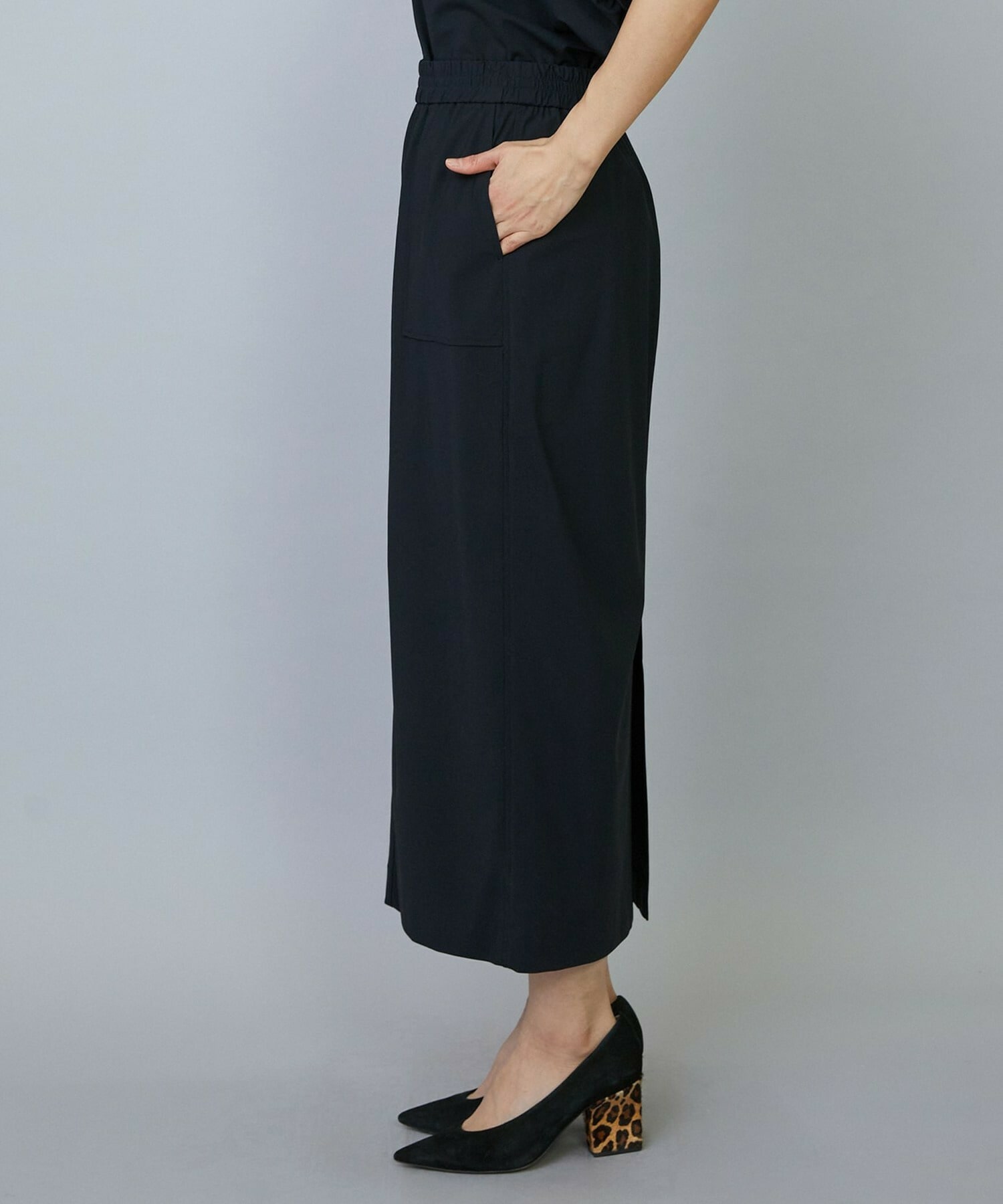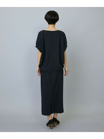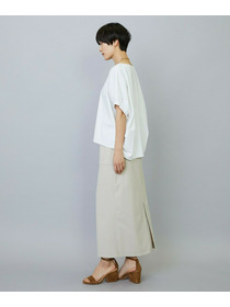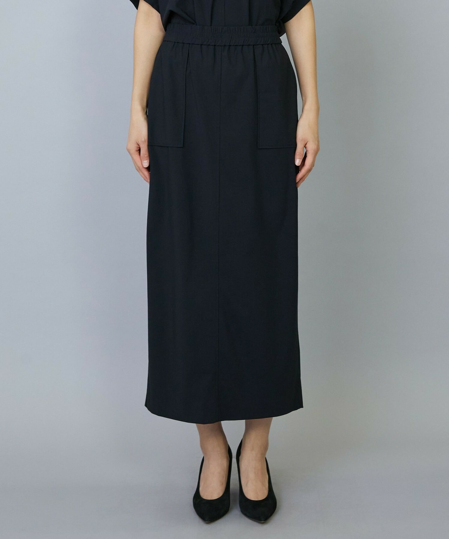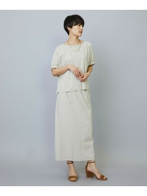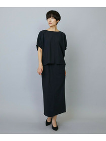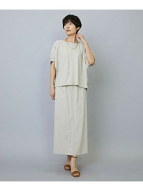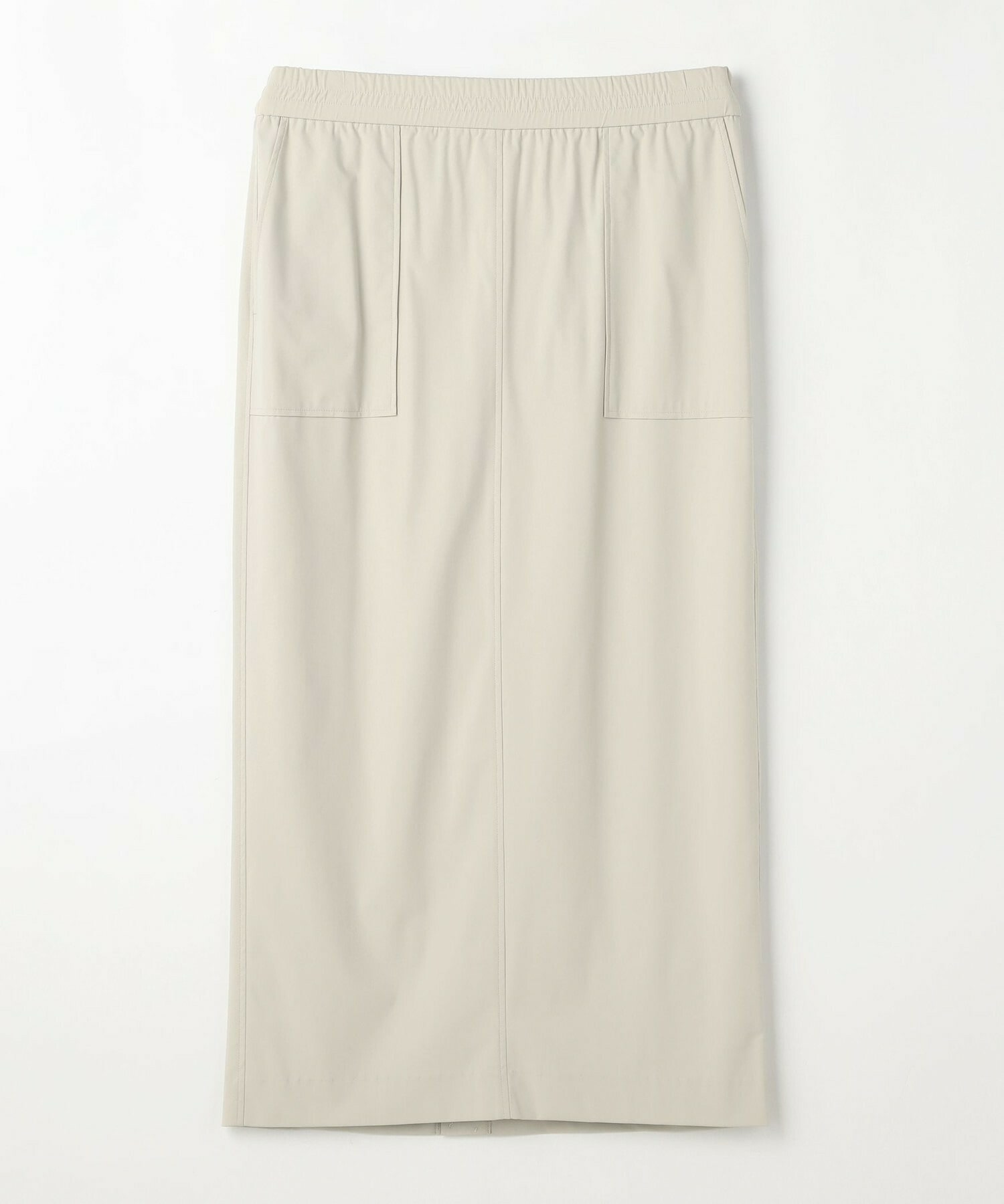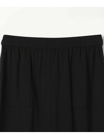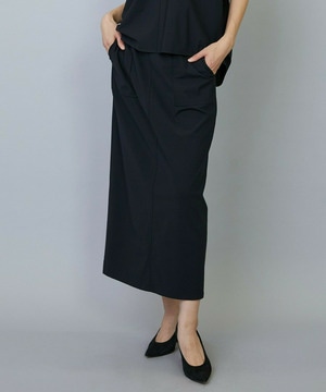 アウトポケットとステッチでディティールとアクセントを加えたタイトなIラインスカート。スッキリとしたラインなので同素材のショートトップスのボリューム感とバランスよく着ていただけます。