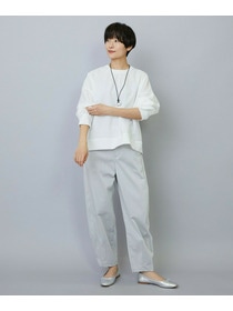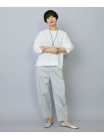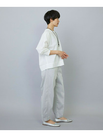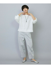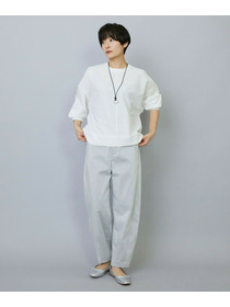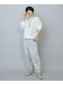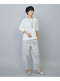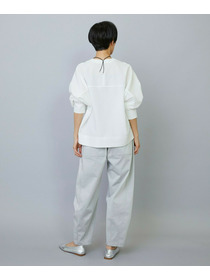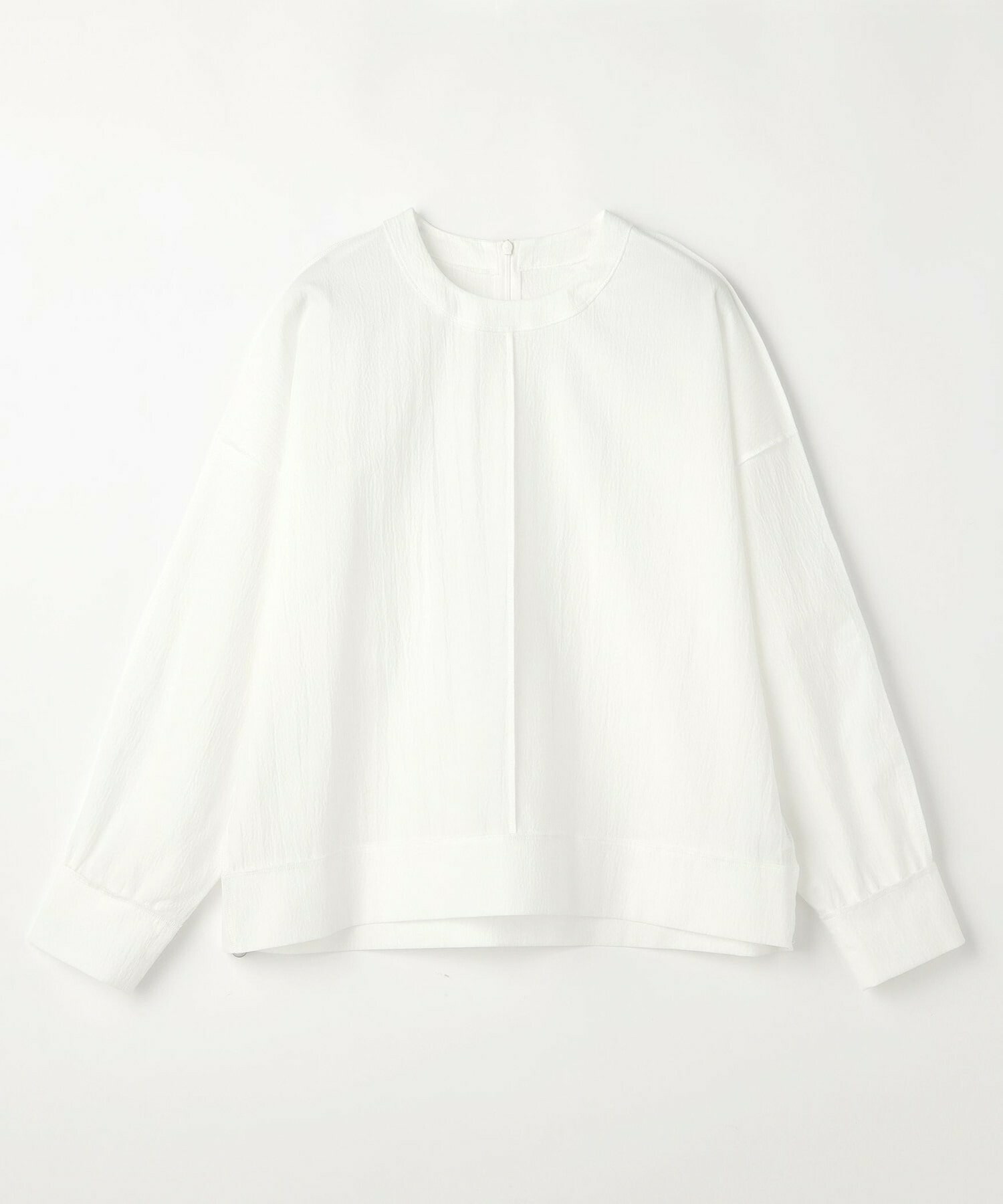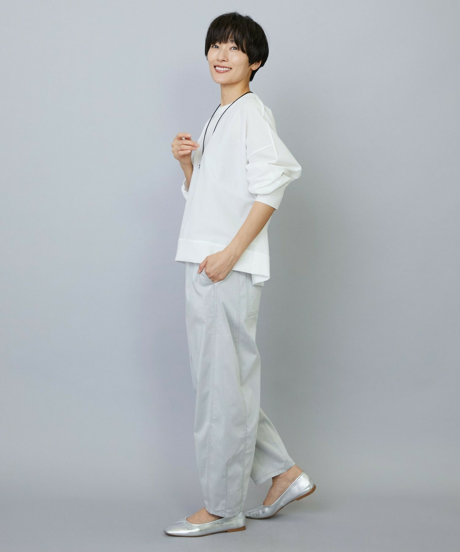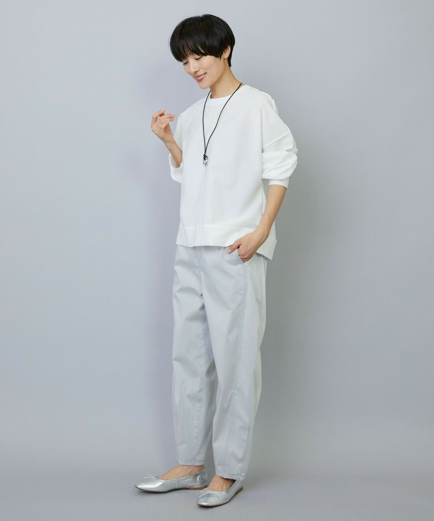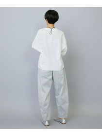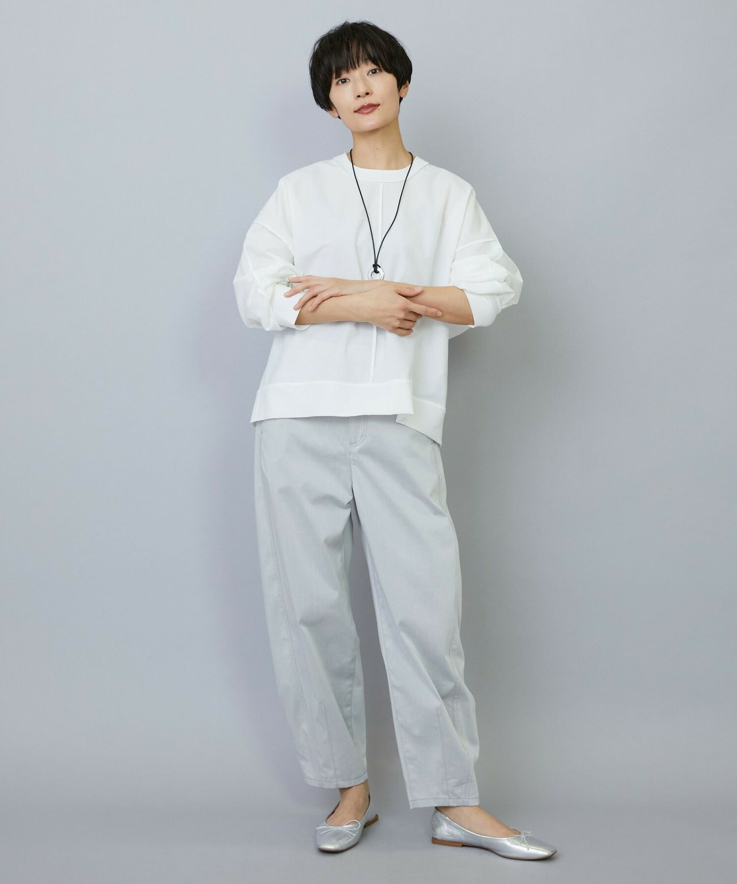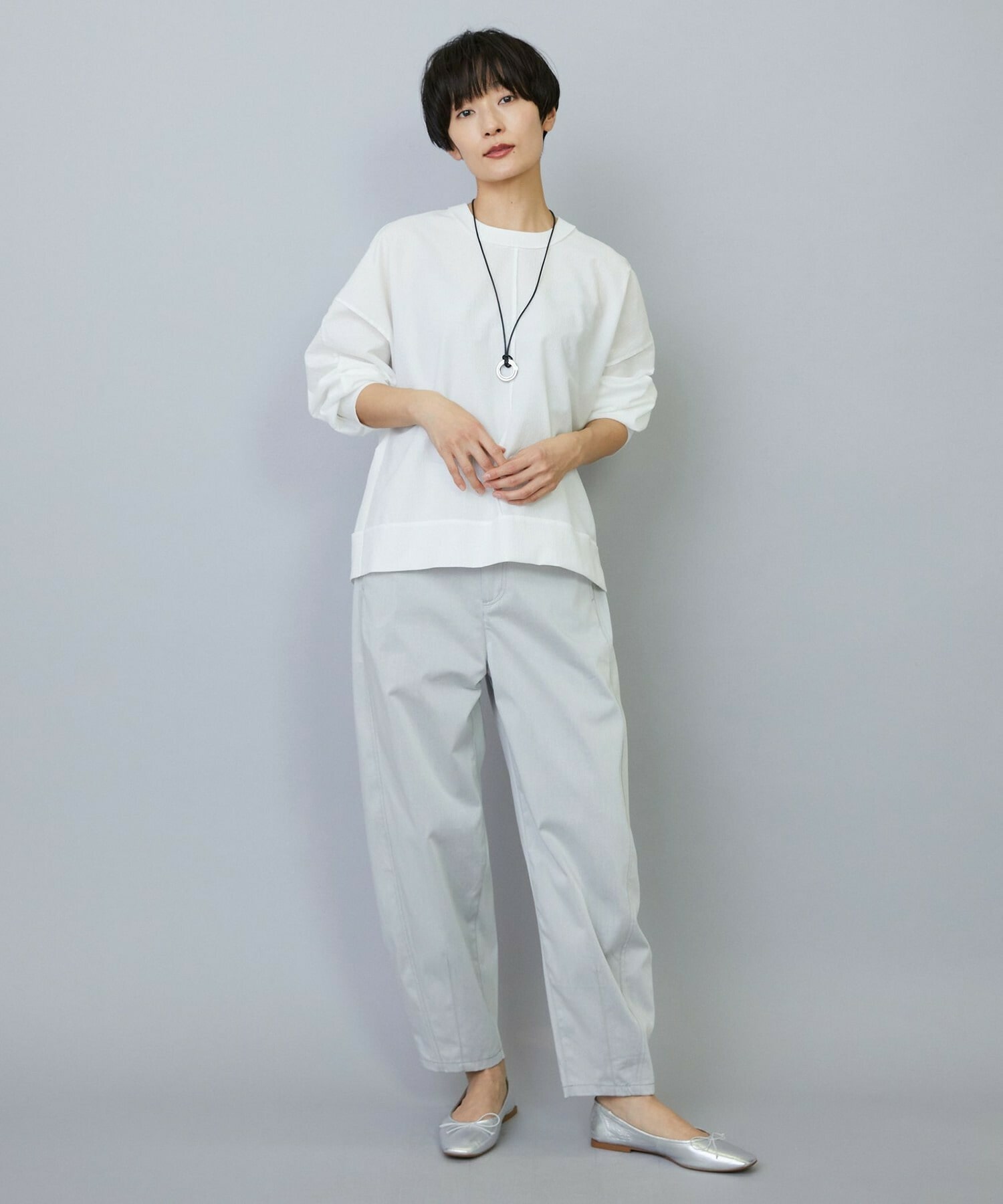 切り替え部分の縫い代をあえて表に出し、飾りステッチでアクセントを効かせたフォルムトップス。後ろのドルマンラインから袖に変形の切り替えを入れ、バックフォルムを出しています。パンツにもスカートにも合わせやすい万能トップスです。