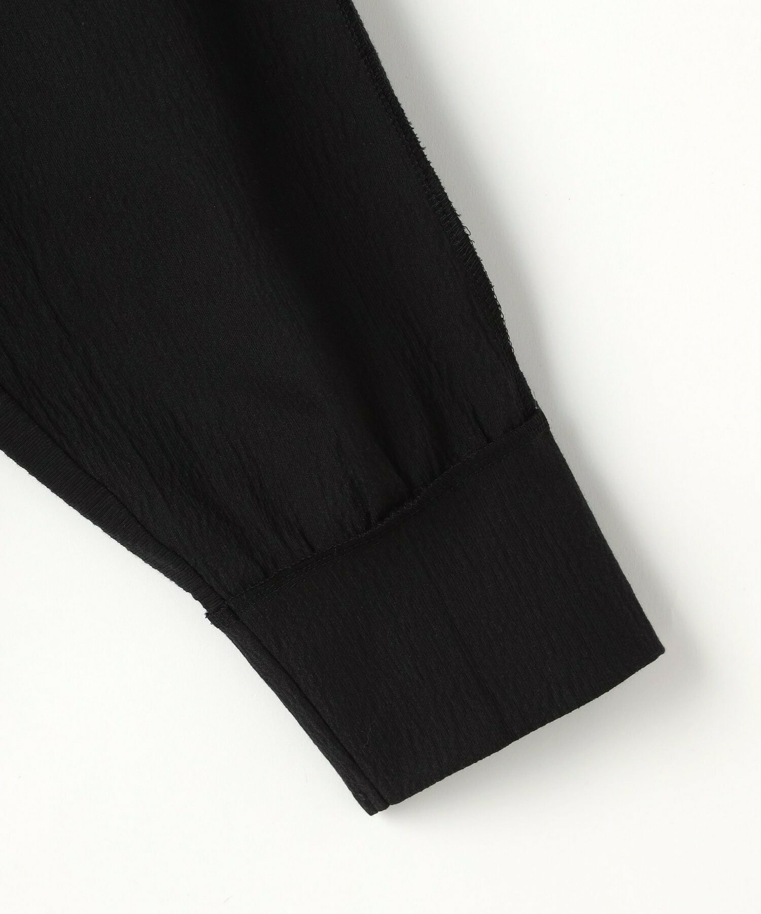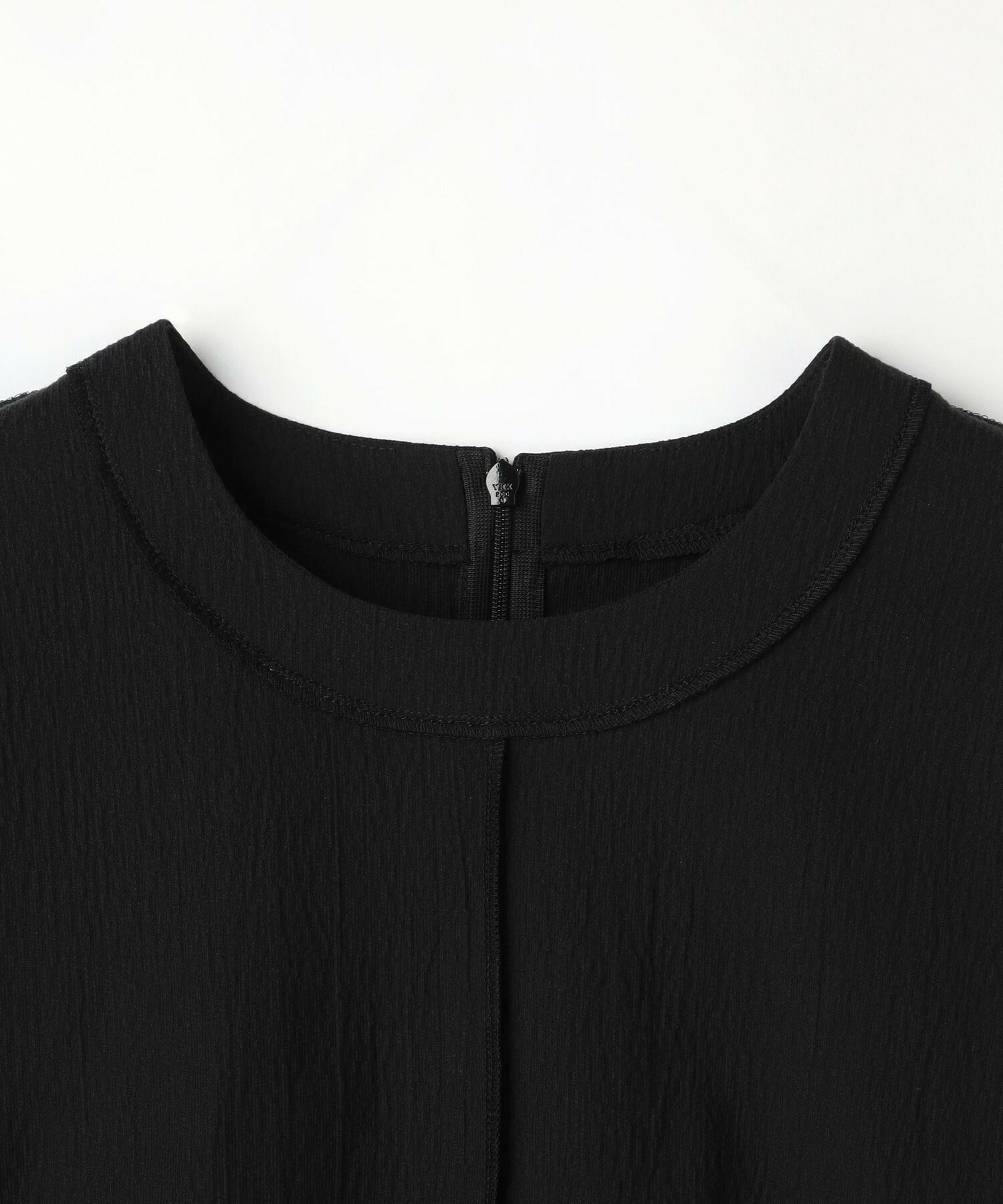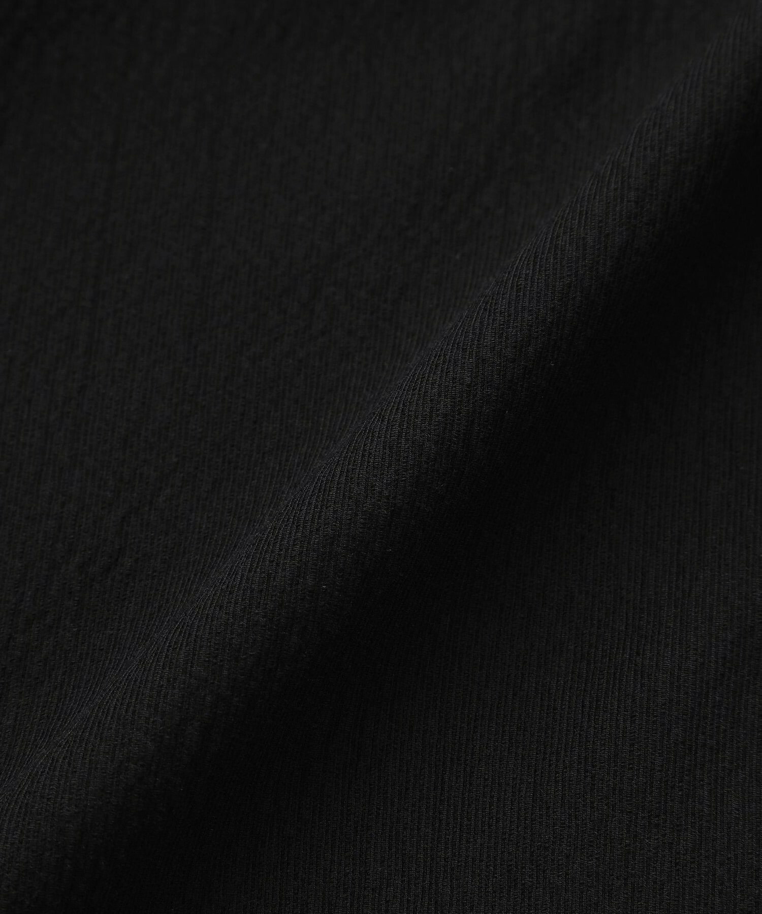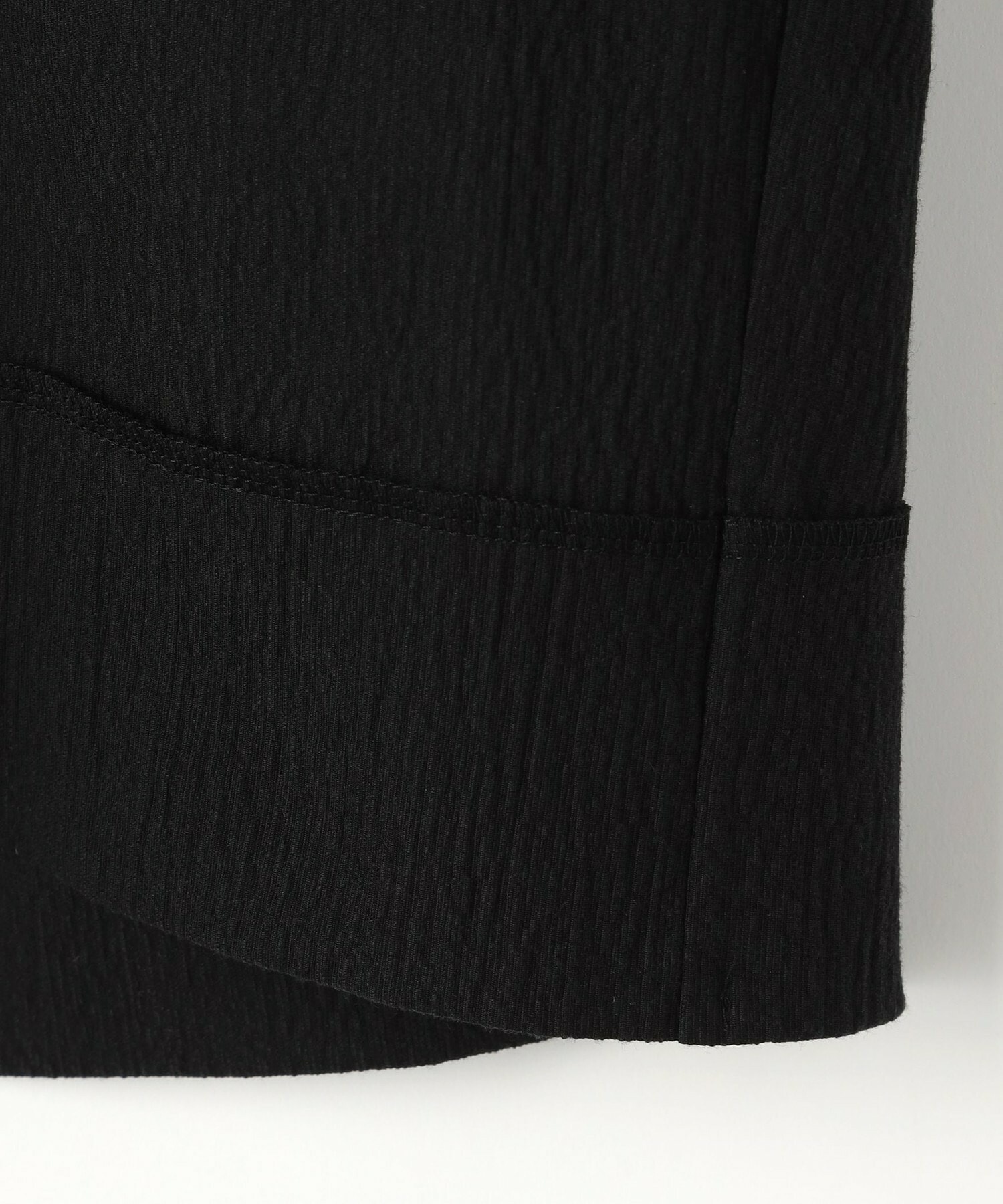 それぞれ伸縮性の異なる糸の組み合わせにより、ナチュラルなシワ感が付与され、ジャージ素材なのに、布帛のような張り感のある弾力と独特な表情があります。