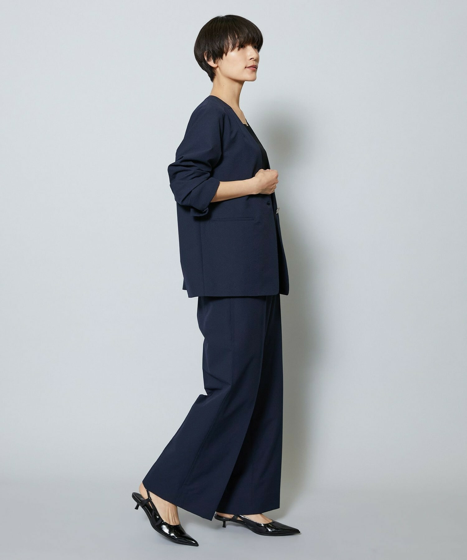 同素材のパンツとのセットアップで暑い季節のビジネスシーンも快適に着ていただけます。