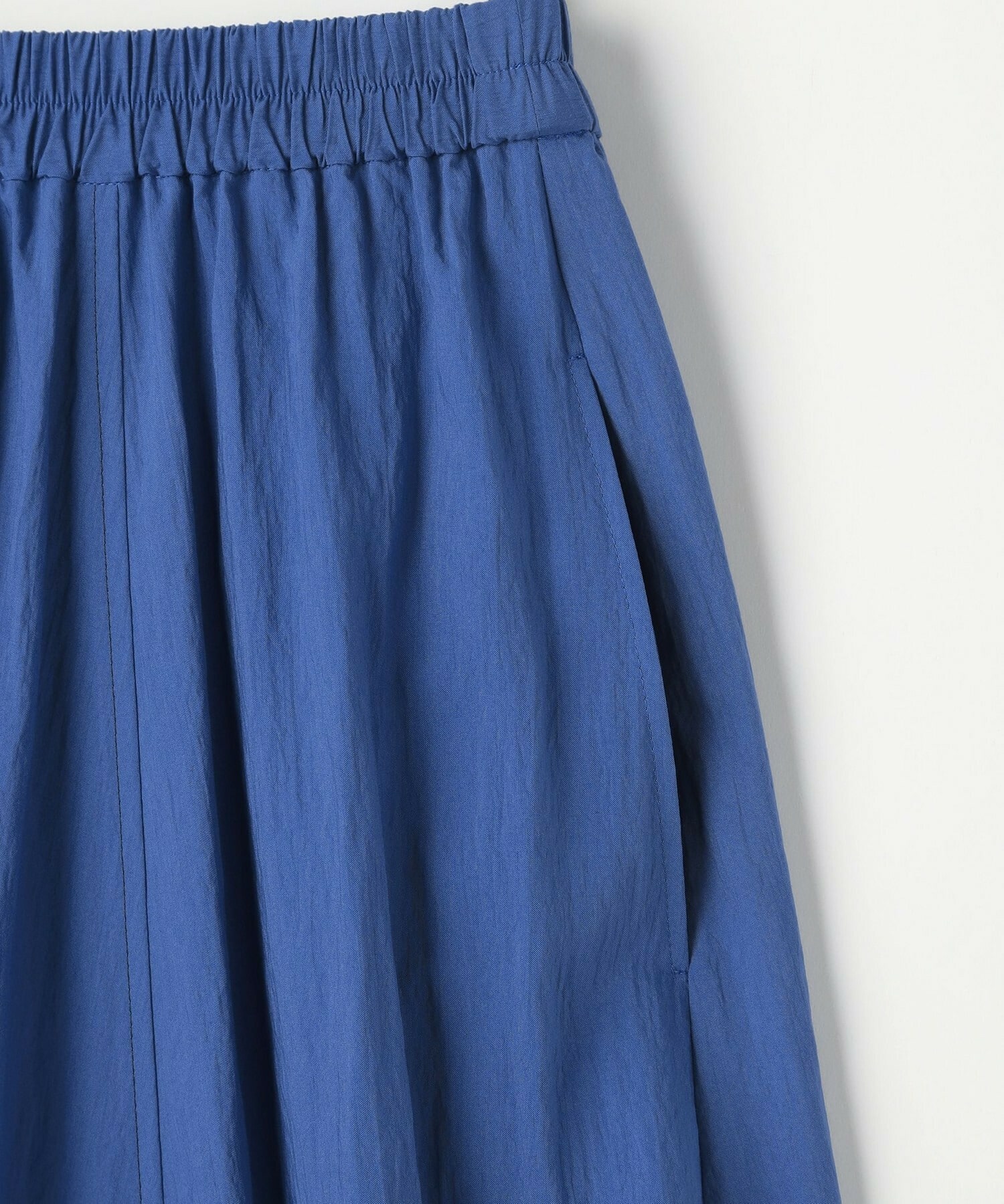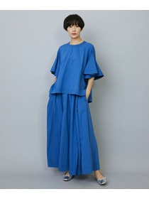 ウエストゴムで快適な仕上がり。トップスに同素材ブラウスで華やかに着ていただけます。