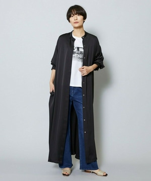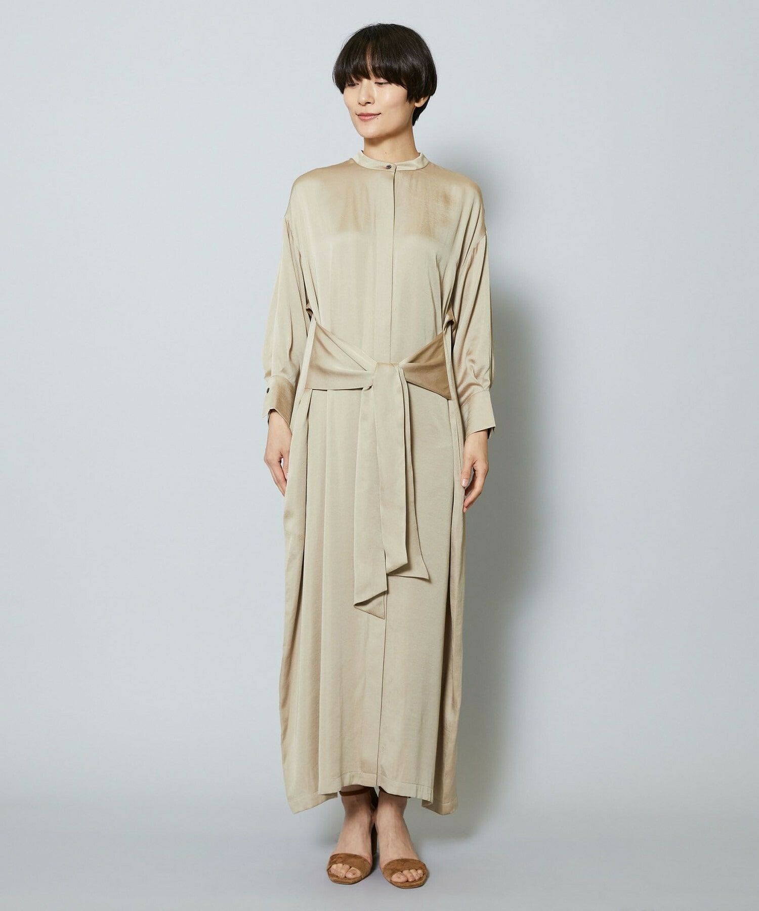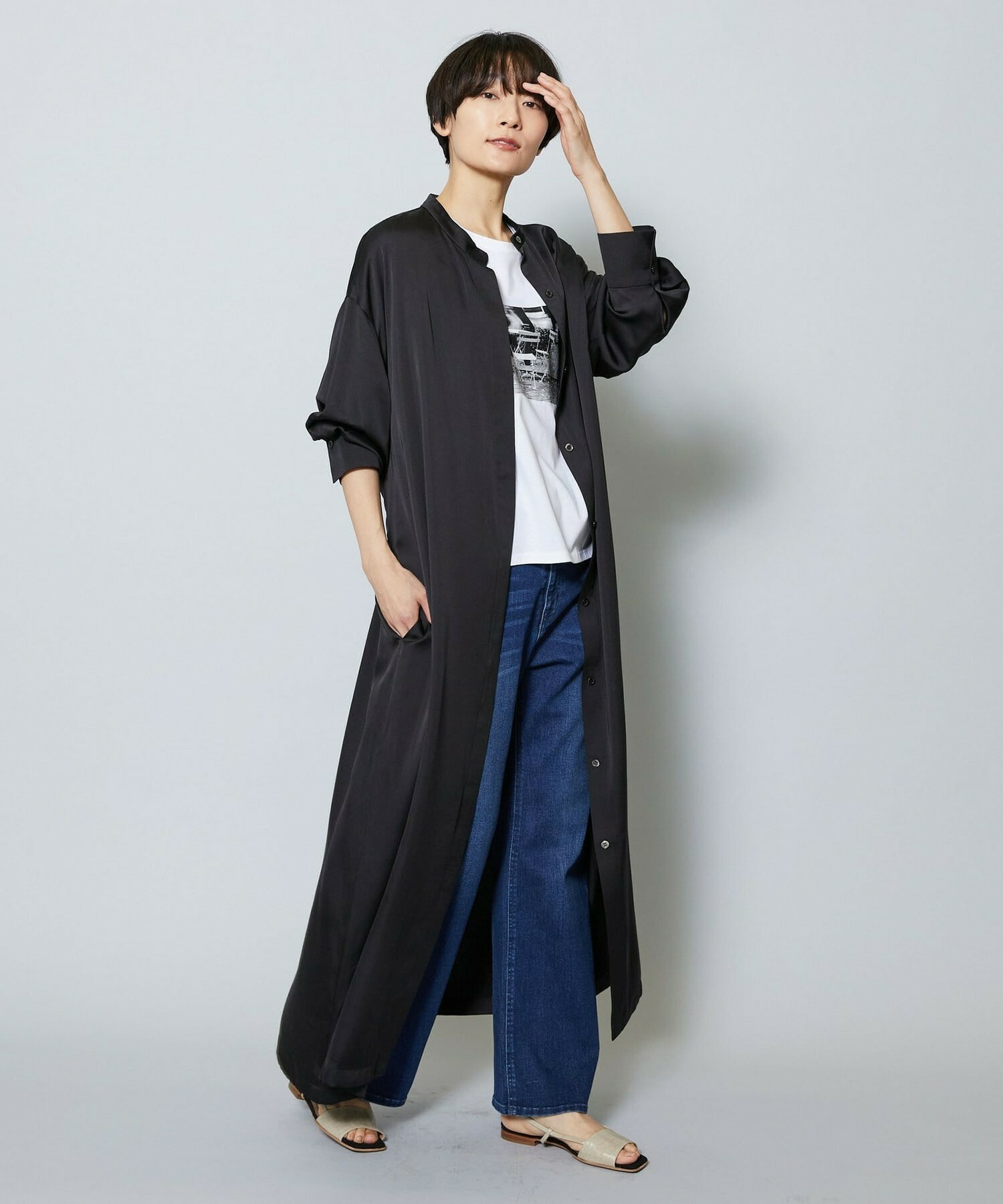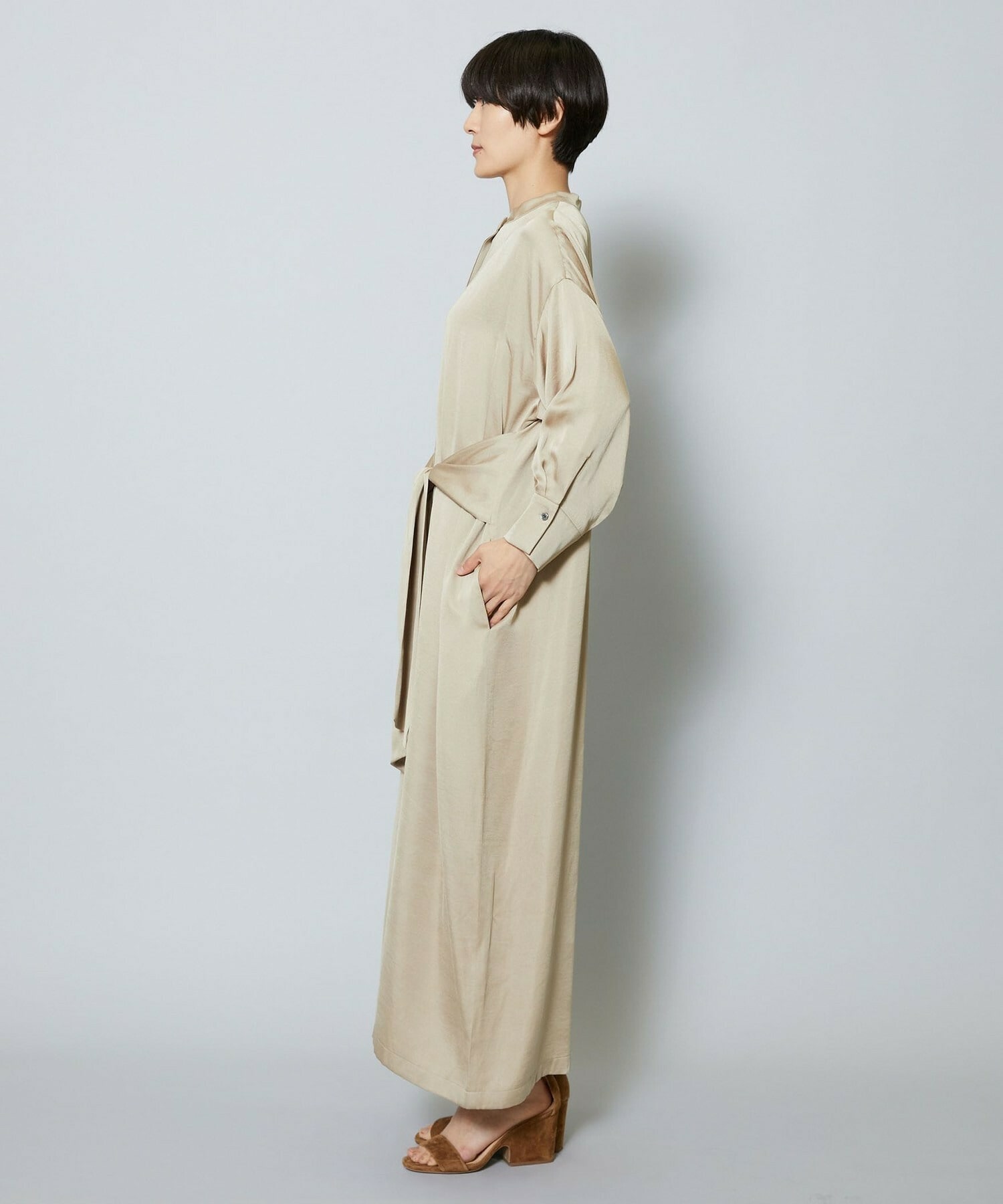 素材の持つ控えめな光沢感と落ち感が、女性らしいシルエットを優雅に美しく完成させます。