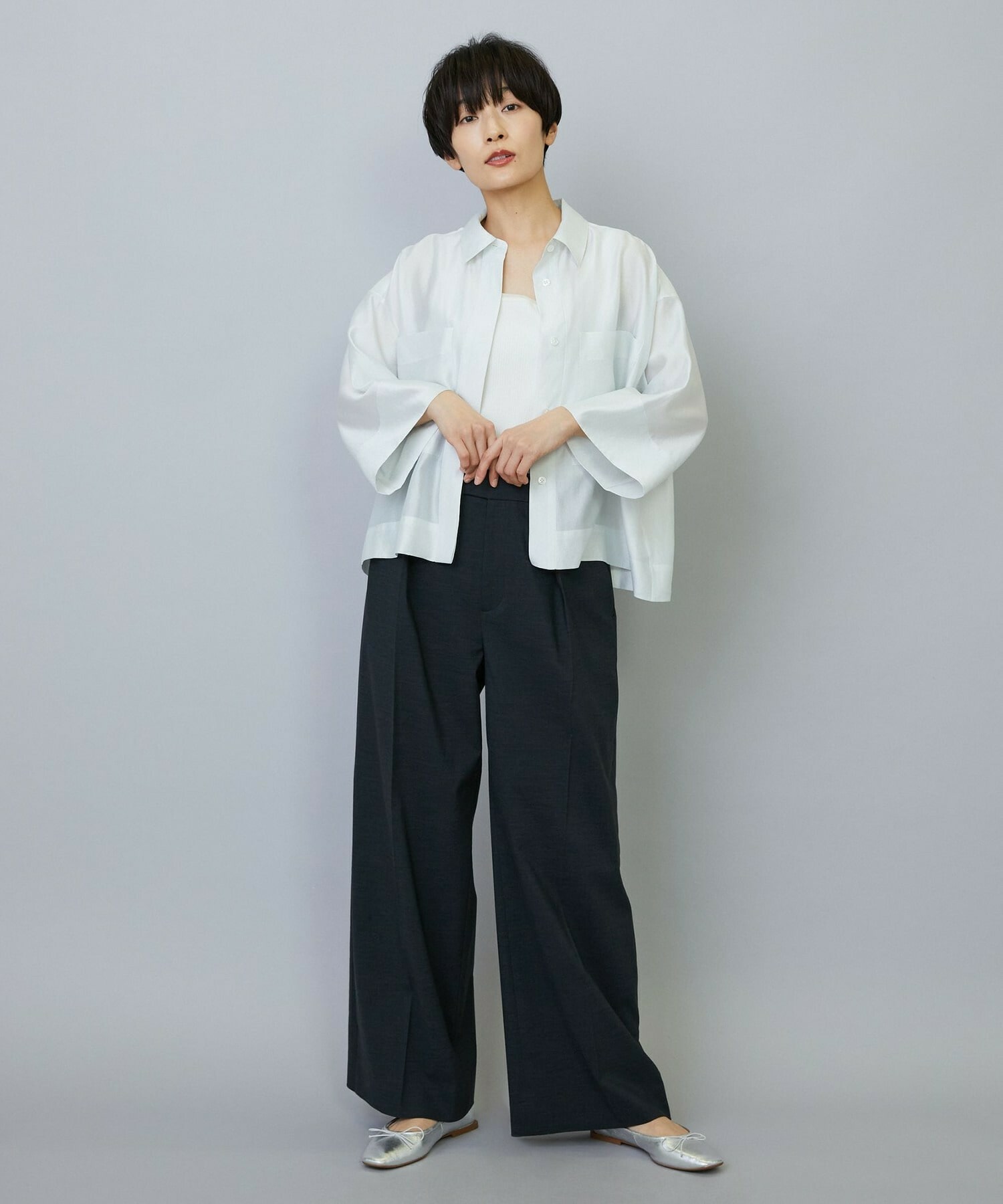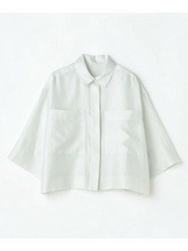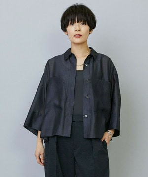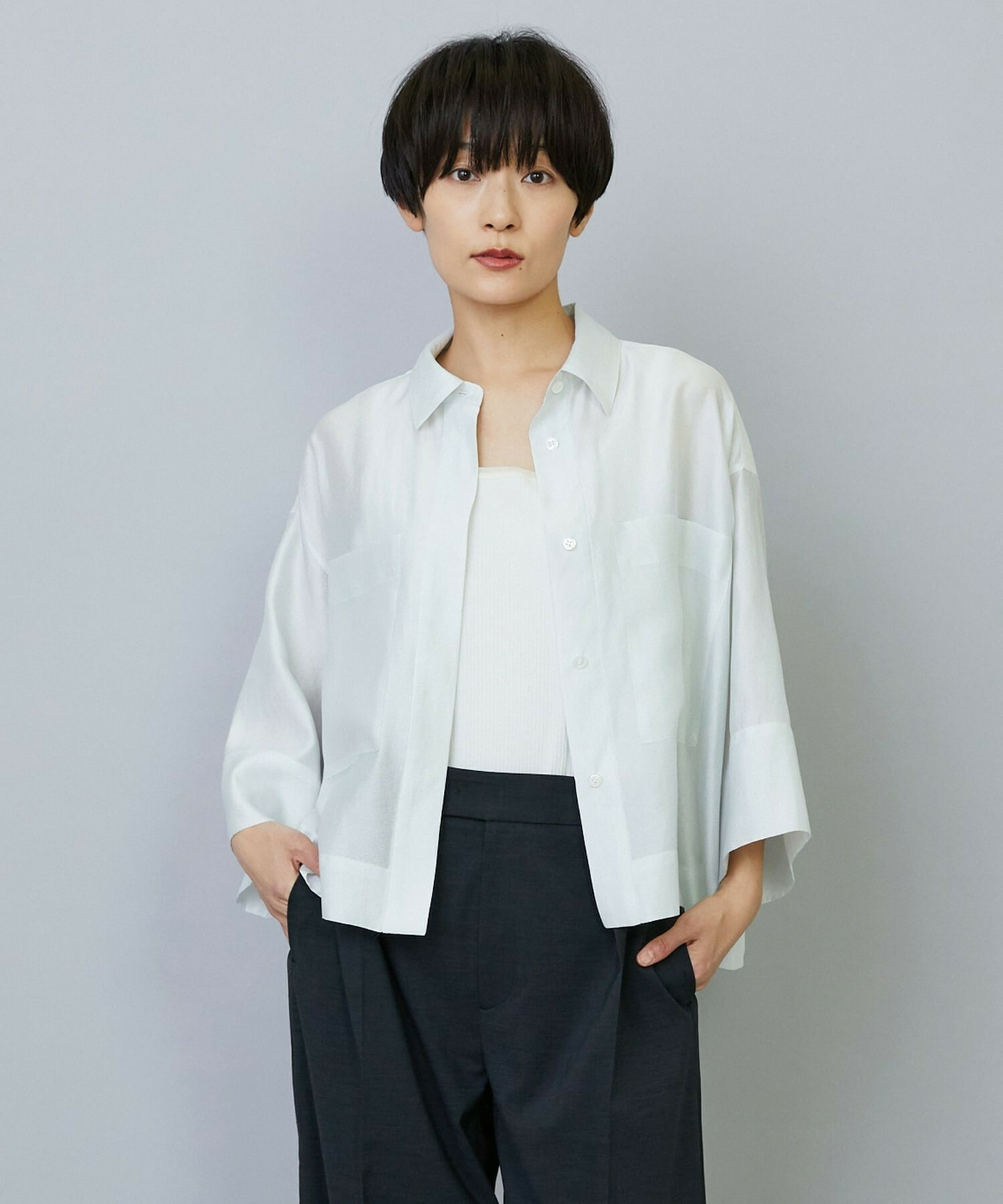 光沢のあるシアー感と、さらっとドライな素材感が暑さの続く時期に長く着用していただけるブラウスてす。