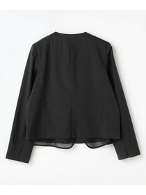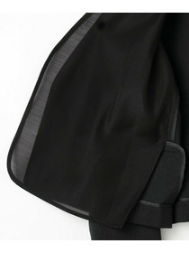 前身頃はエアリーな透け素材(オーガンジー素材)で二重仕立てに仕上げています。オーガンジーの重なった動きのある表情が女性らしく特別感を引き立てています。