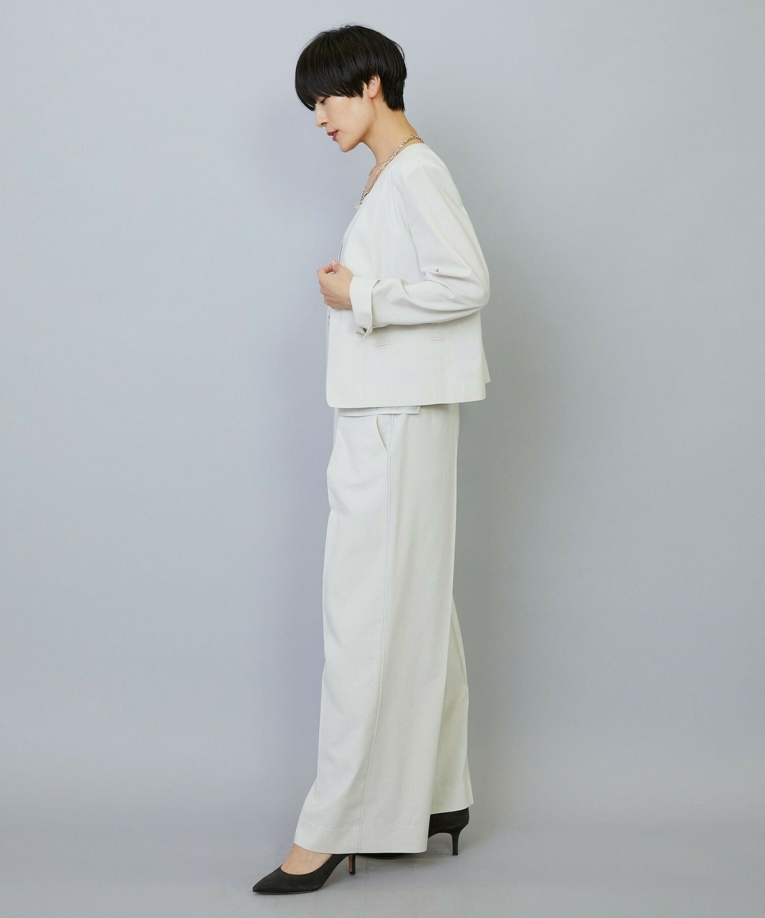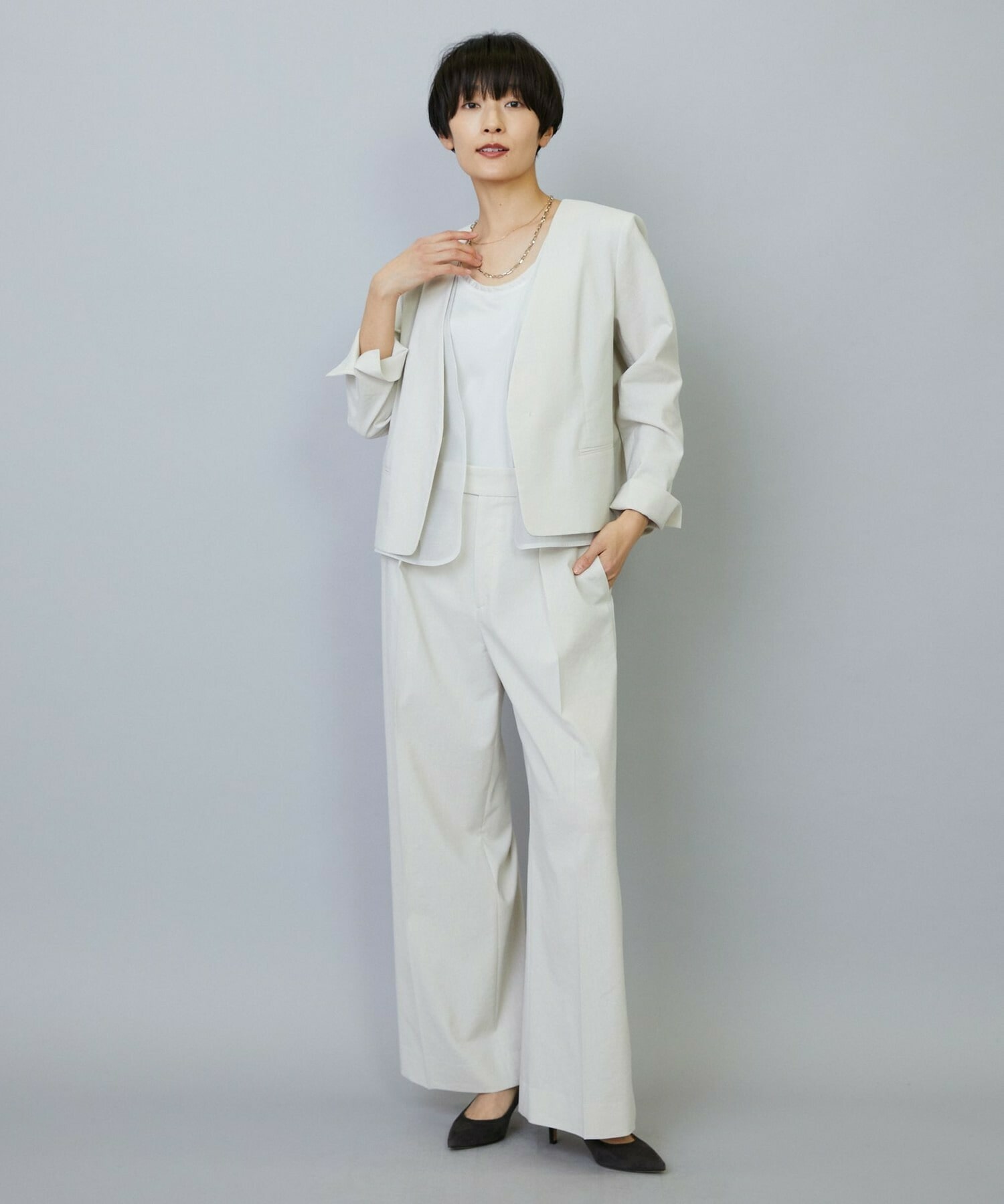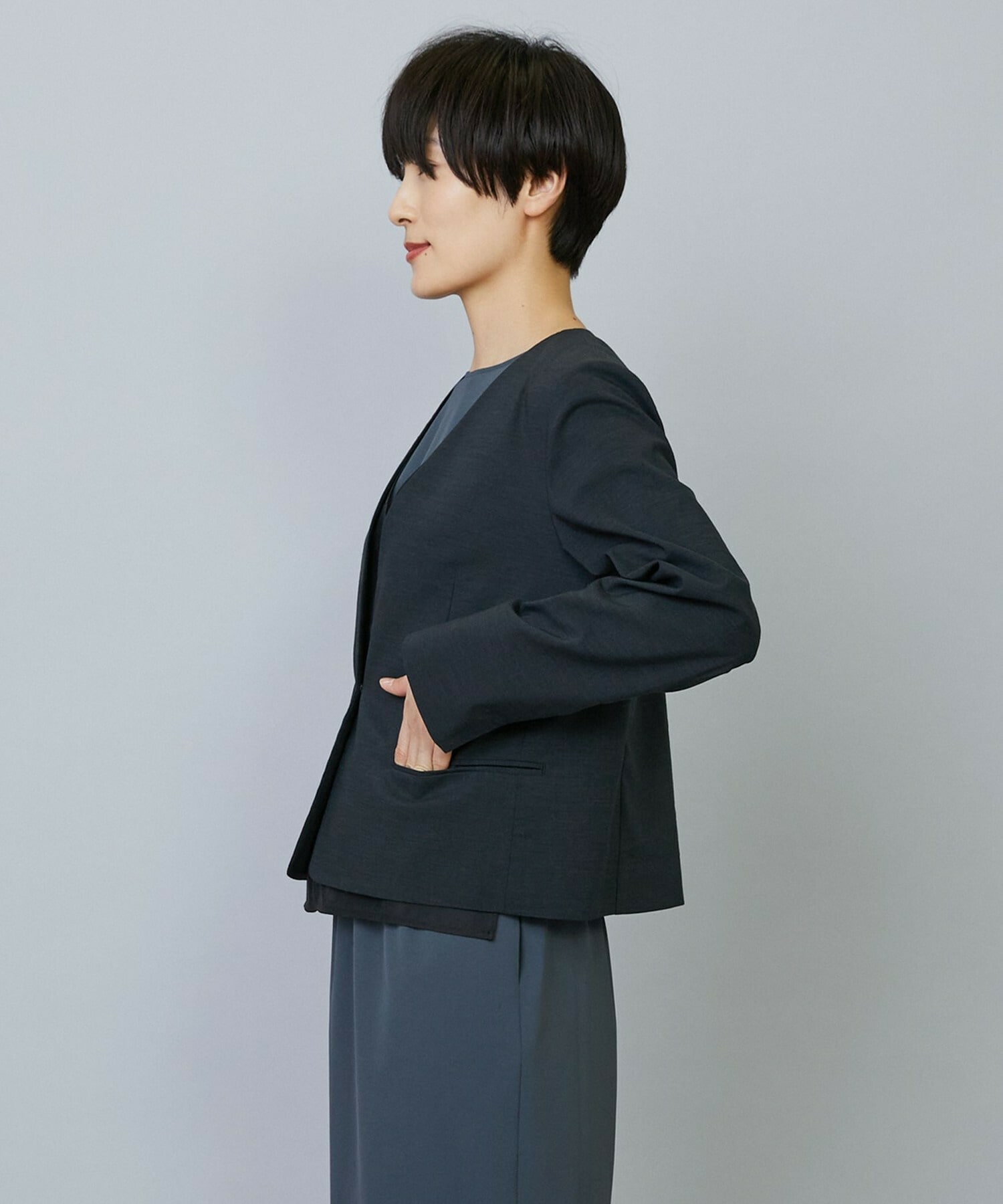 スタイリスト戸野塚かおるコラボ ドライリネンストレッチノーカラージャケット