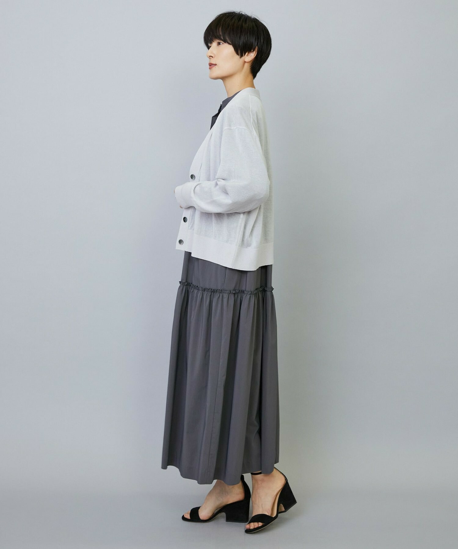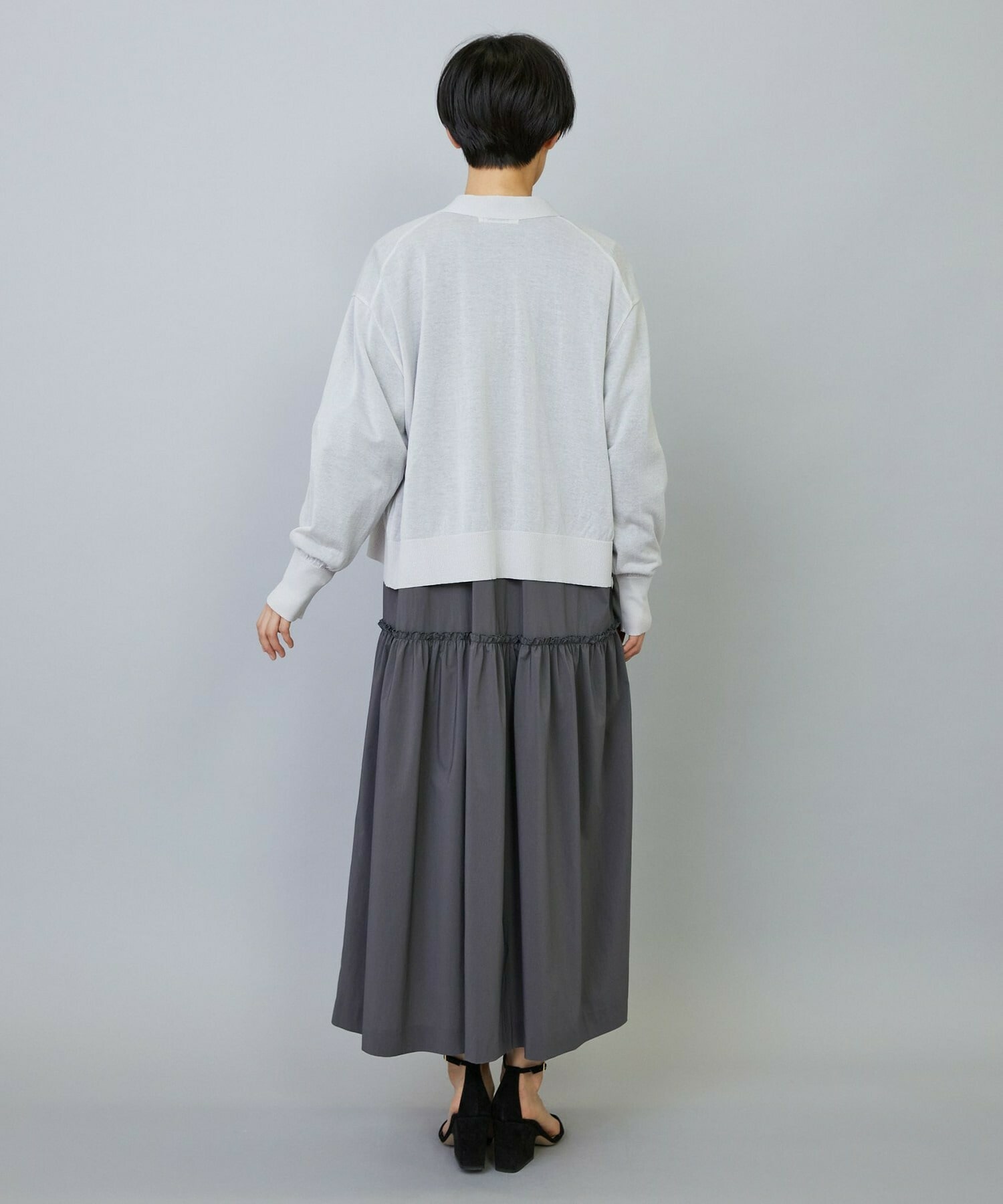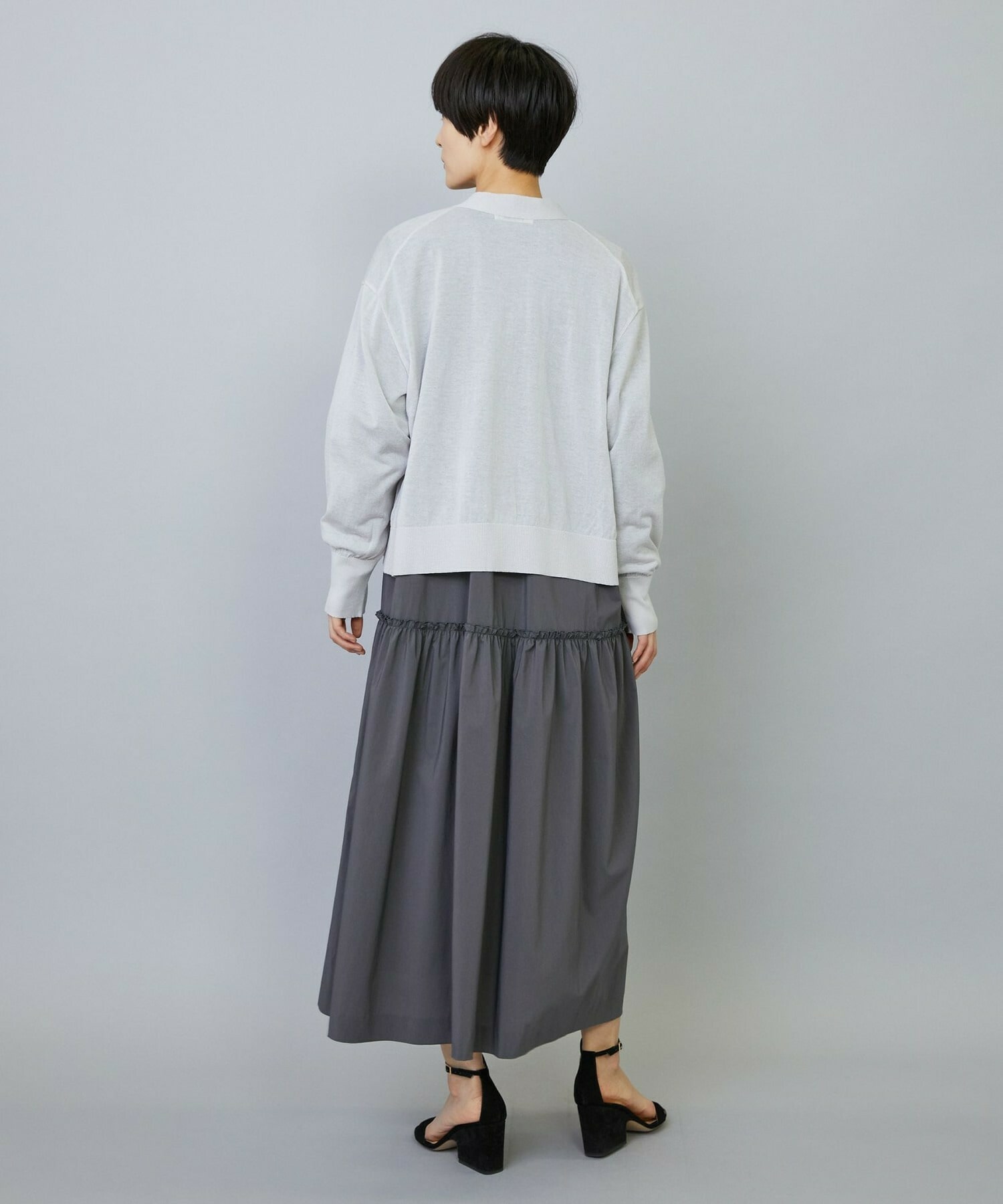 ゆったりしたボディで袖口と裾をリブでブラウジングすることでやわらかな丸みのあるシルエットを作り出します。
