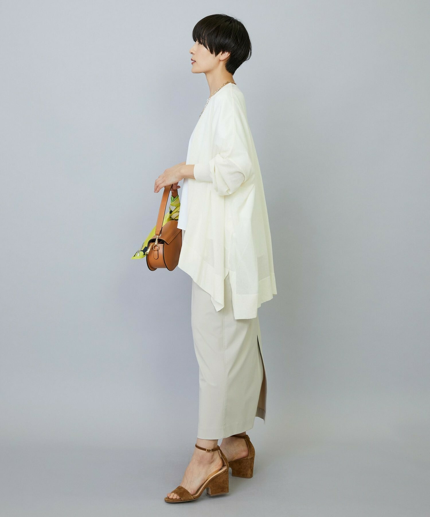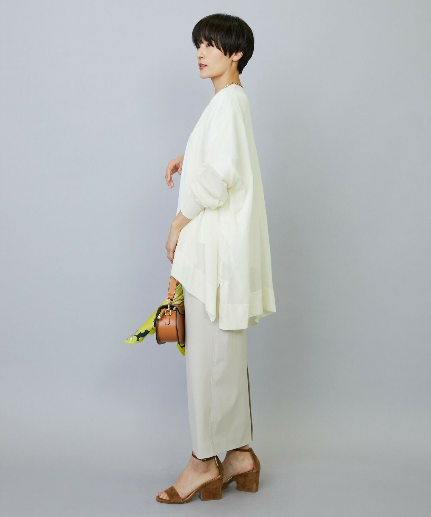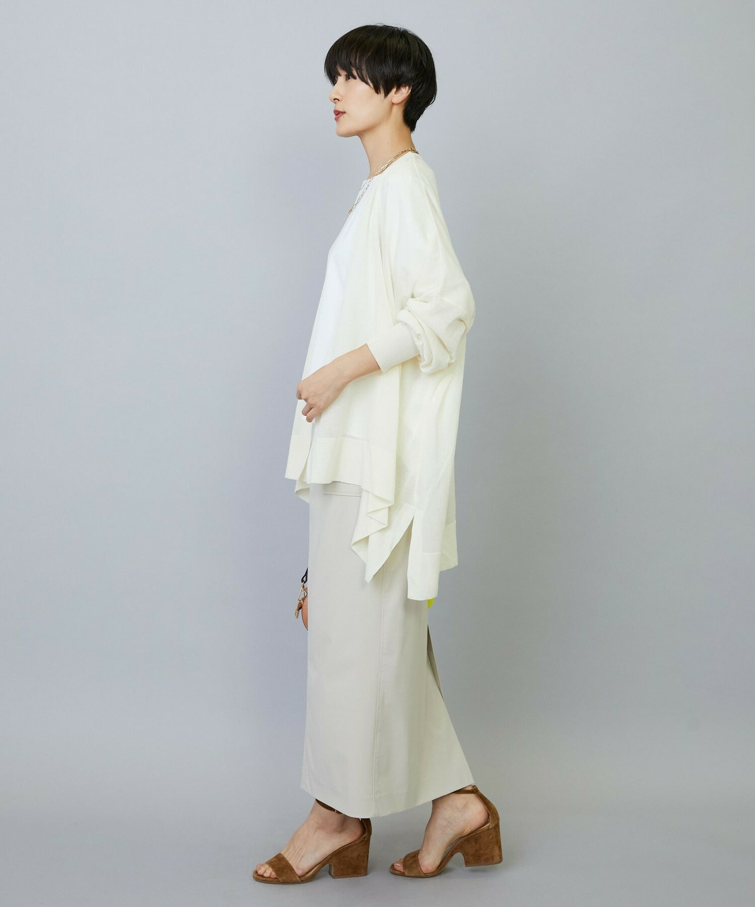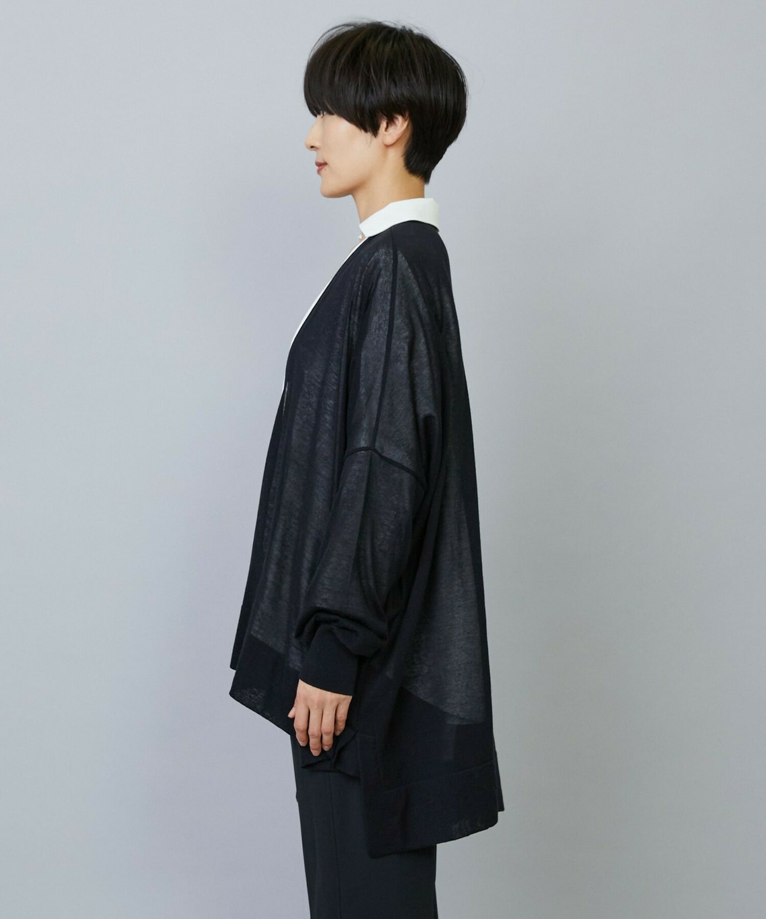 繊細で軽やかな肌ばなれの良い編地です。しなやかなドレープ性があるので羽織っただけでスタイリングが決まる1枚です。