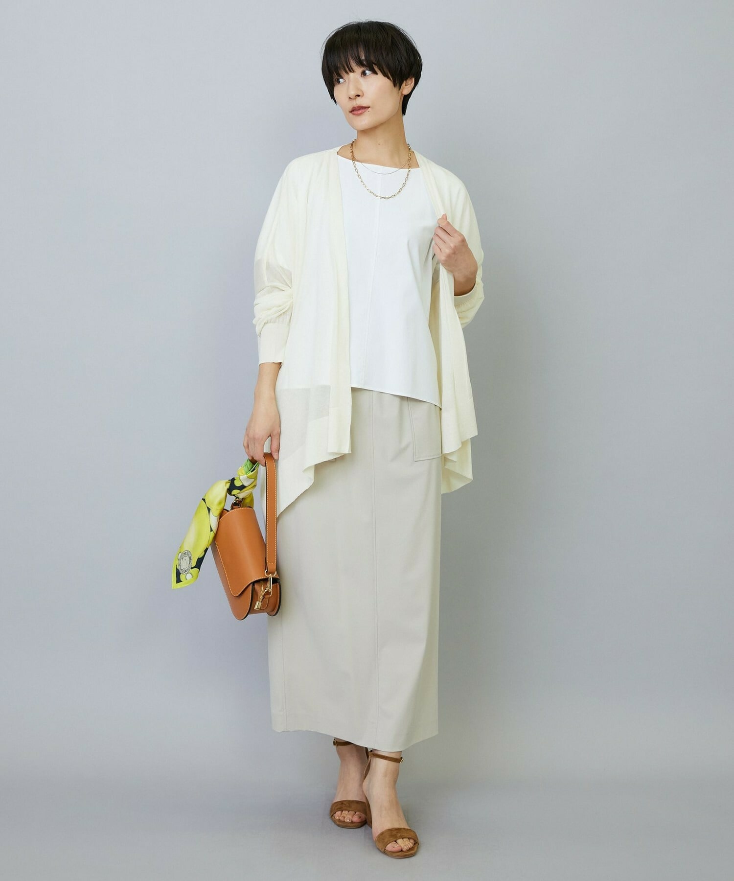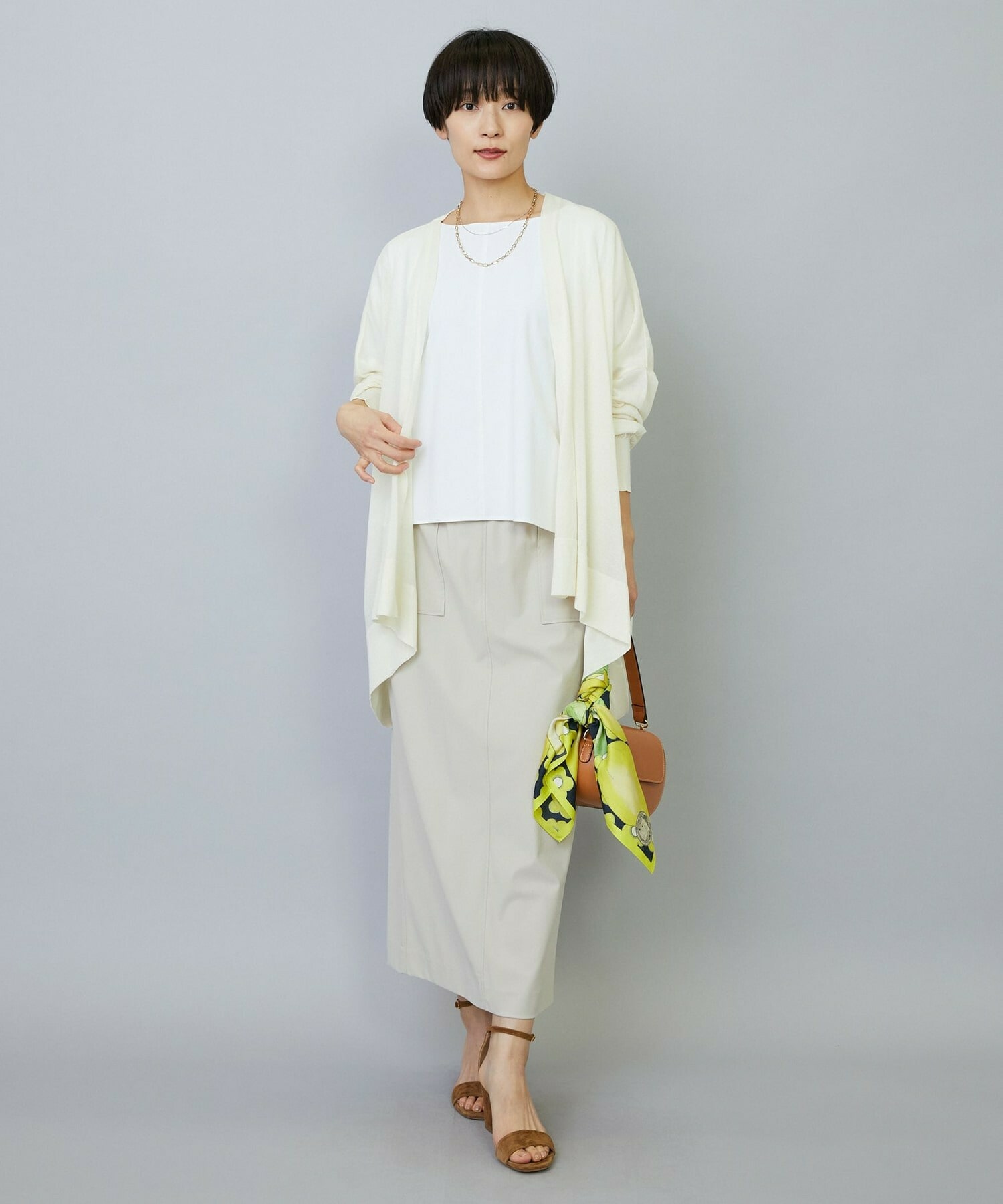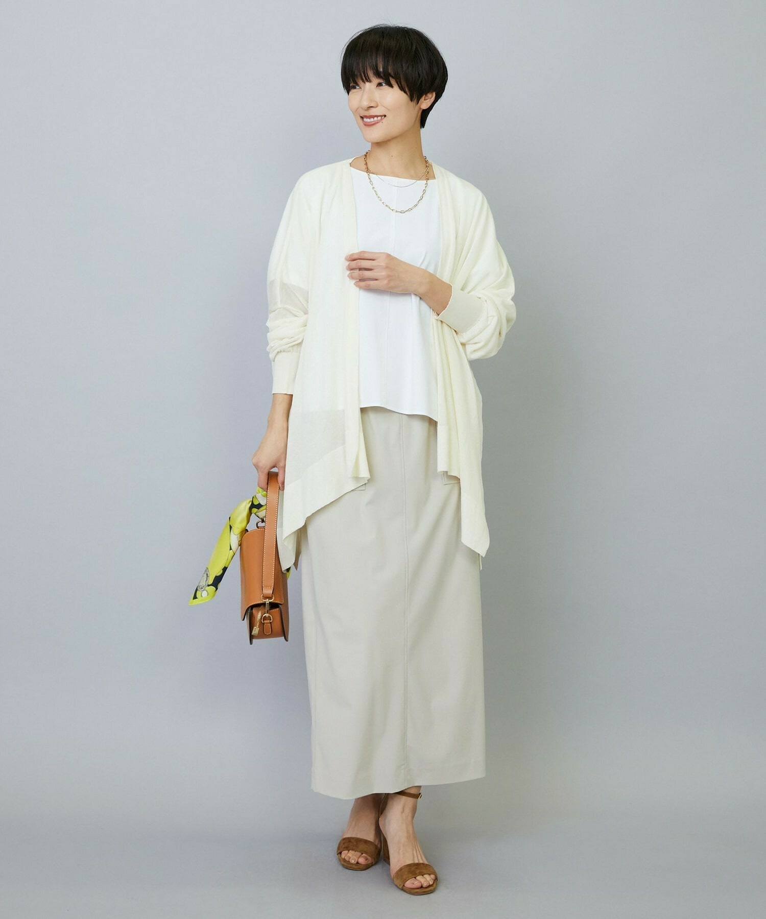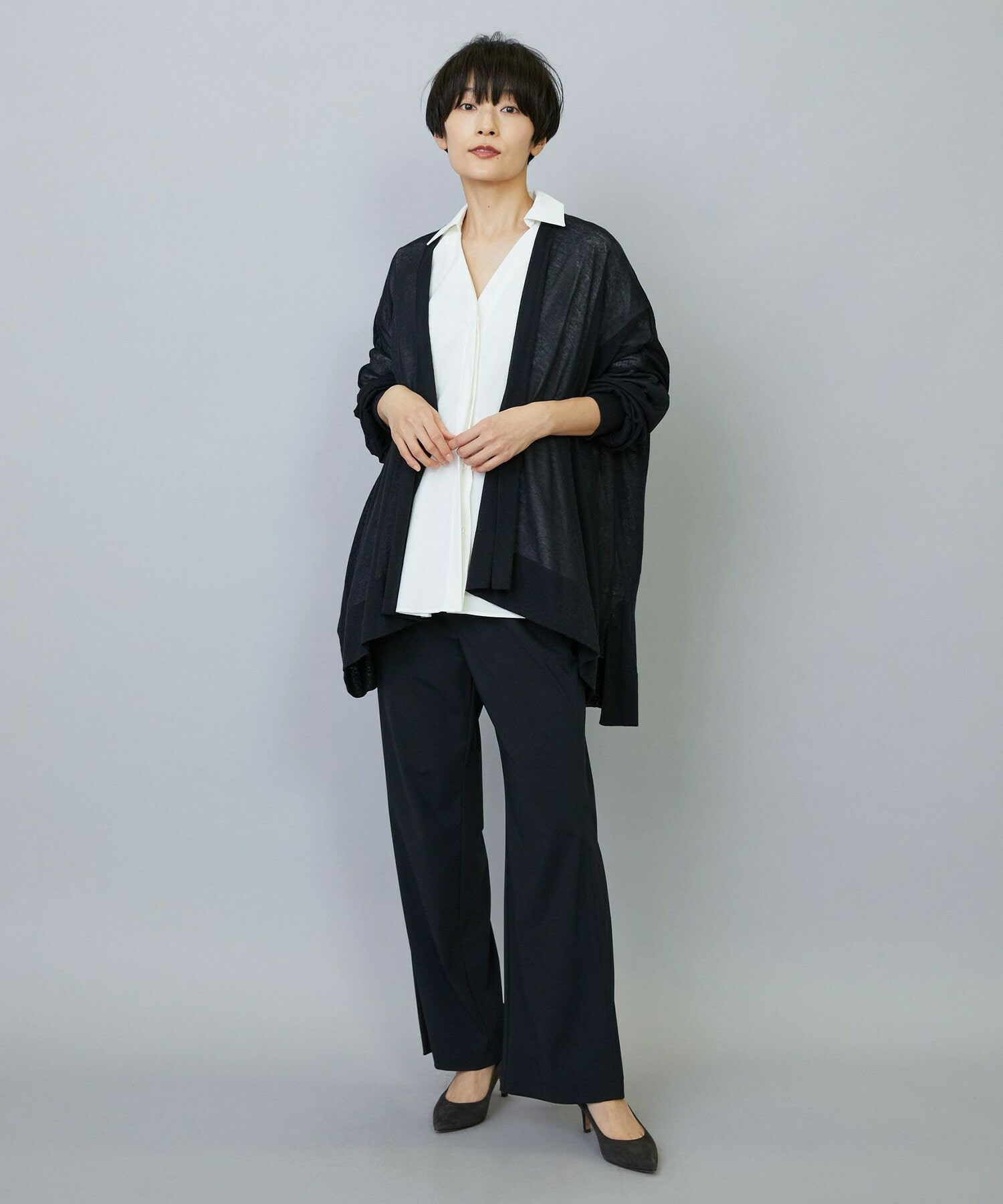 繊細で軽やかな肌ばなれの良い編地です。しなやかなドレープ性があるので羽織っただけでスタイリングが決まる1枚です。
