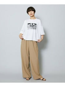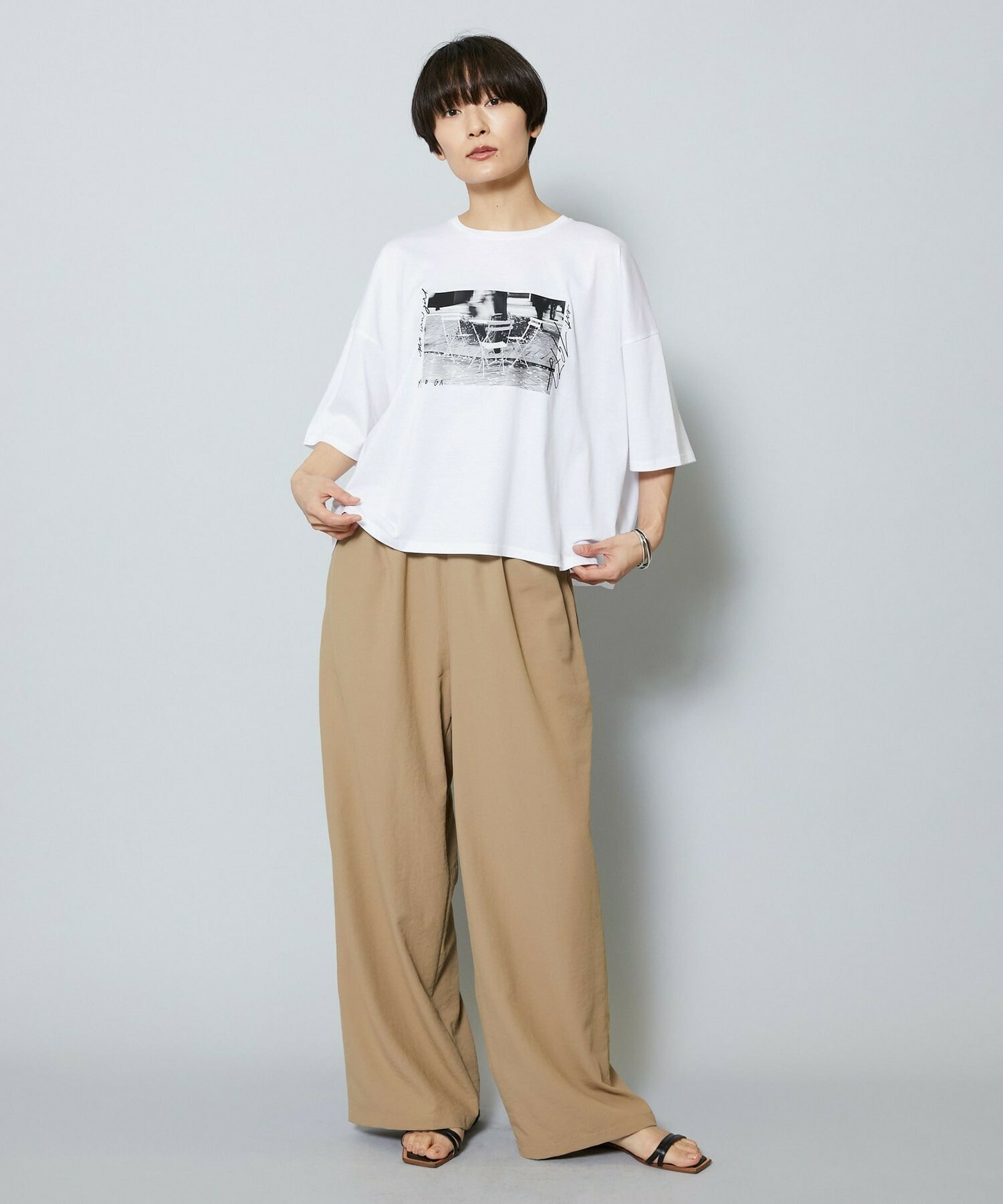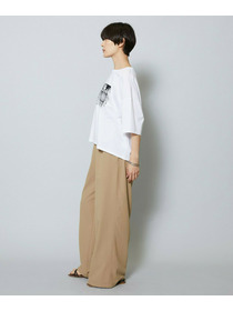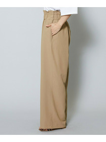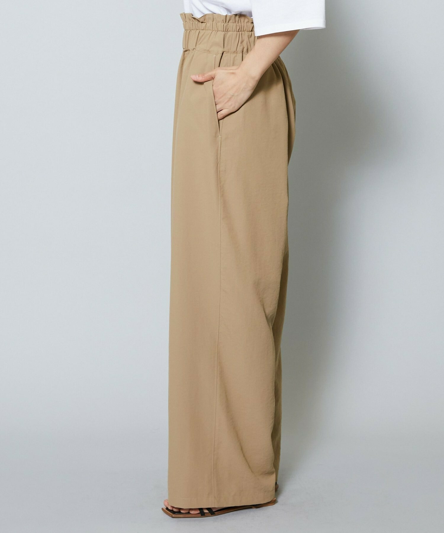 太すぎない足長シルエットに。ウエスト周りにさり気なくフリルを入れて、インした時やチラ見せした時にかわいいデザインを入れています。