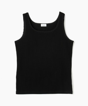 同系色のチュールと飾りステッチをアクセントにしたタンクトップ。衿ぐりのラインをスクエアー気味にしているので、羽織りから見えた時もスッキリとしたラインで合わせやすくなっています。