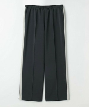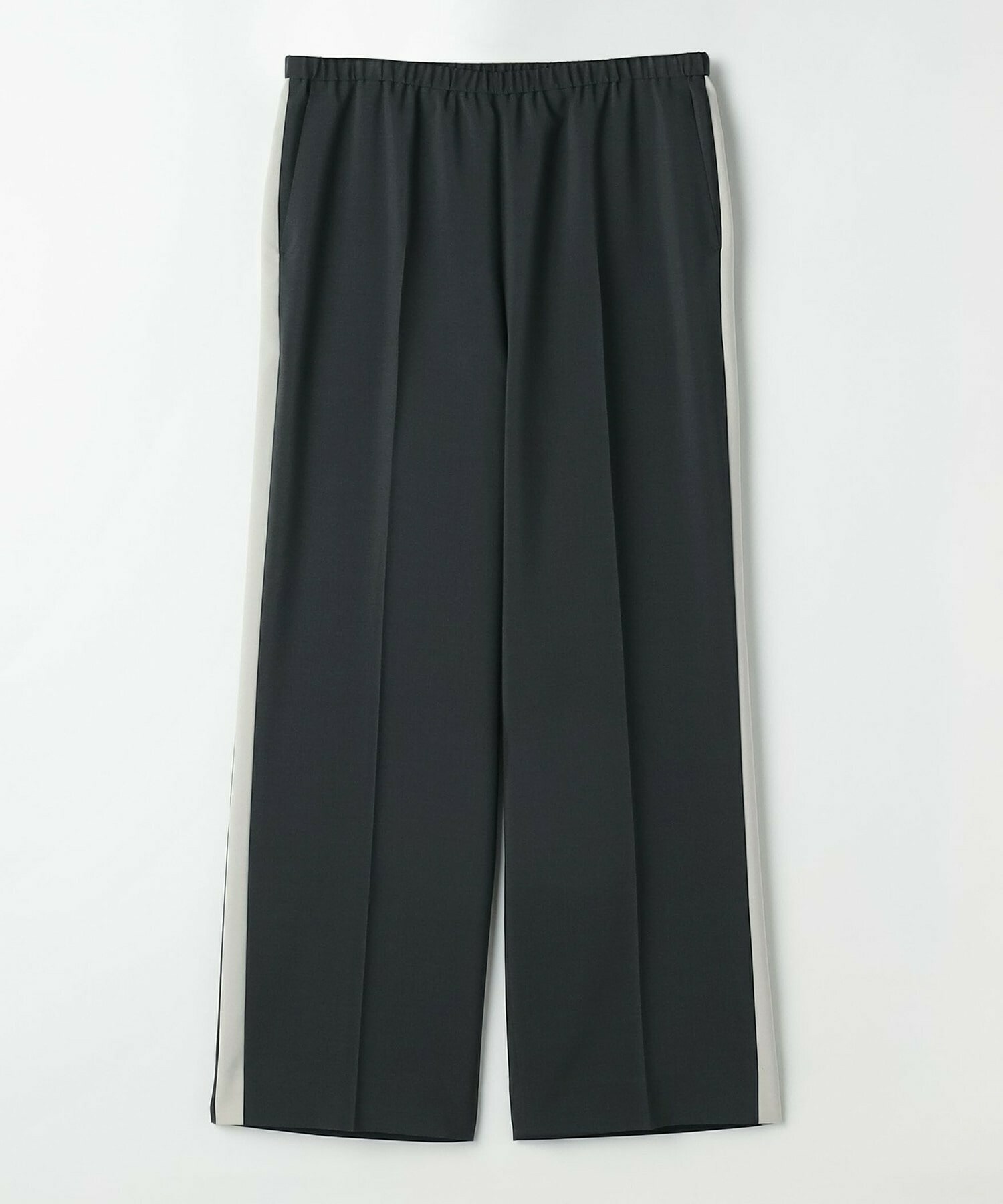 切り替えで表現した、ラインパンツ。太すぎないストレートシルエットで、トップスを選ばずバランスの取りやすい形です。少し太めに入れたラインでスポーティさを取り入れつつ、シックな素材と色目なので、きれい目に着こなせる一枚です。