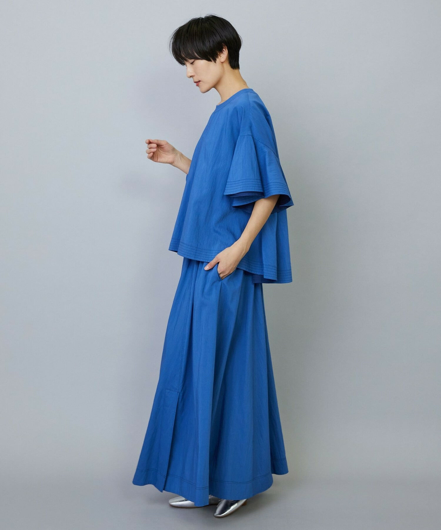 • 【MOGA】【Lサイズ】ライトタイプライターフレアーブラウス 詳細画像 ブルー 23