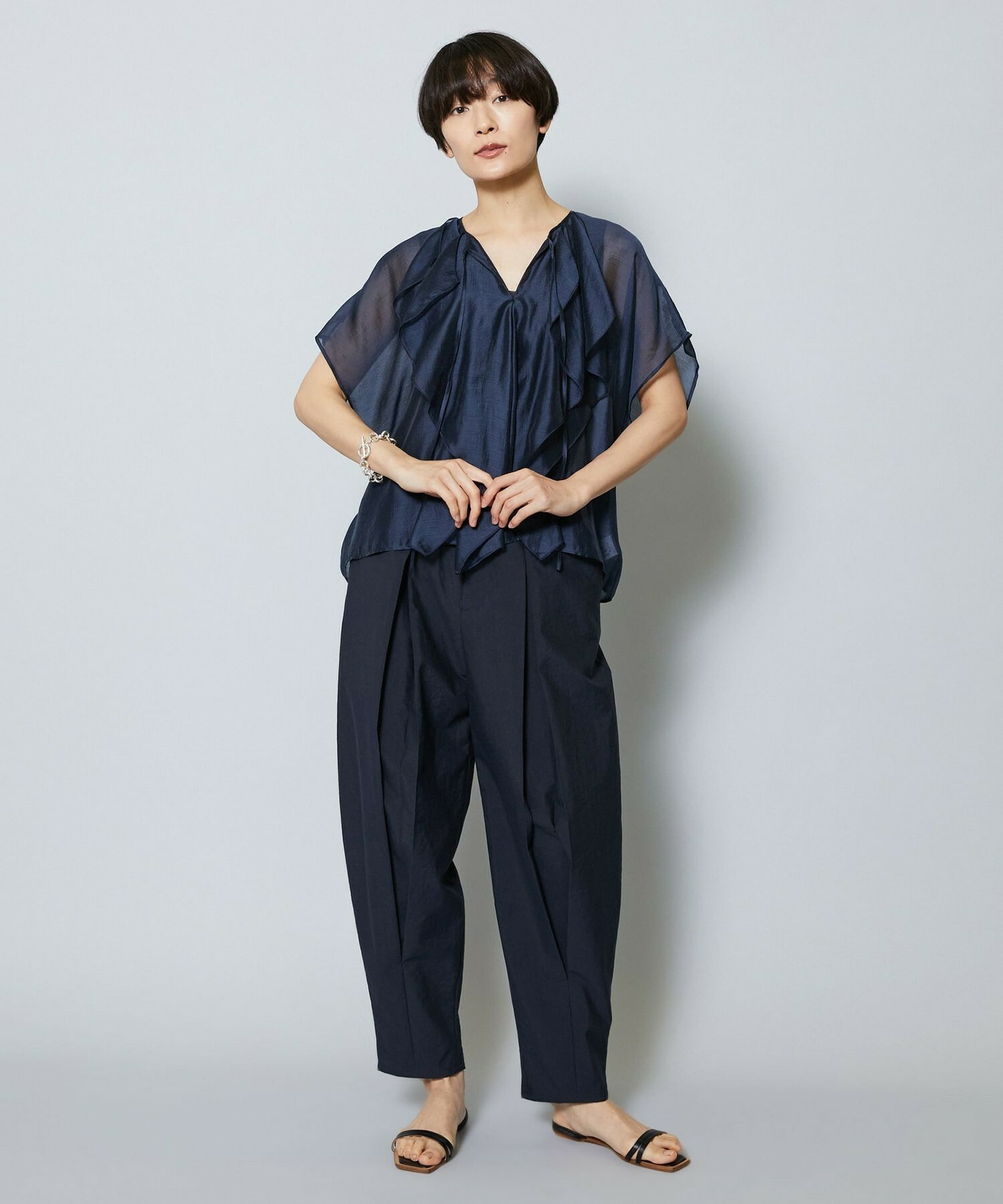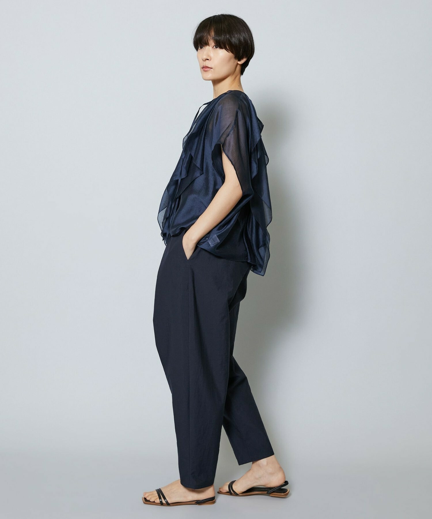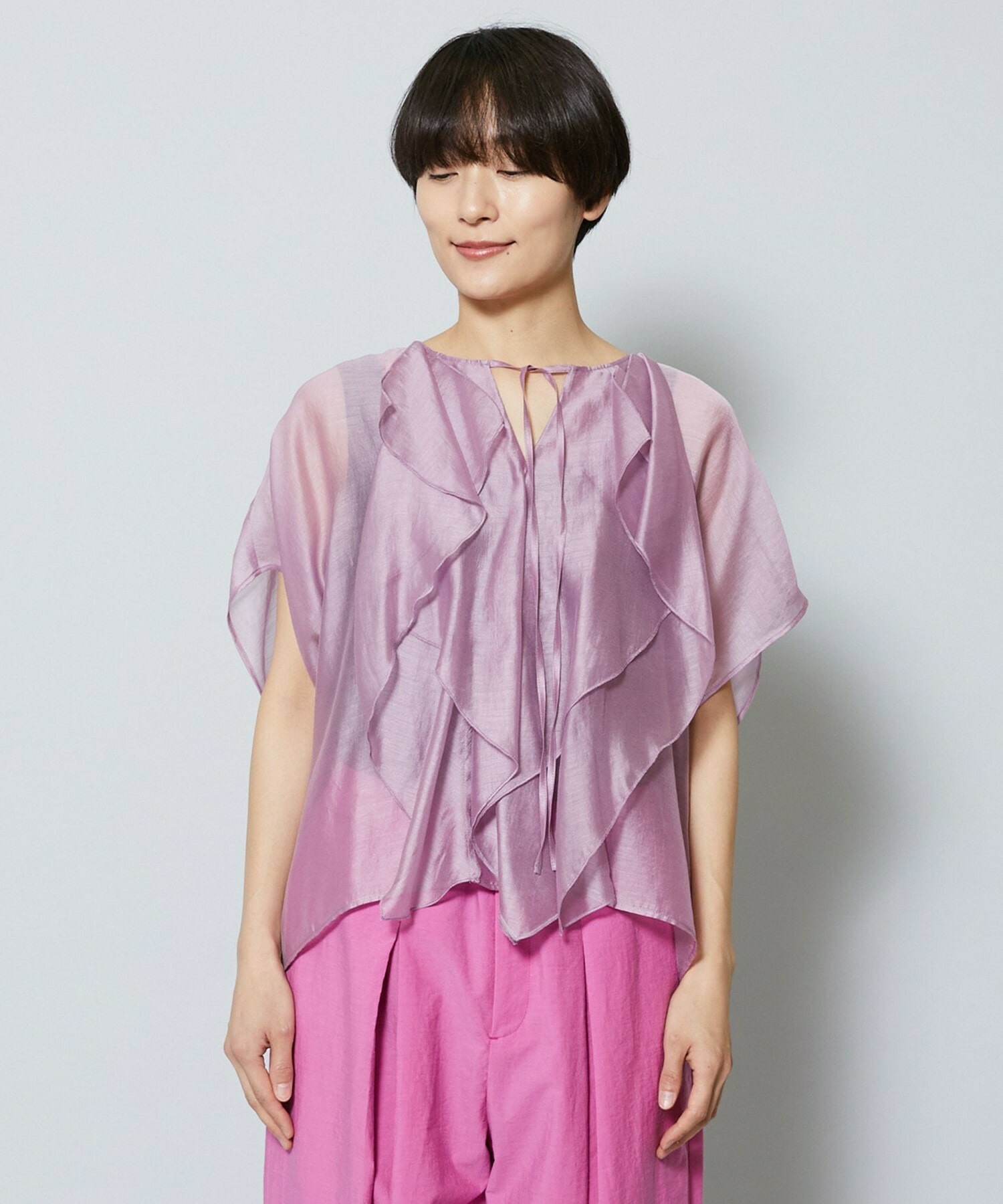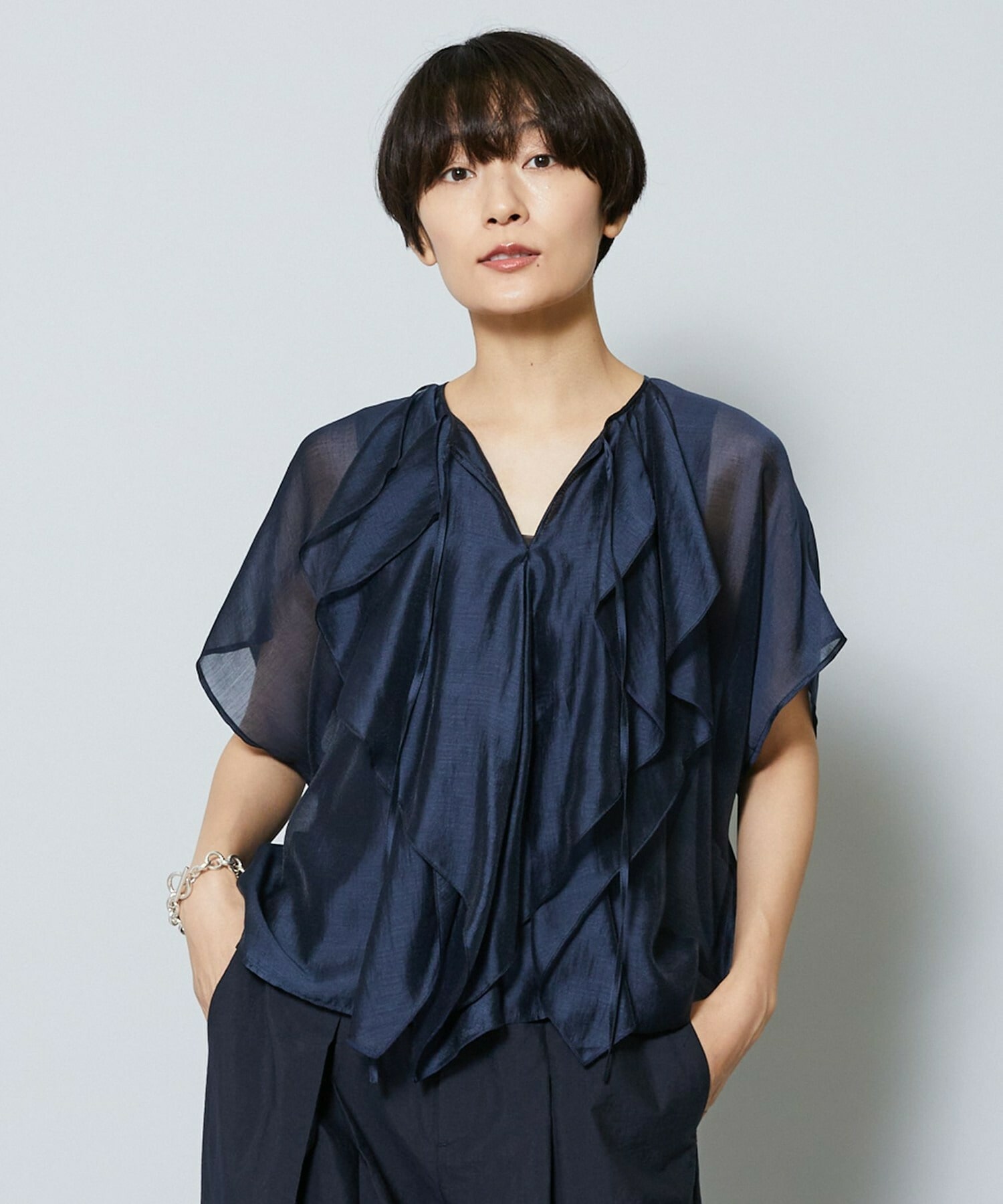 シアーな透け感とエアリーなタッチを存分に生かしたブラウス。