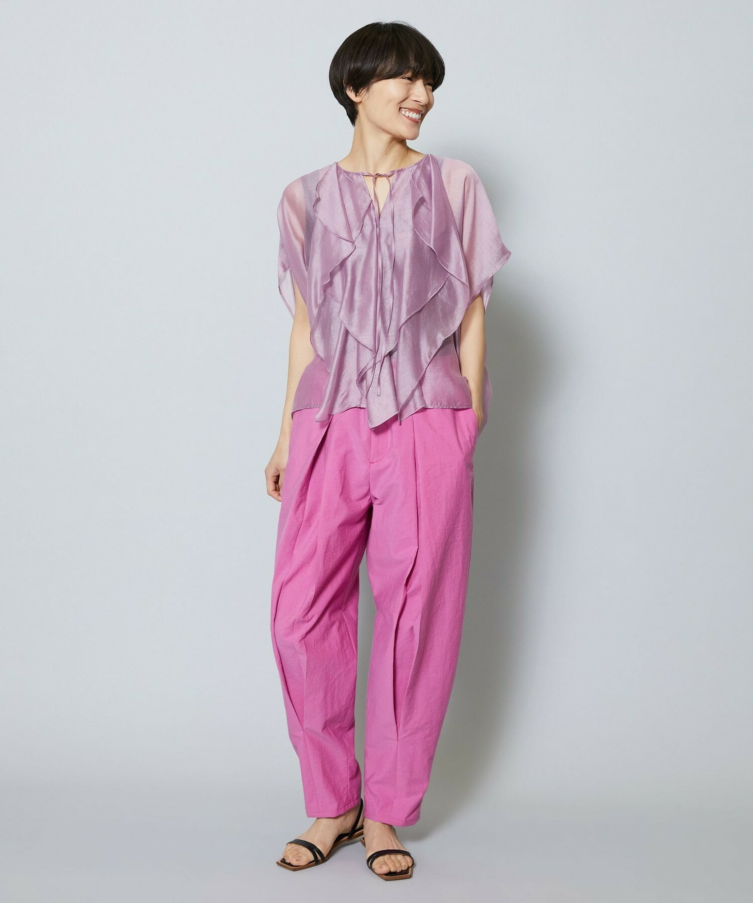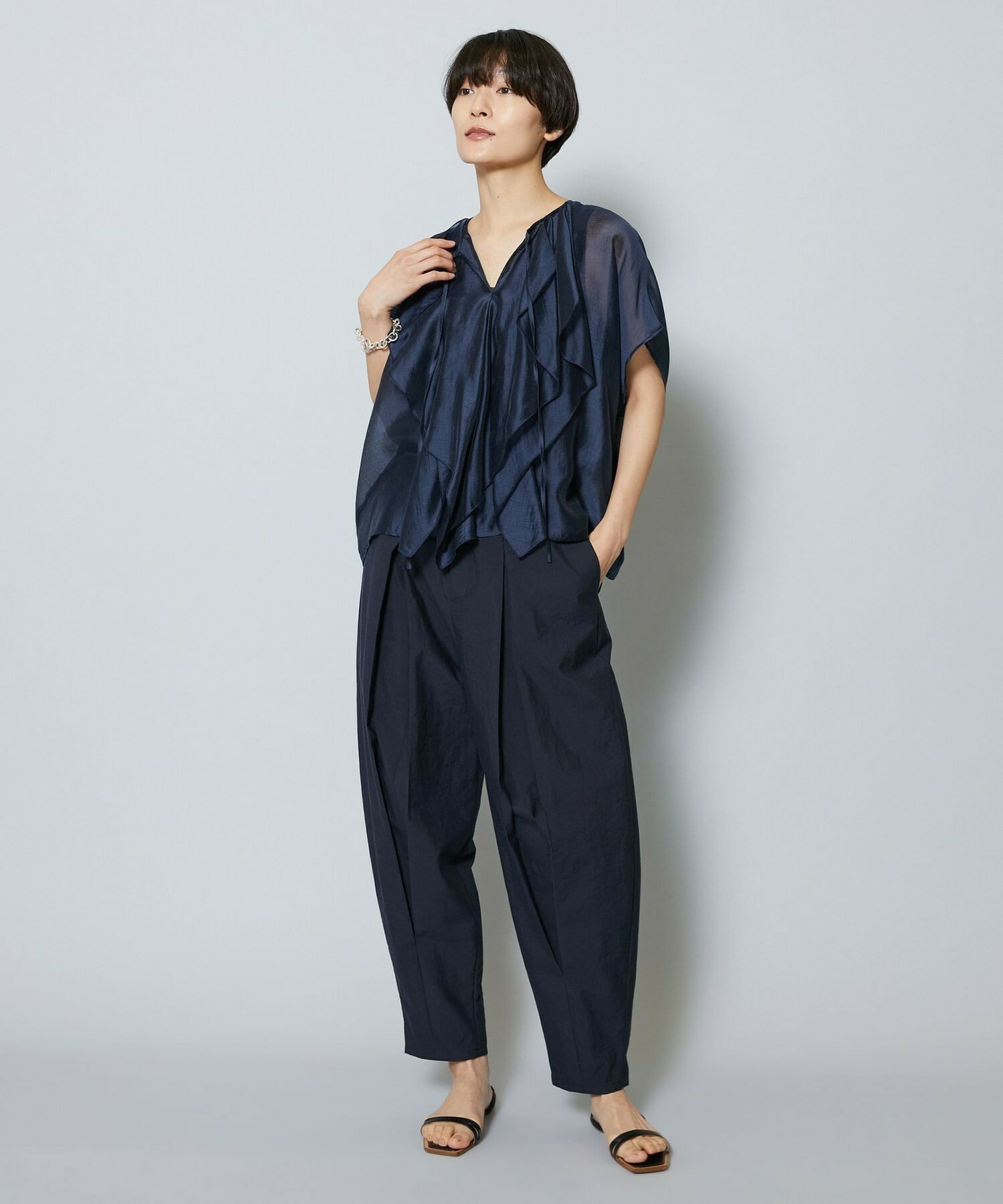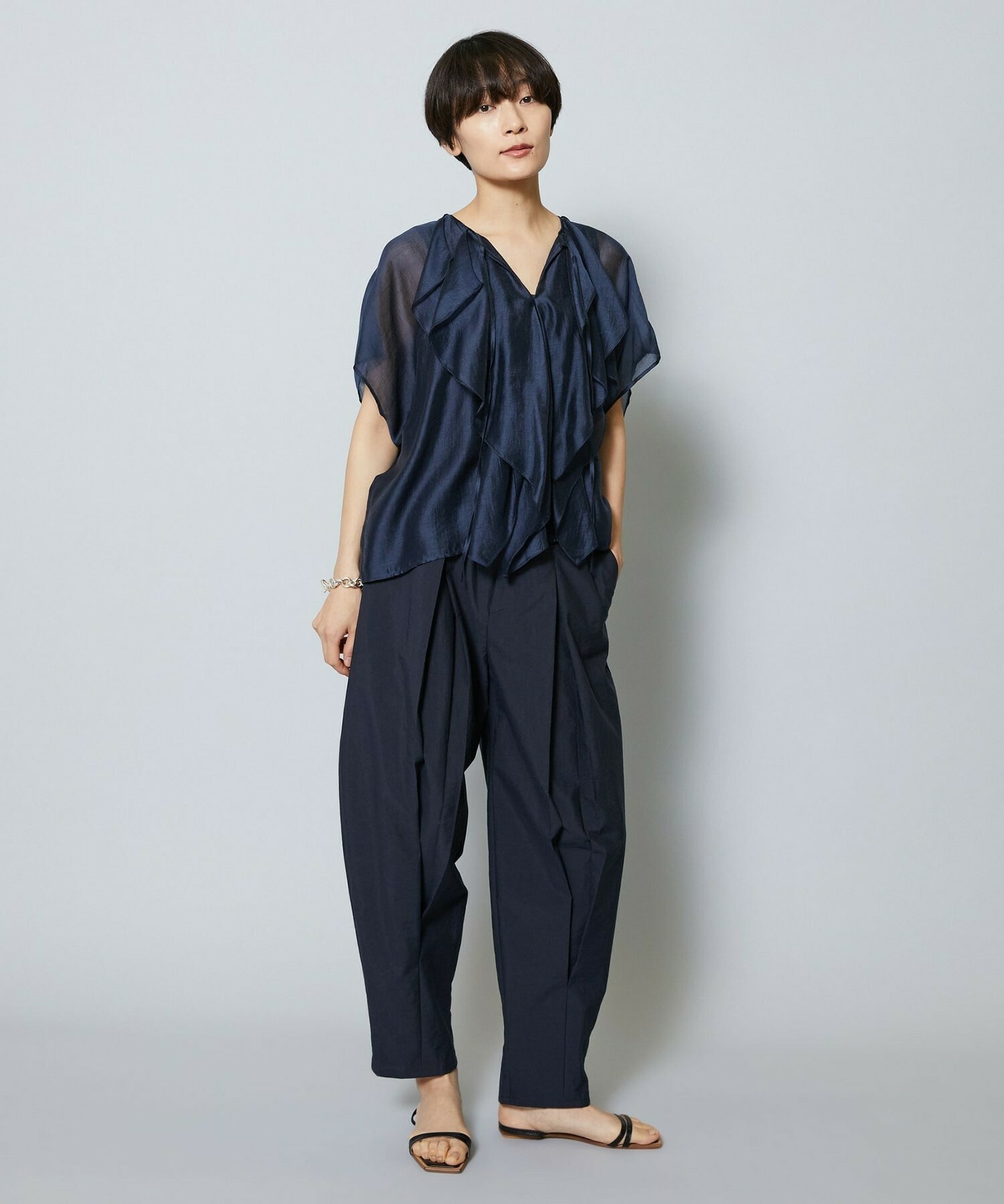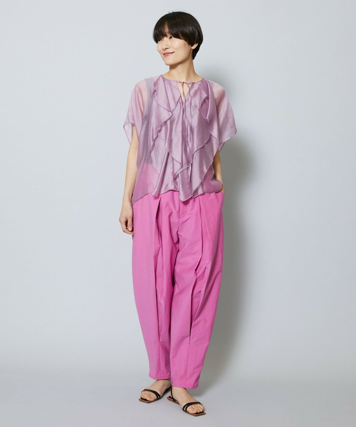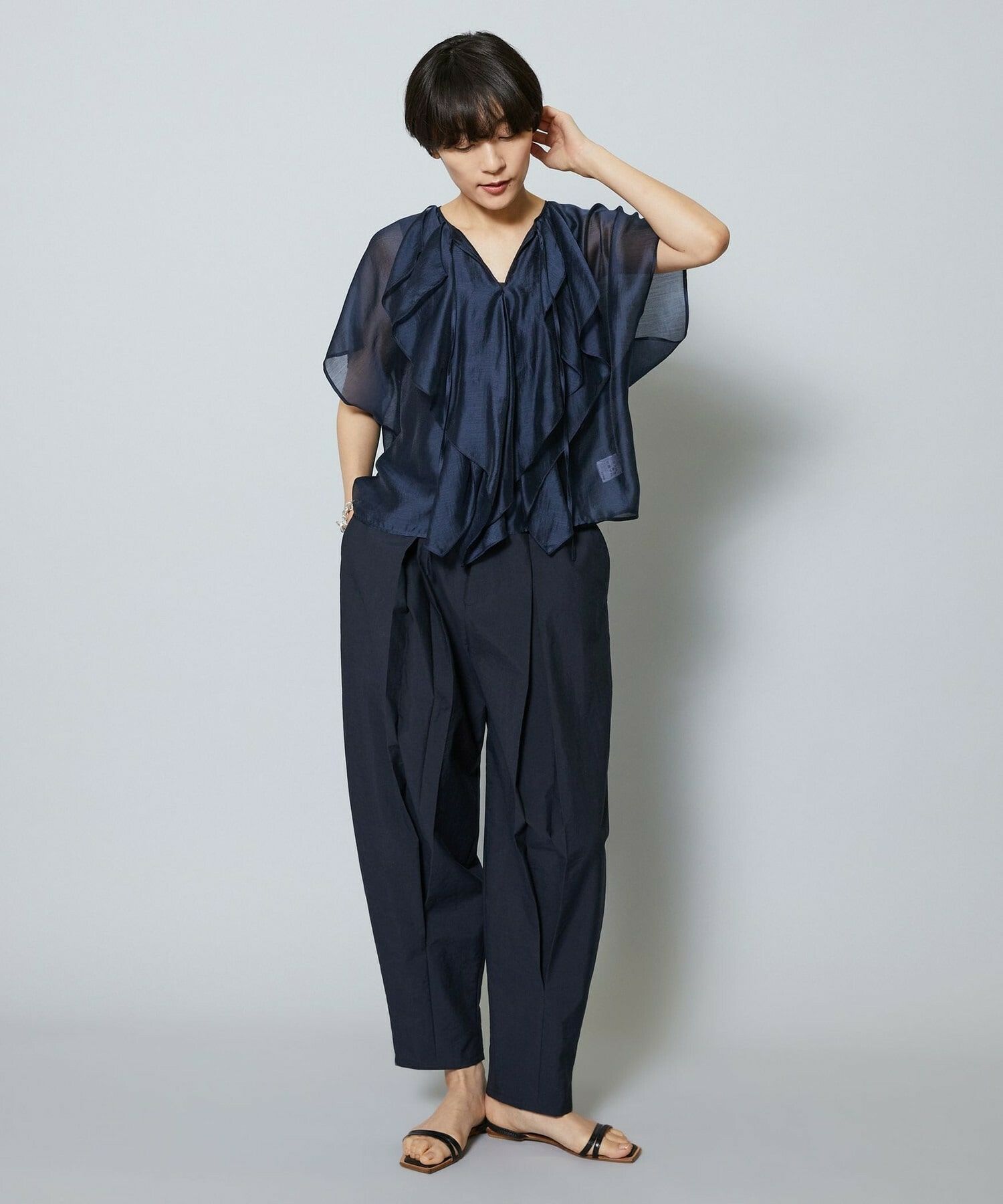 シアーな透け感とエアリーなタッチを存分に生かしたブラウス。