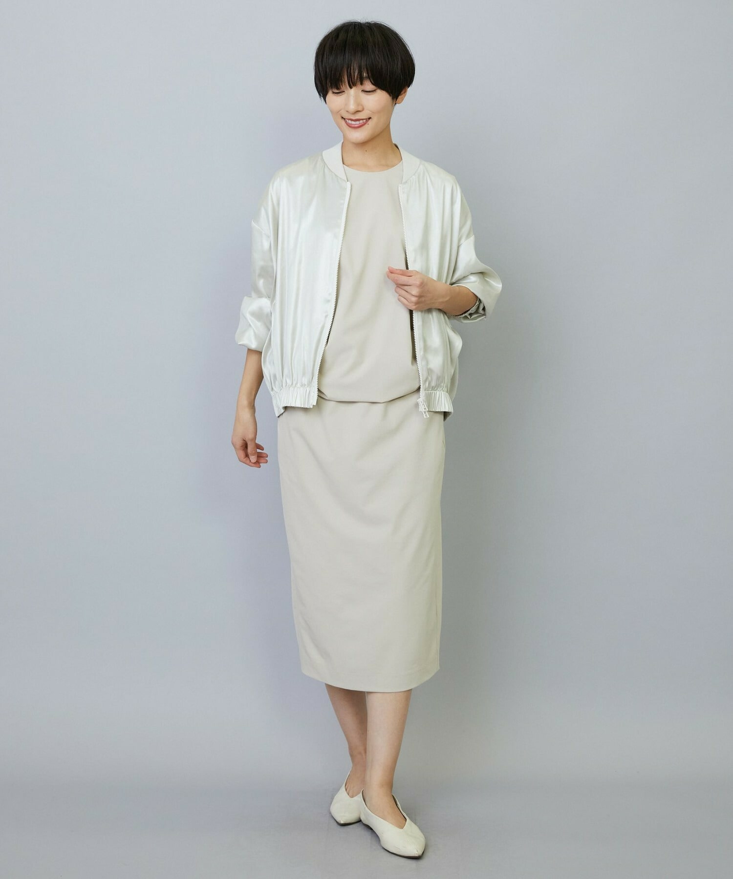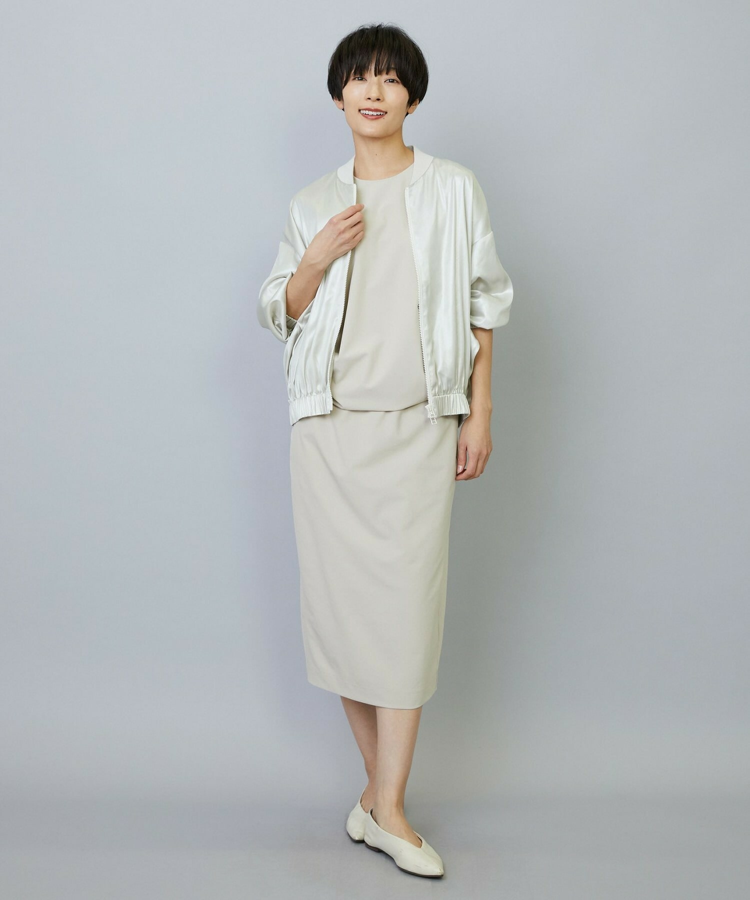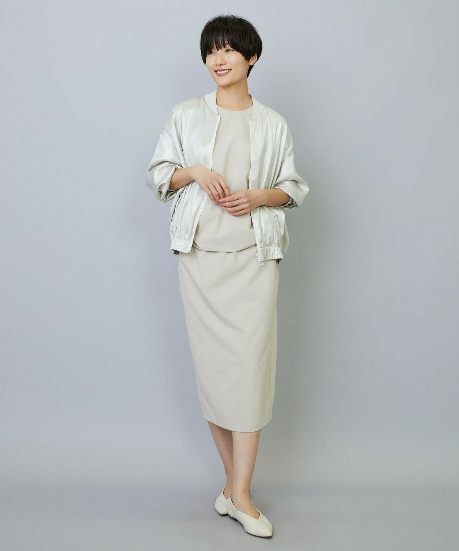 バランスの良いシルエット、程よく体型カバーしてスッキリと上品に見せてくれます。