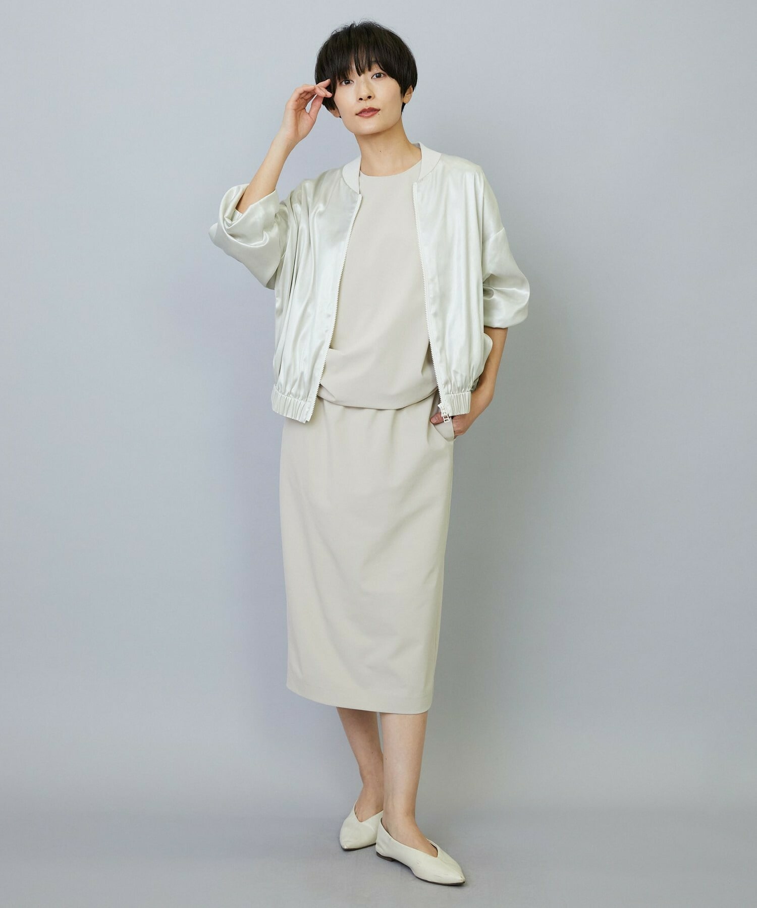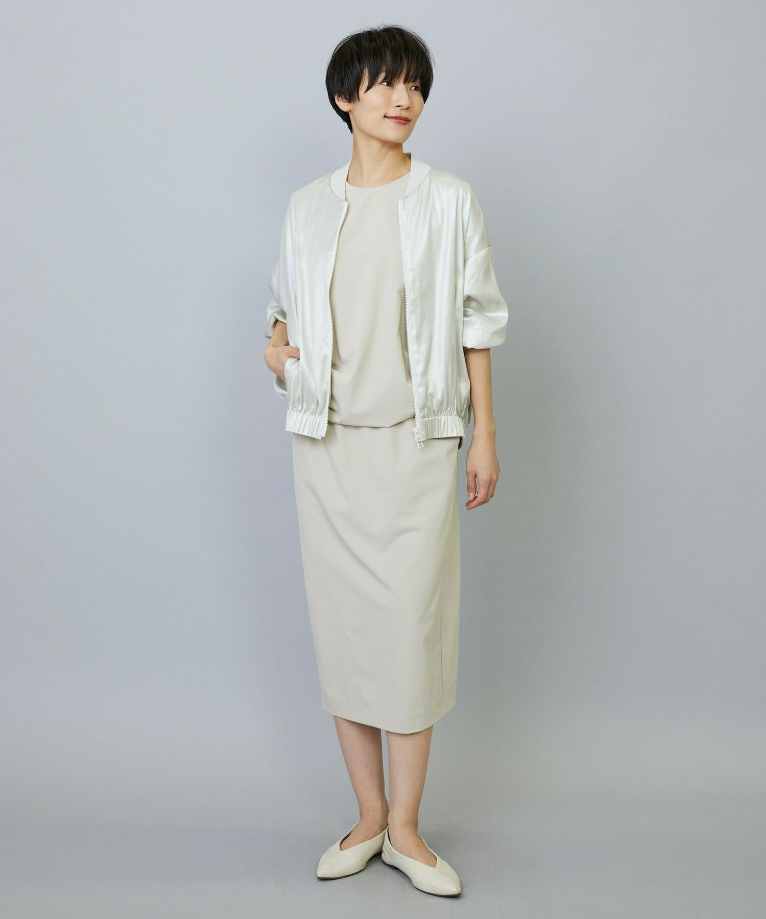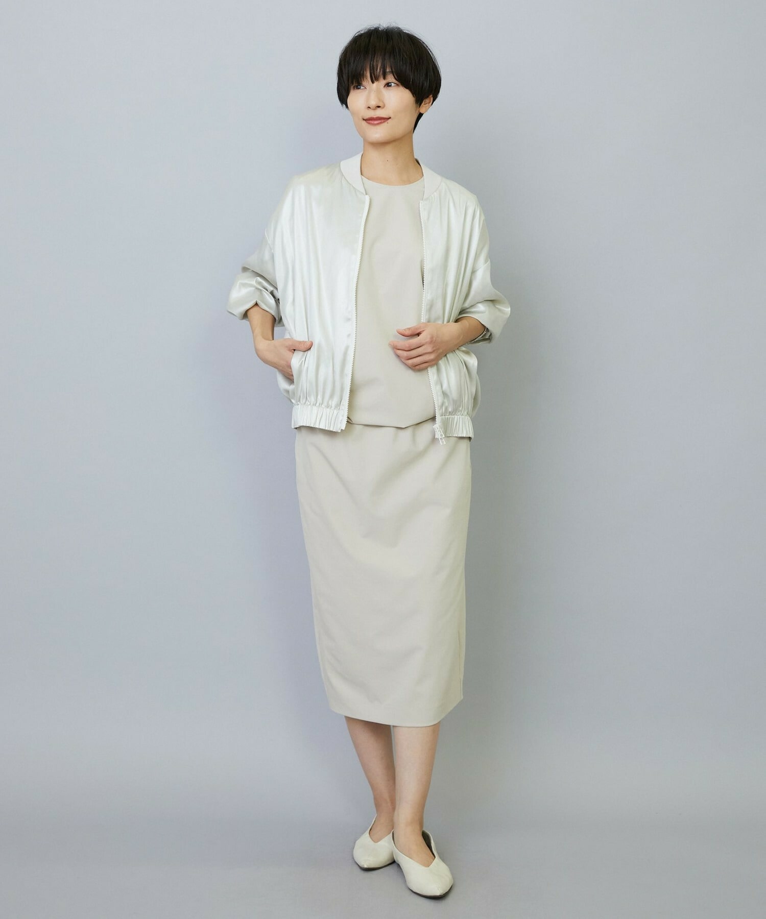 バランスの良いシルエット、程よく体型カバーしてスッキリと上品に見せてくれます。