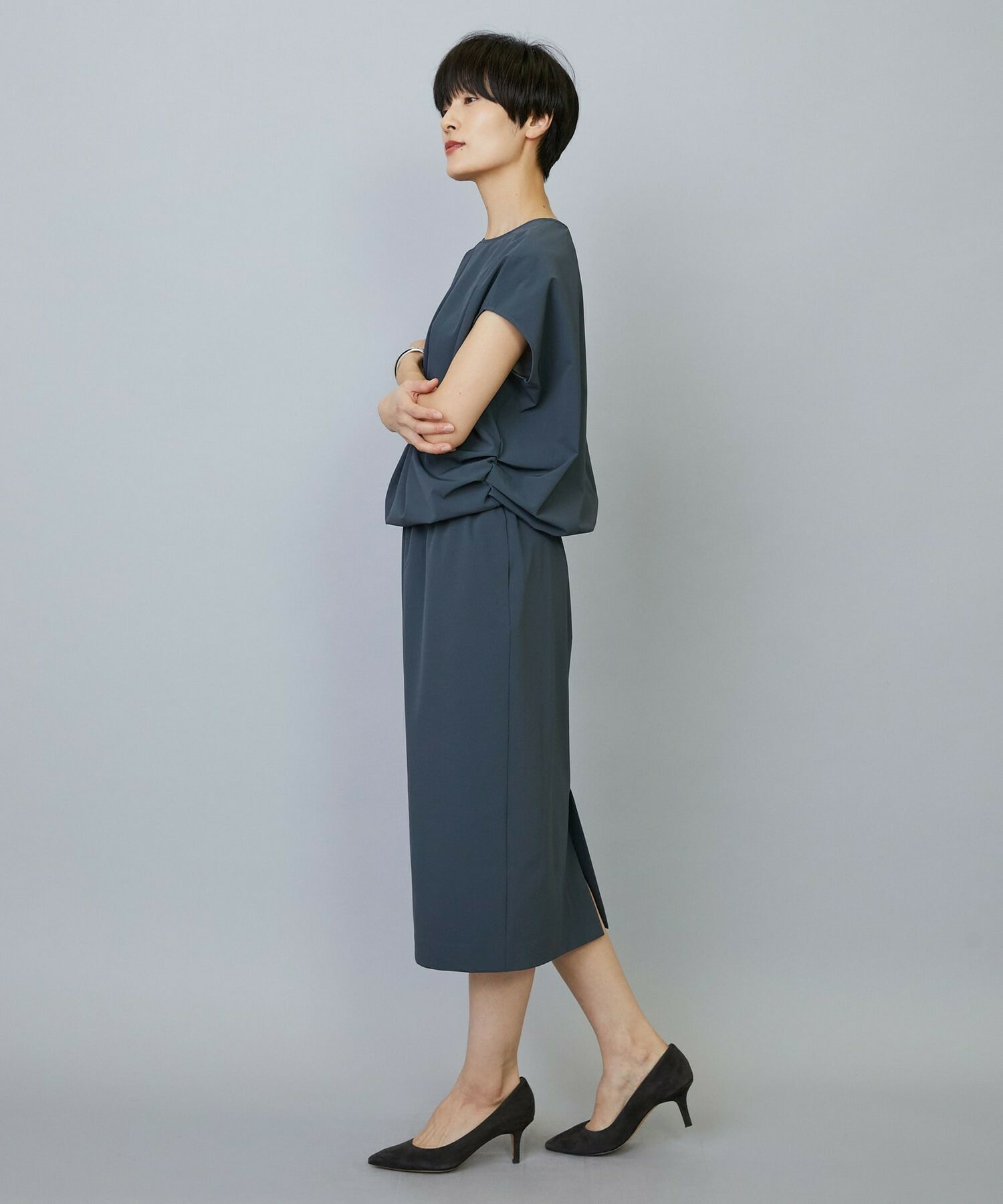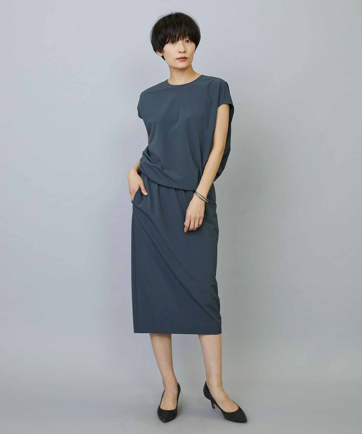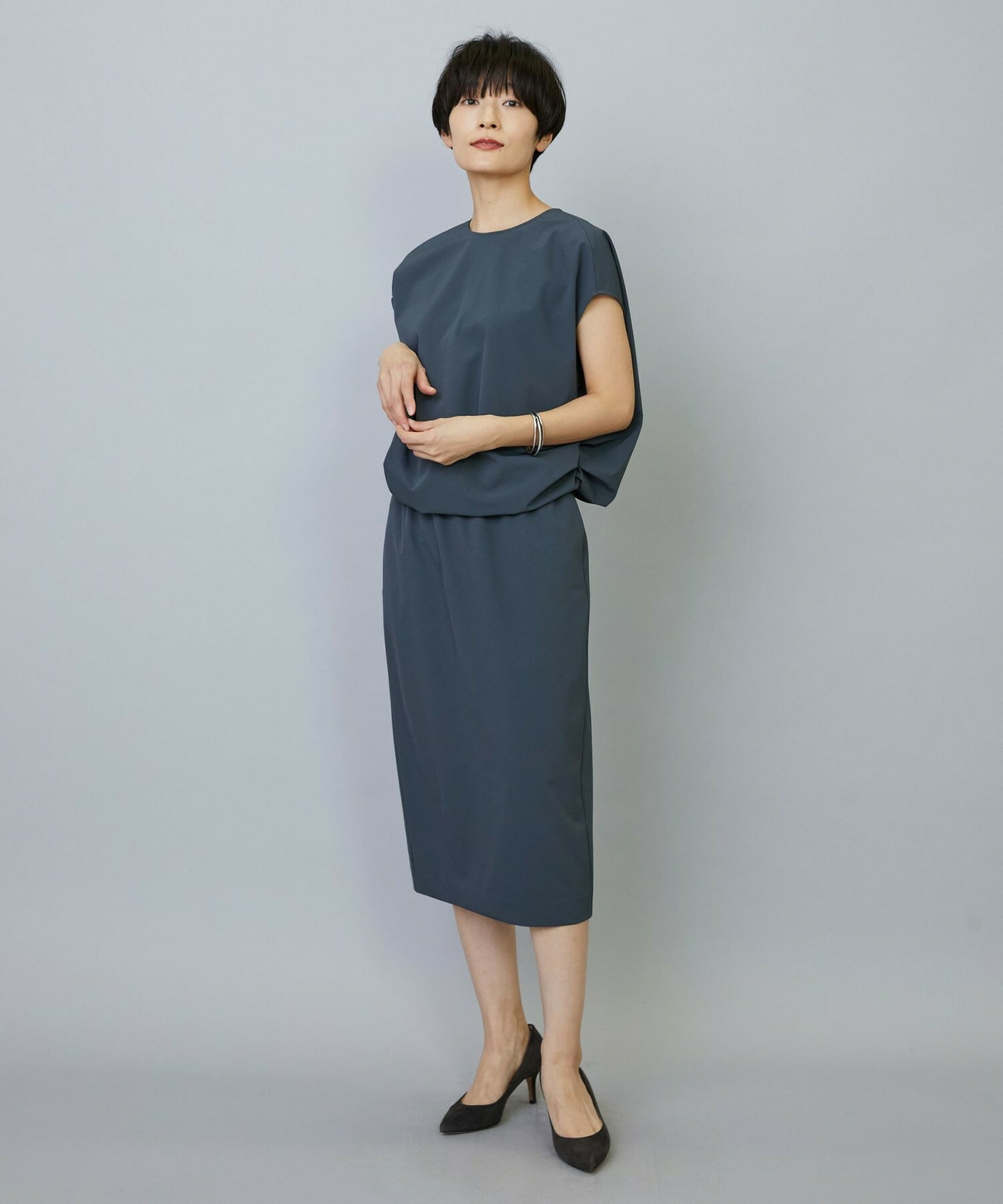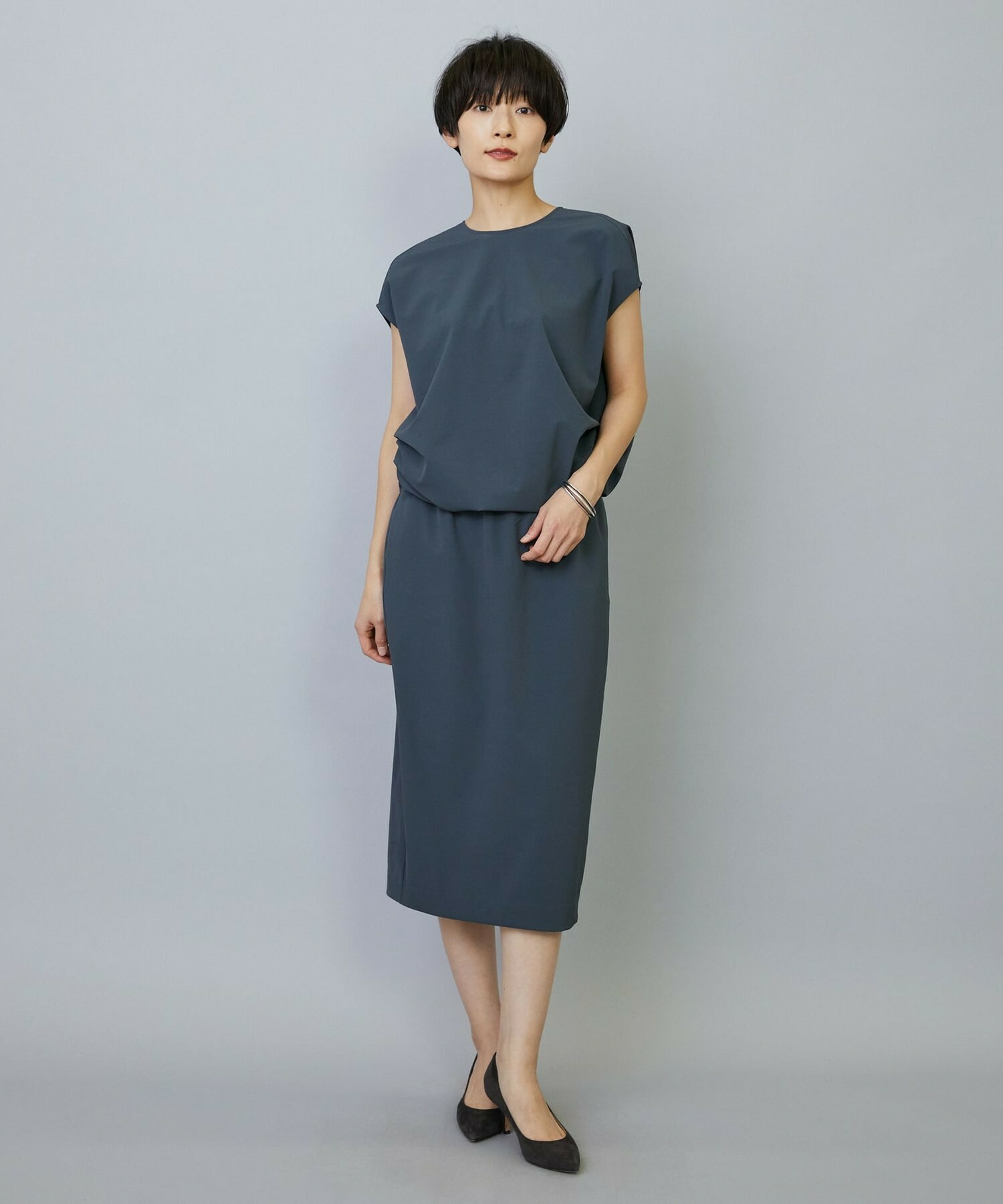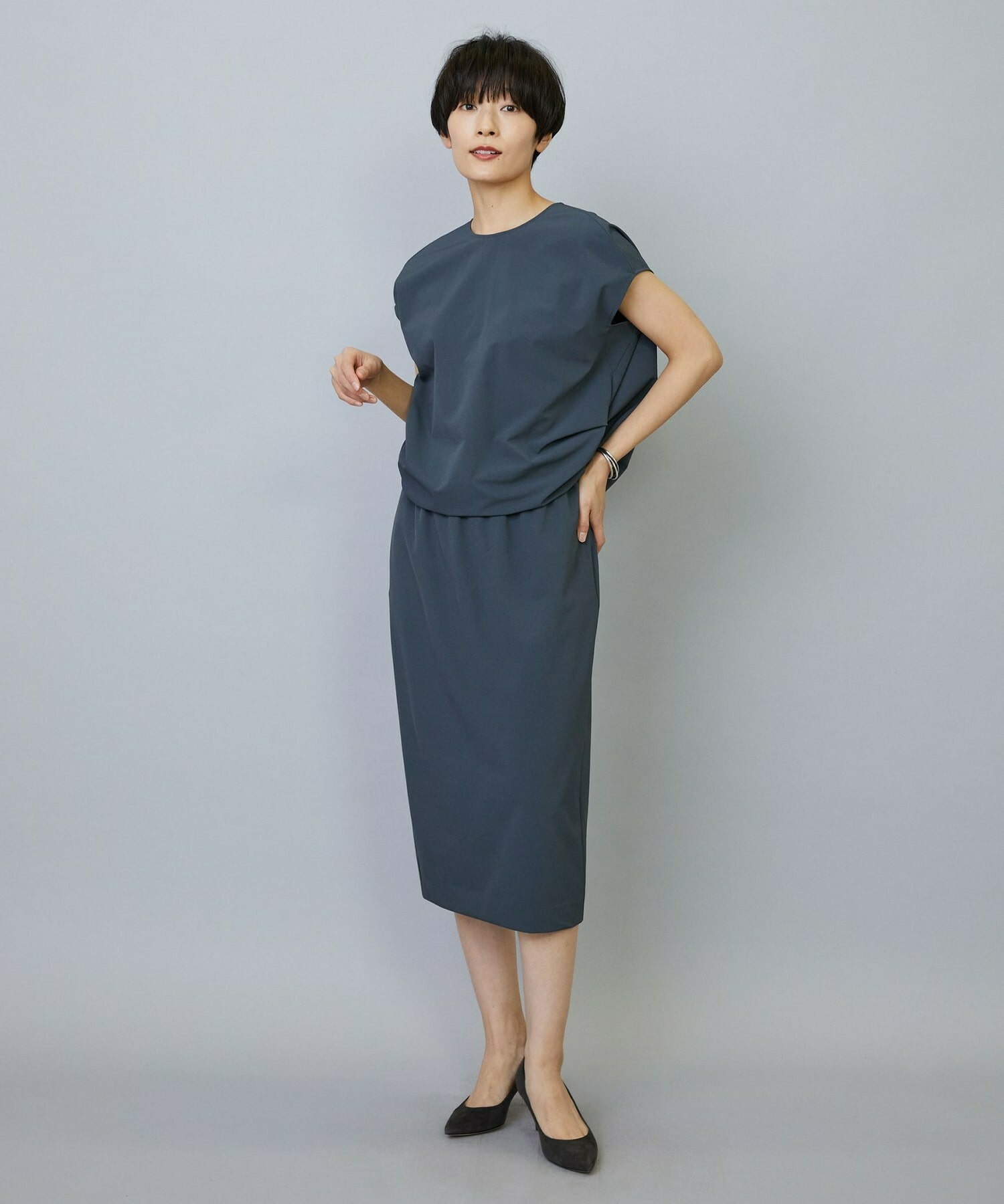 きちんと感を出しつつ高機能素材を生かしたストレスフリーなワンピースです。