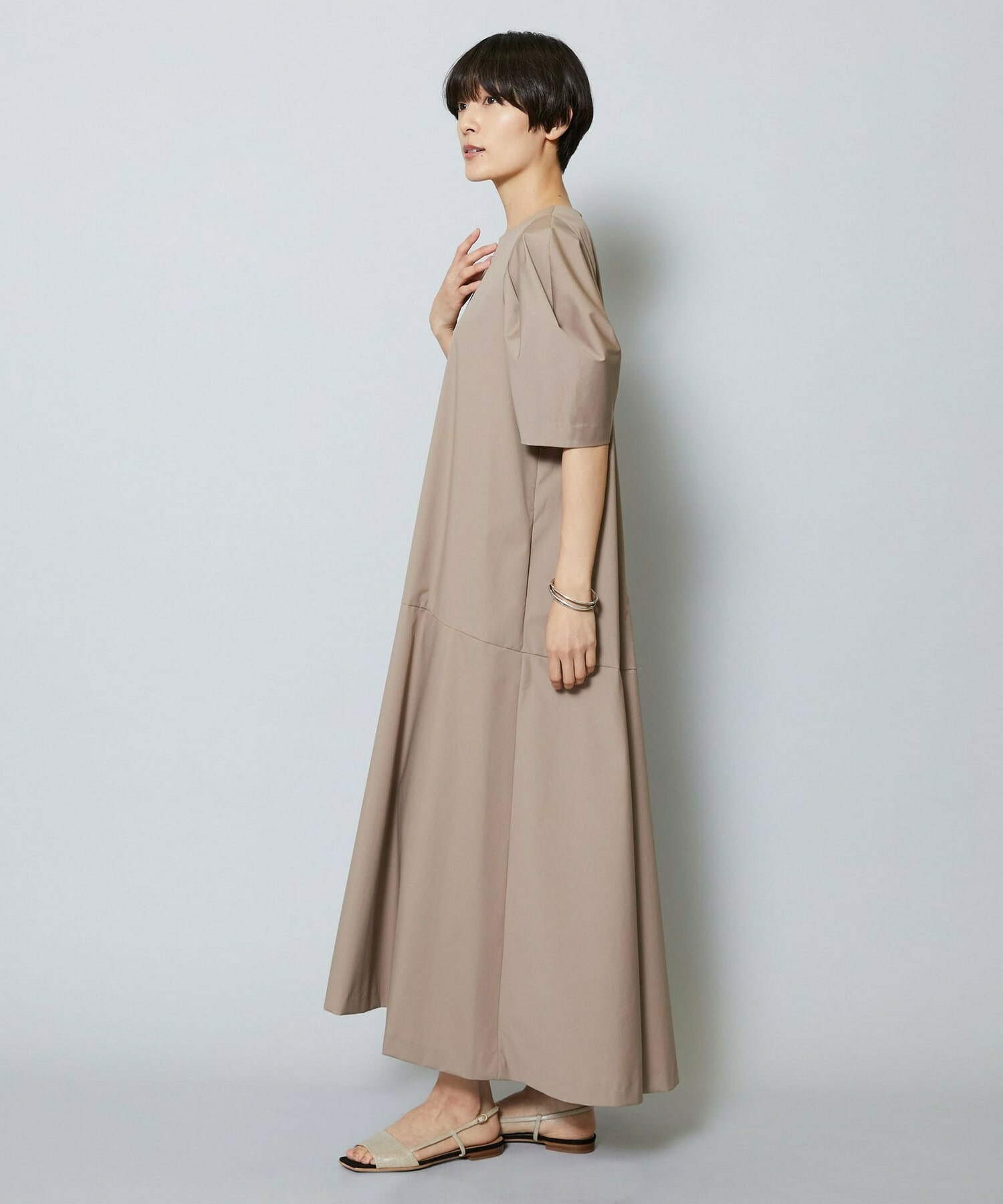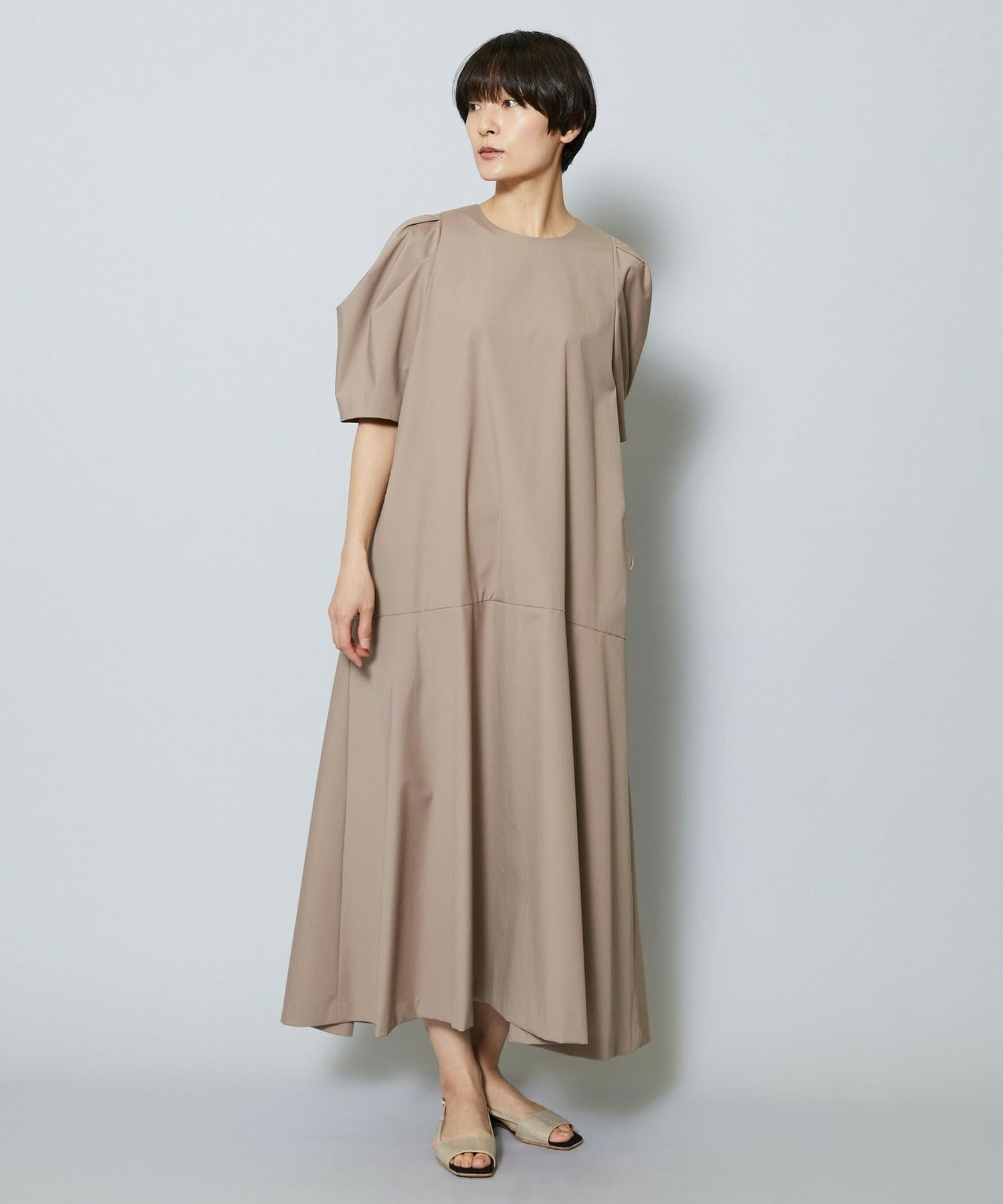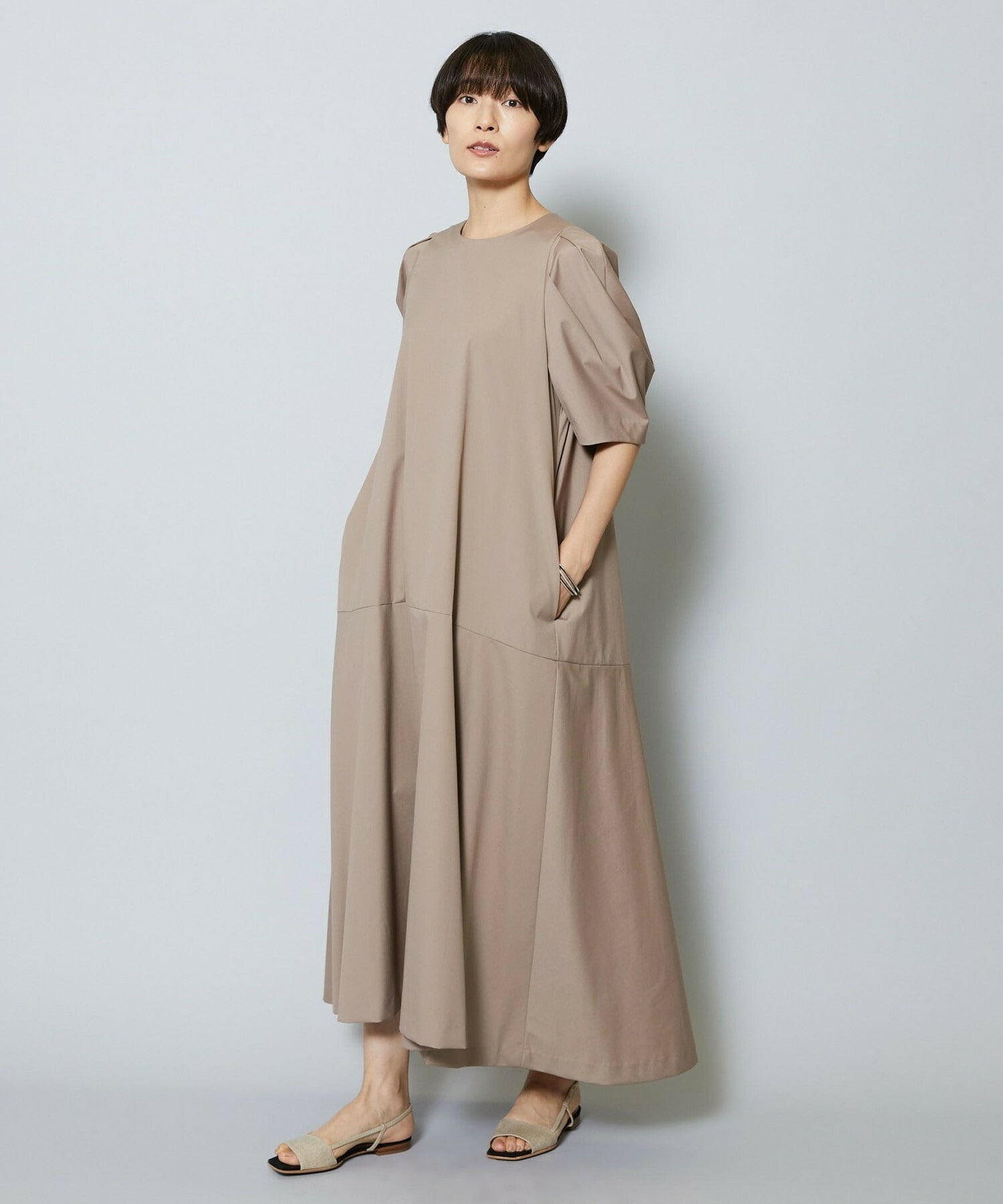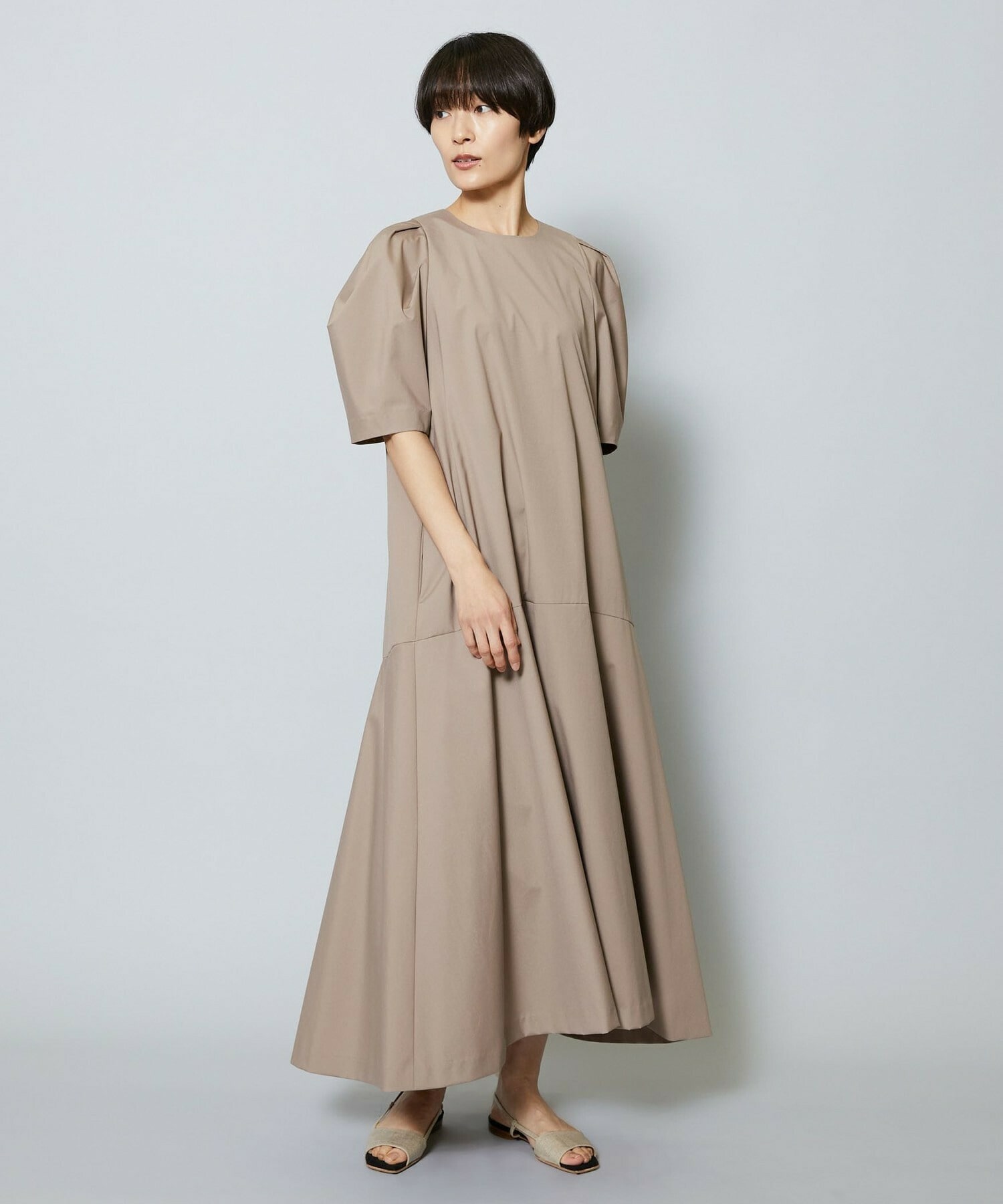 Aラインにたっぷりとした分量感を出したフレアーシルエットのワンピース。