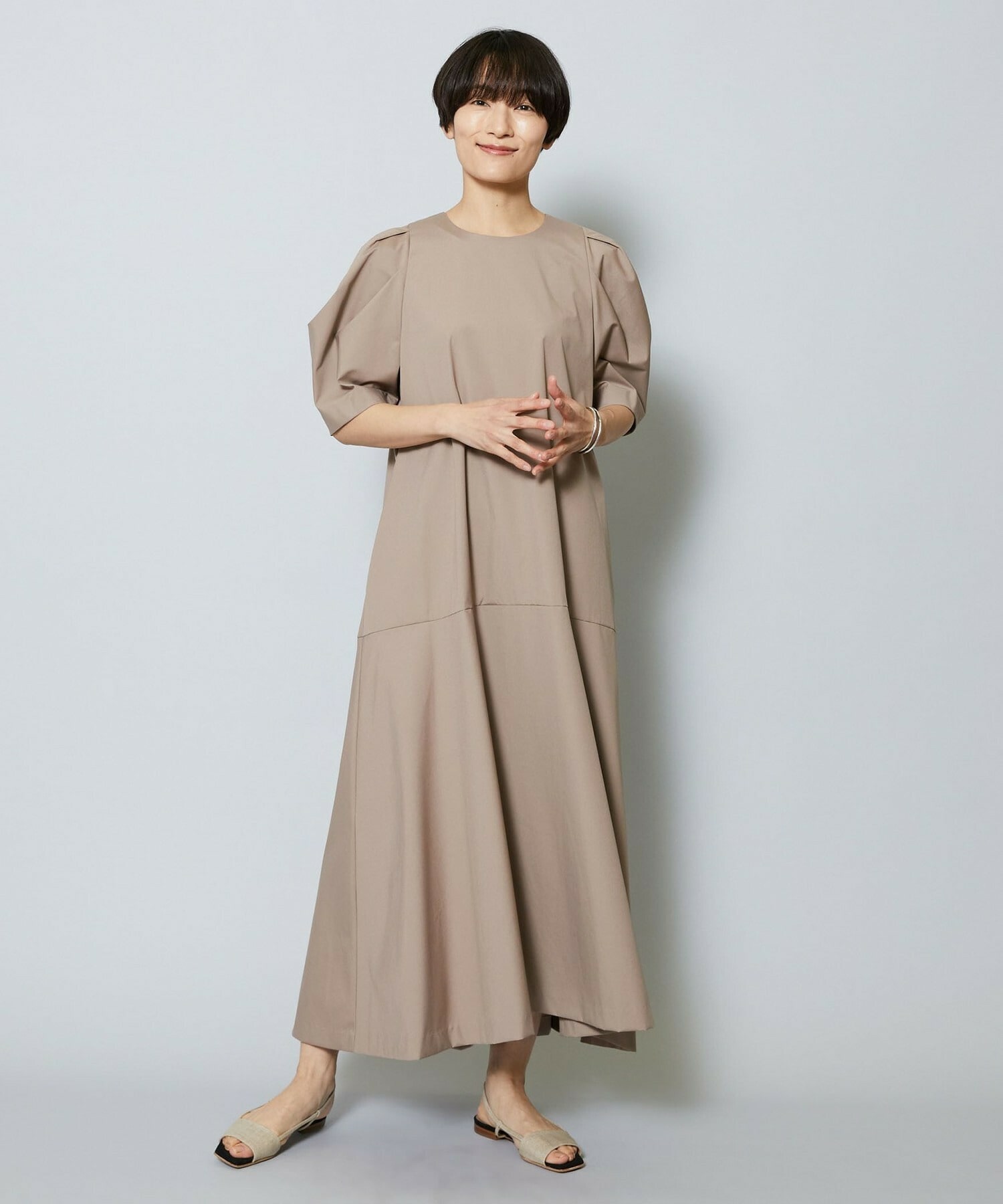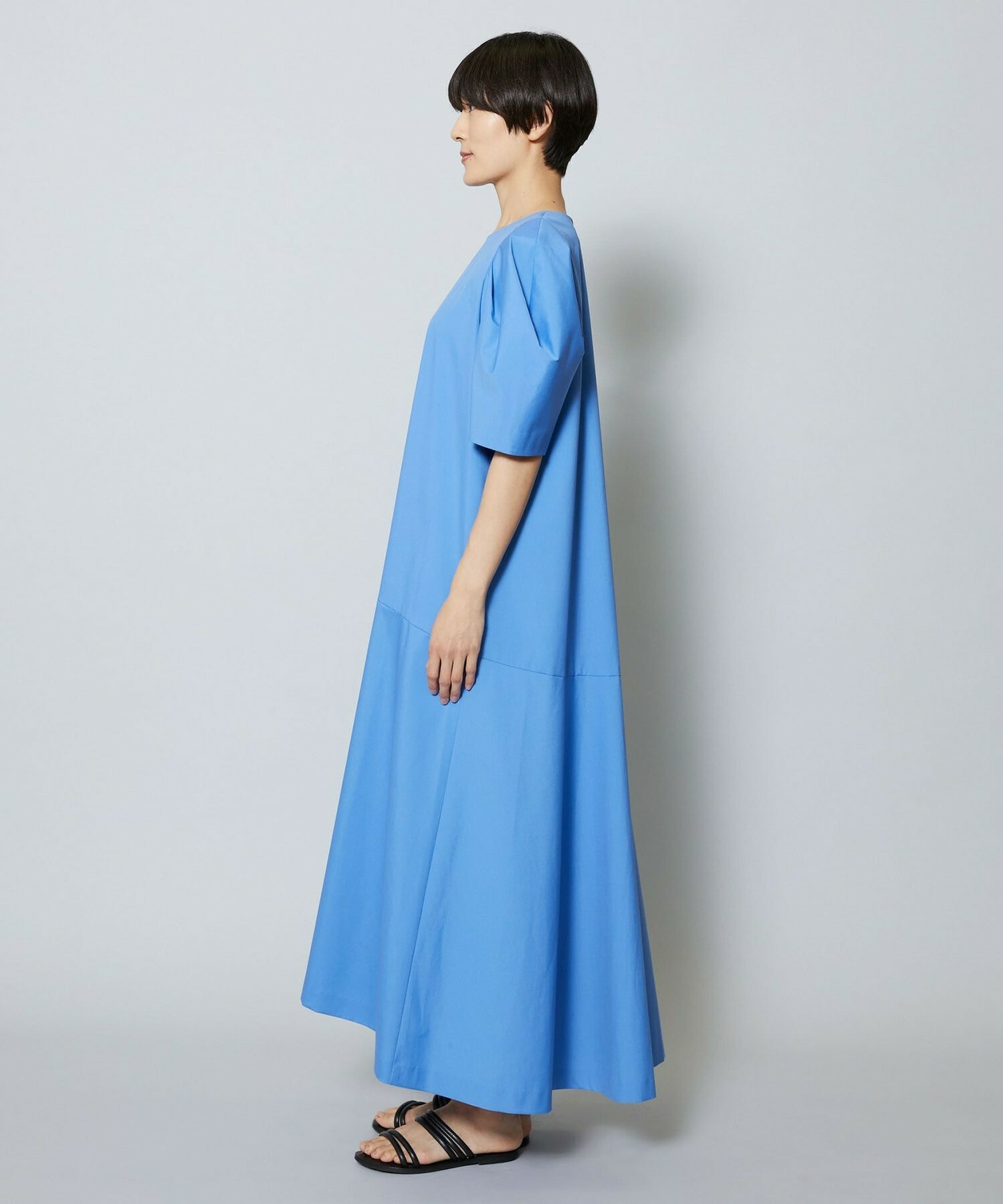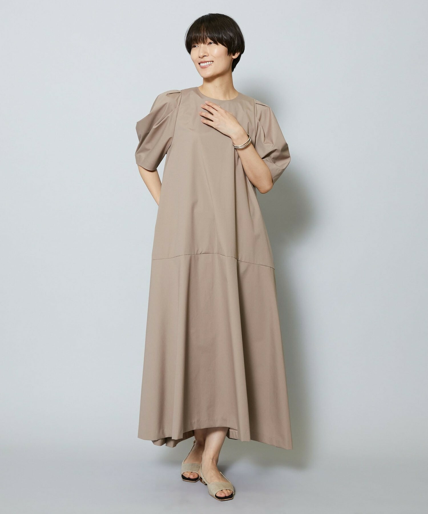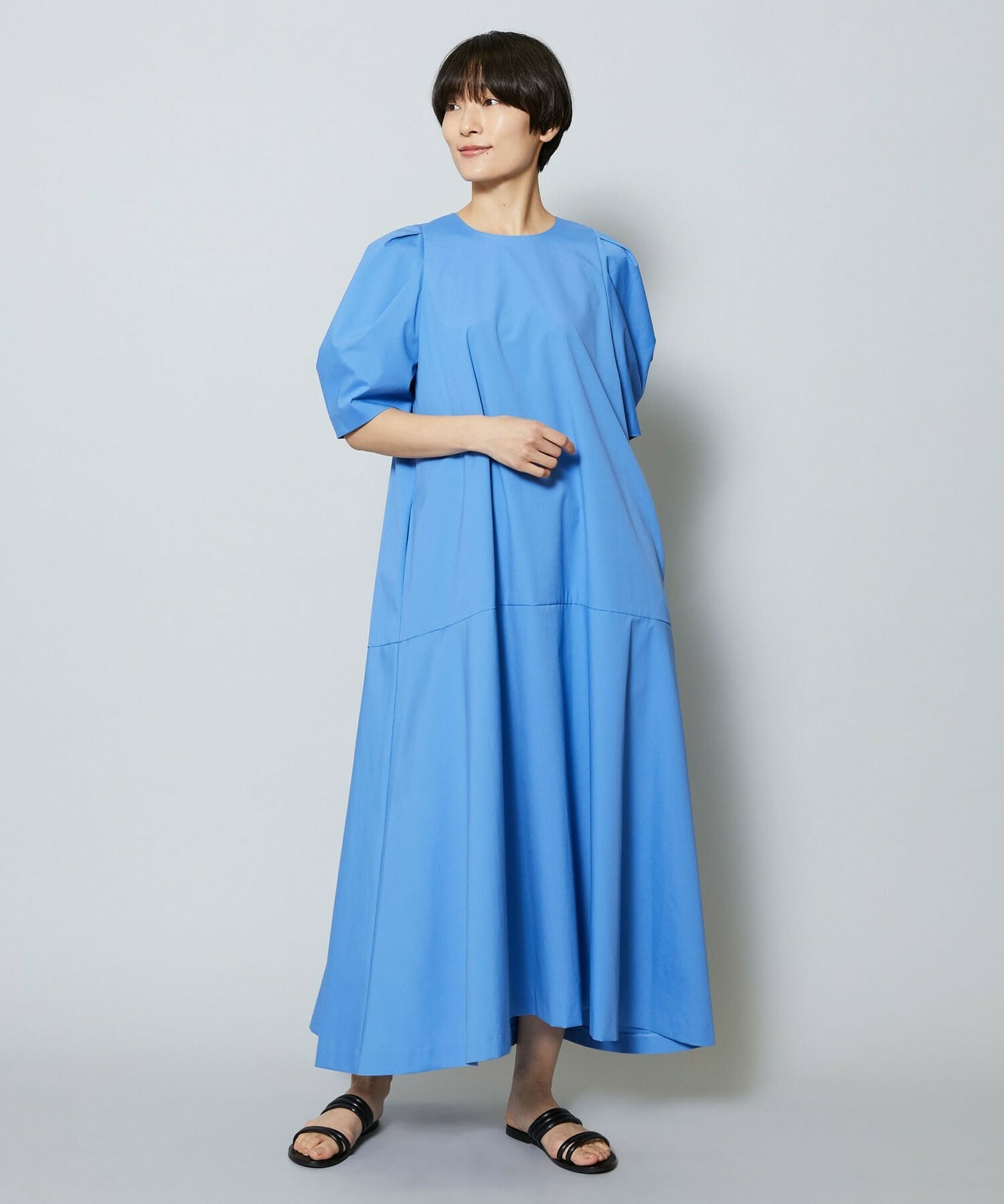 Aラインにたっぷりとした分量感を出したフレアーシルエットのワンピース。