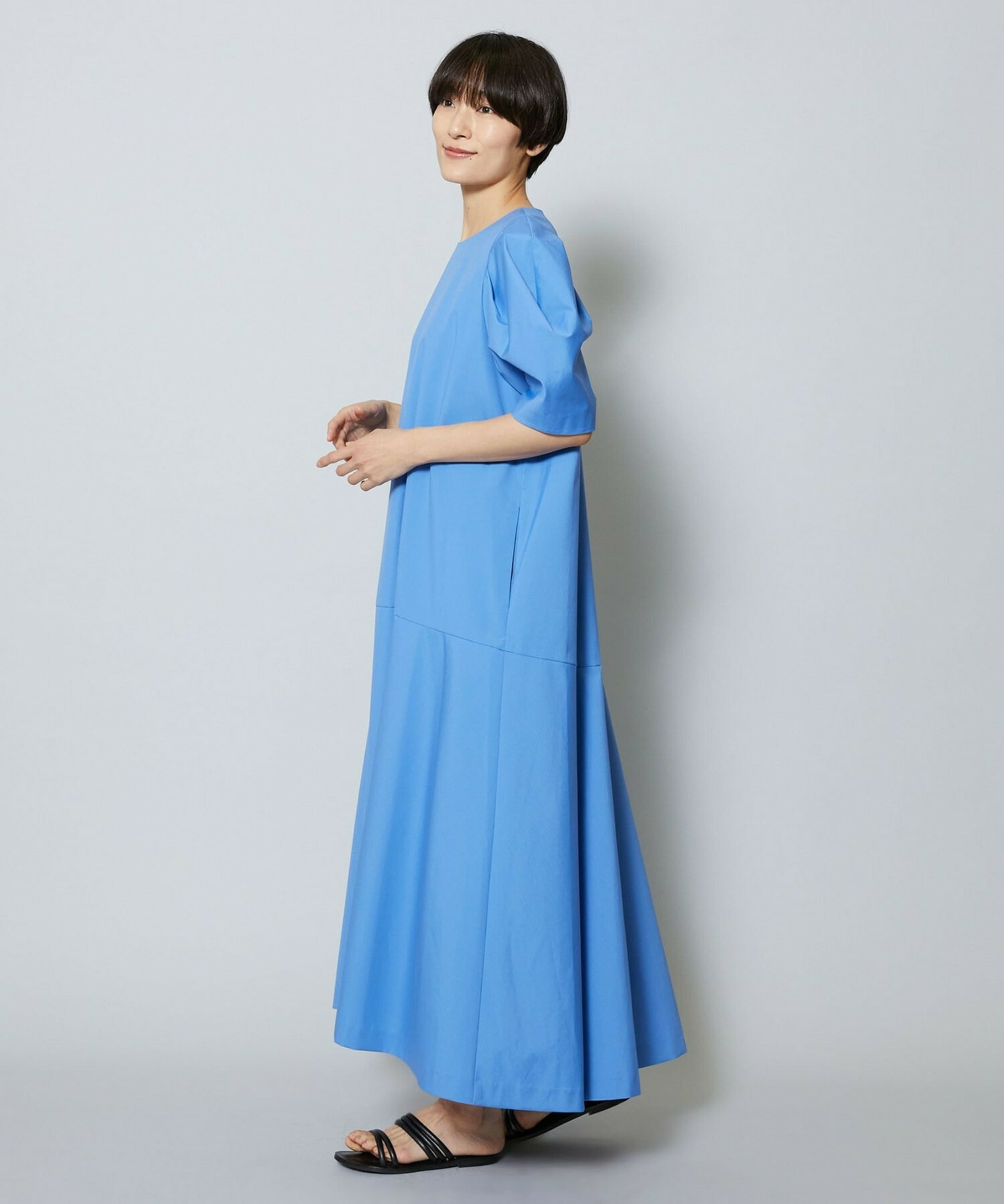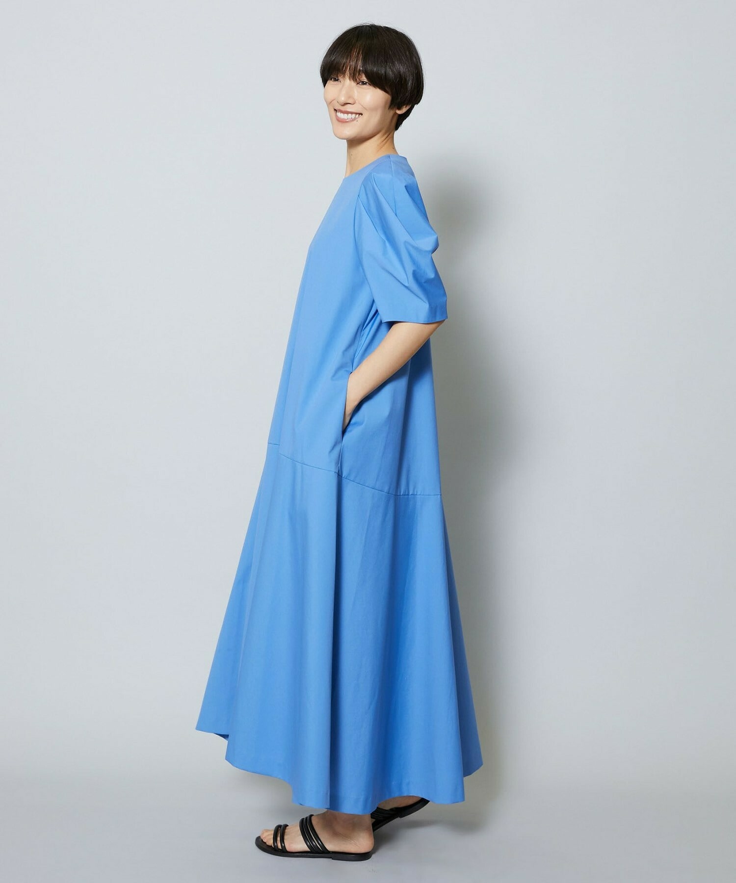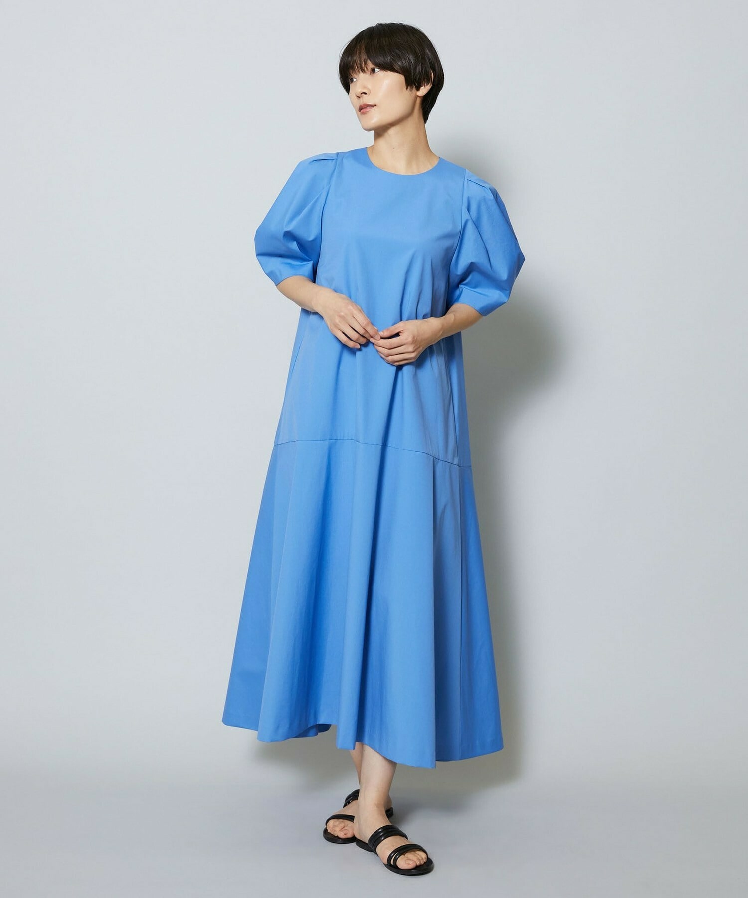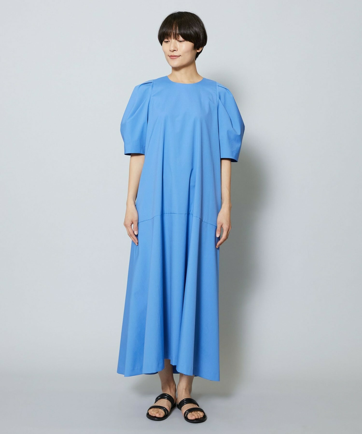 Aラインにたっぷりとした分量感を出したフレアーシルエットのワンピース。