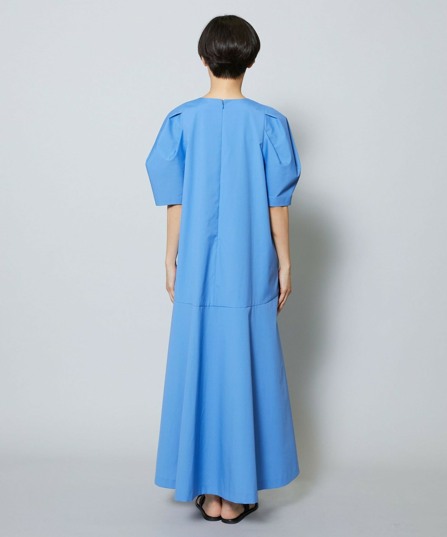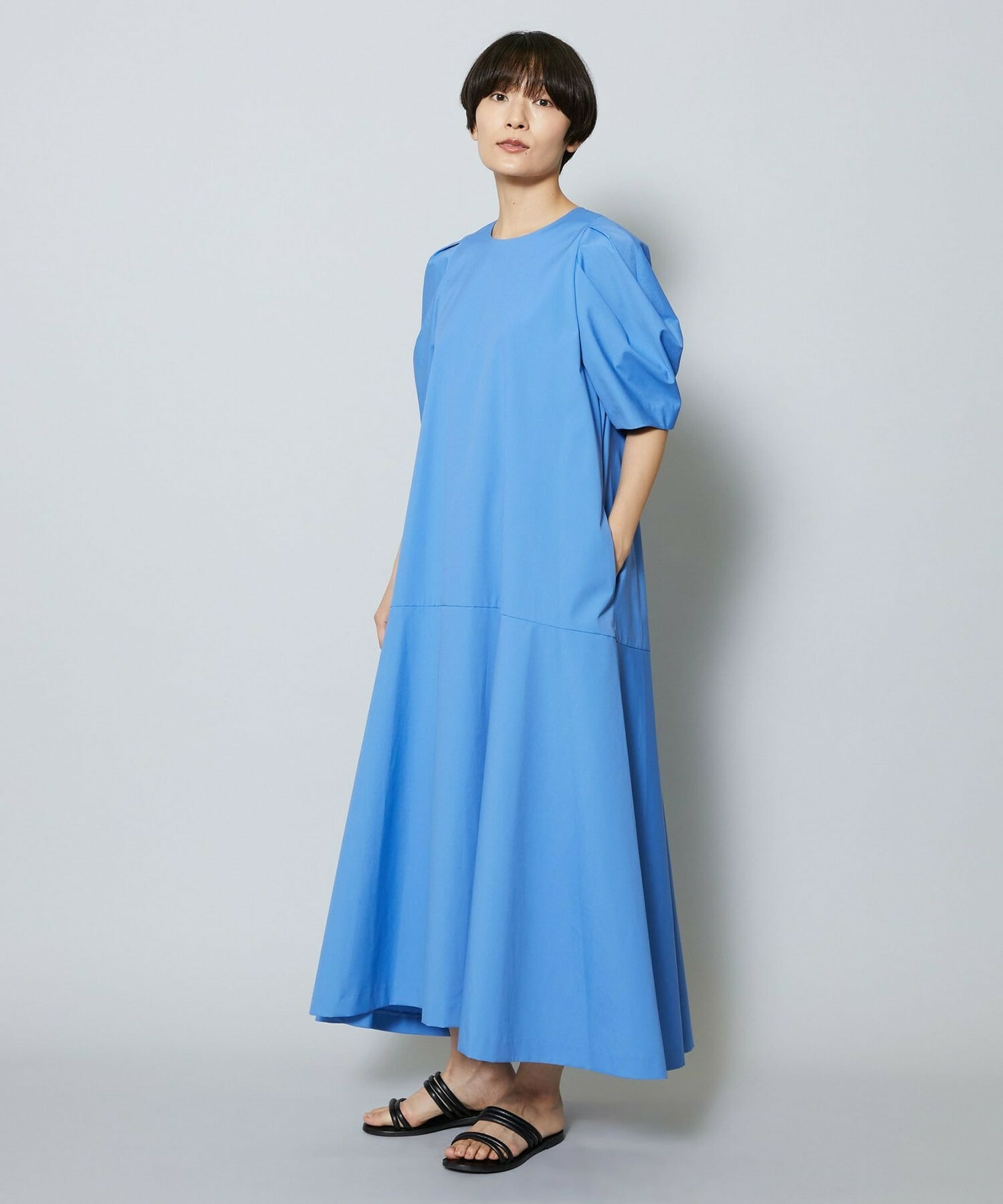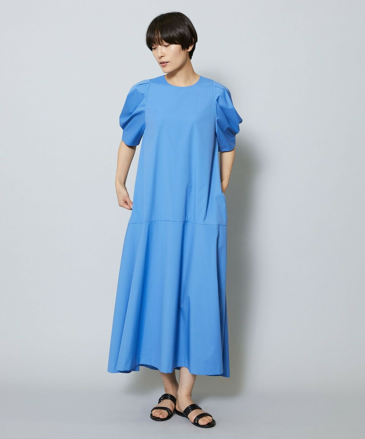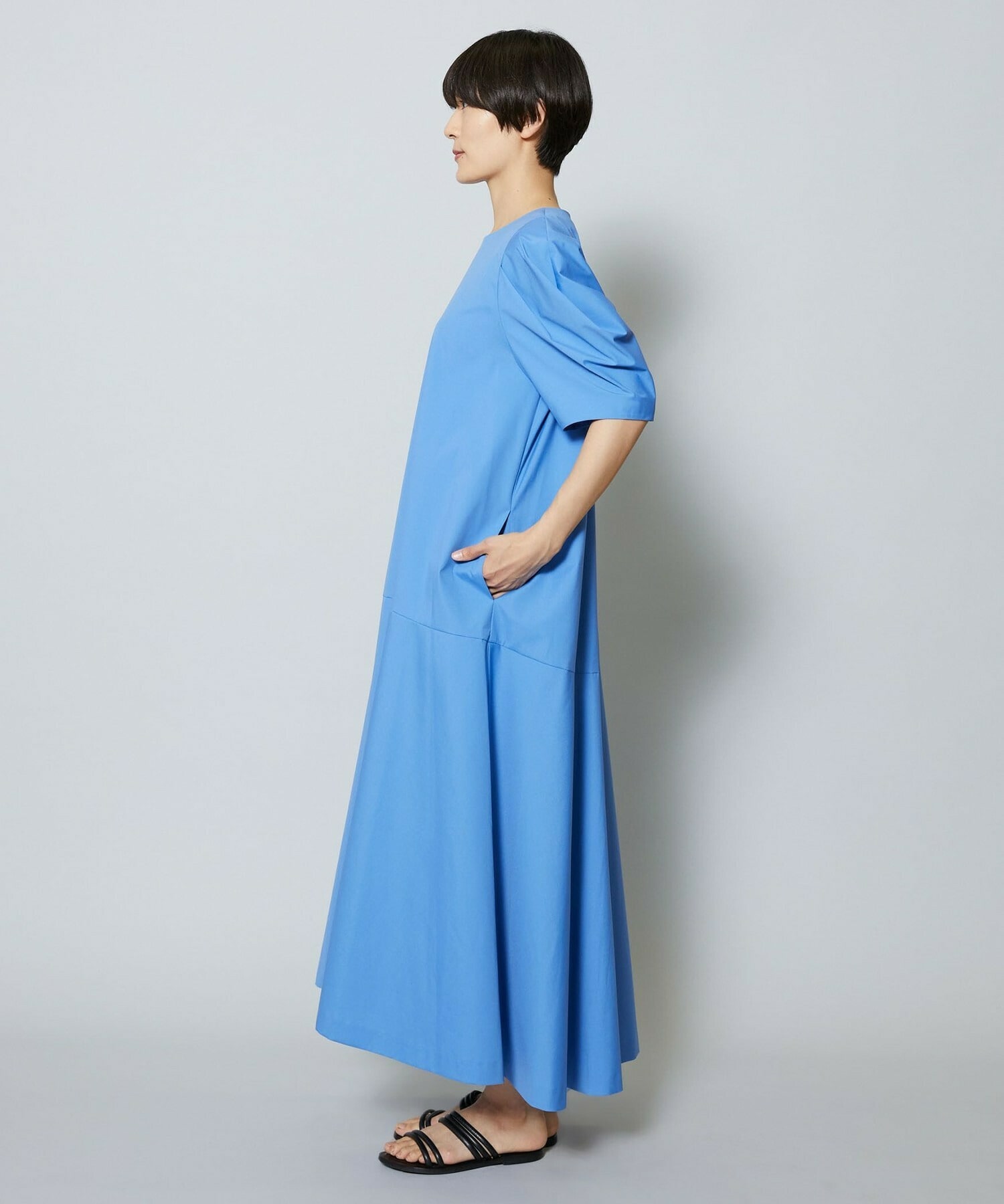 Aラインにたっぷりとした分量感を出したフレアーシルエットのワンピース。