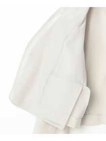前身頃はエアリーな透け素材(オーガンジー素材)で二重仕立てに仕上げています。オーガンジーの重なった動きのある表情が女性らしく特別感を引き立てています。