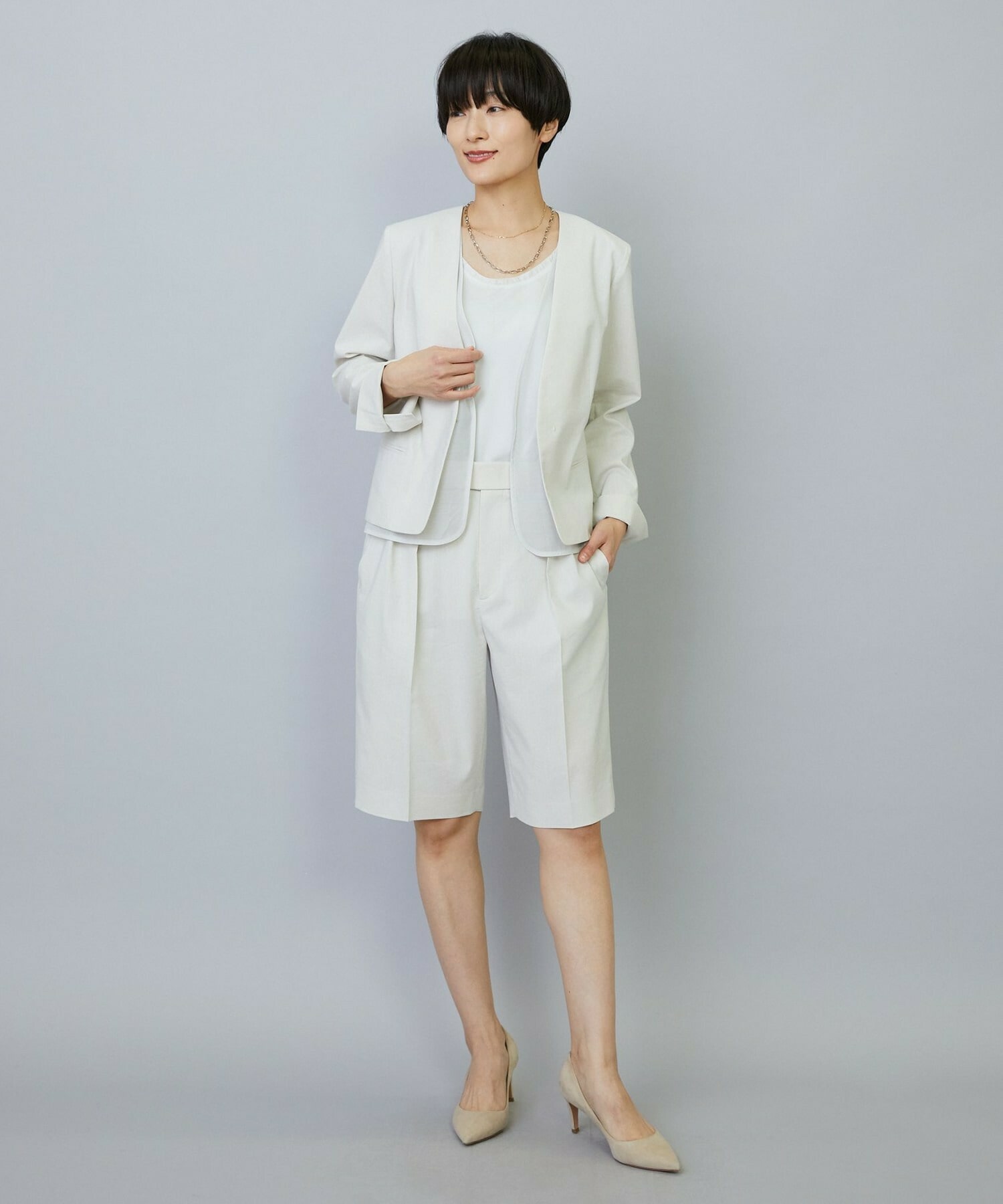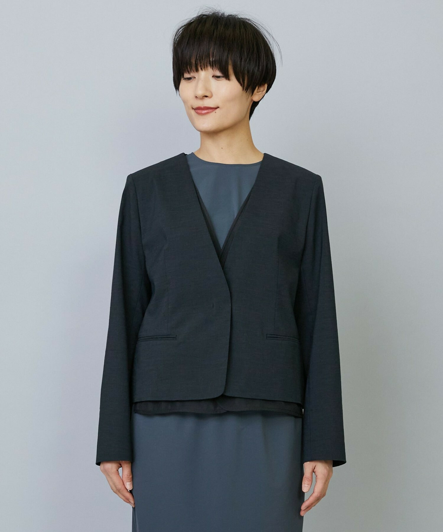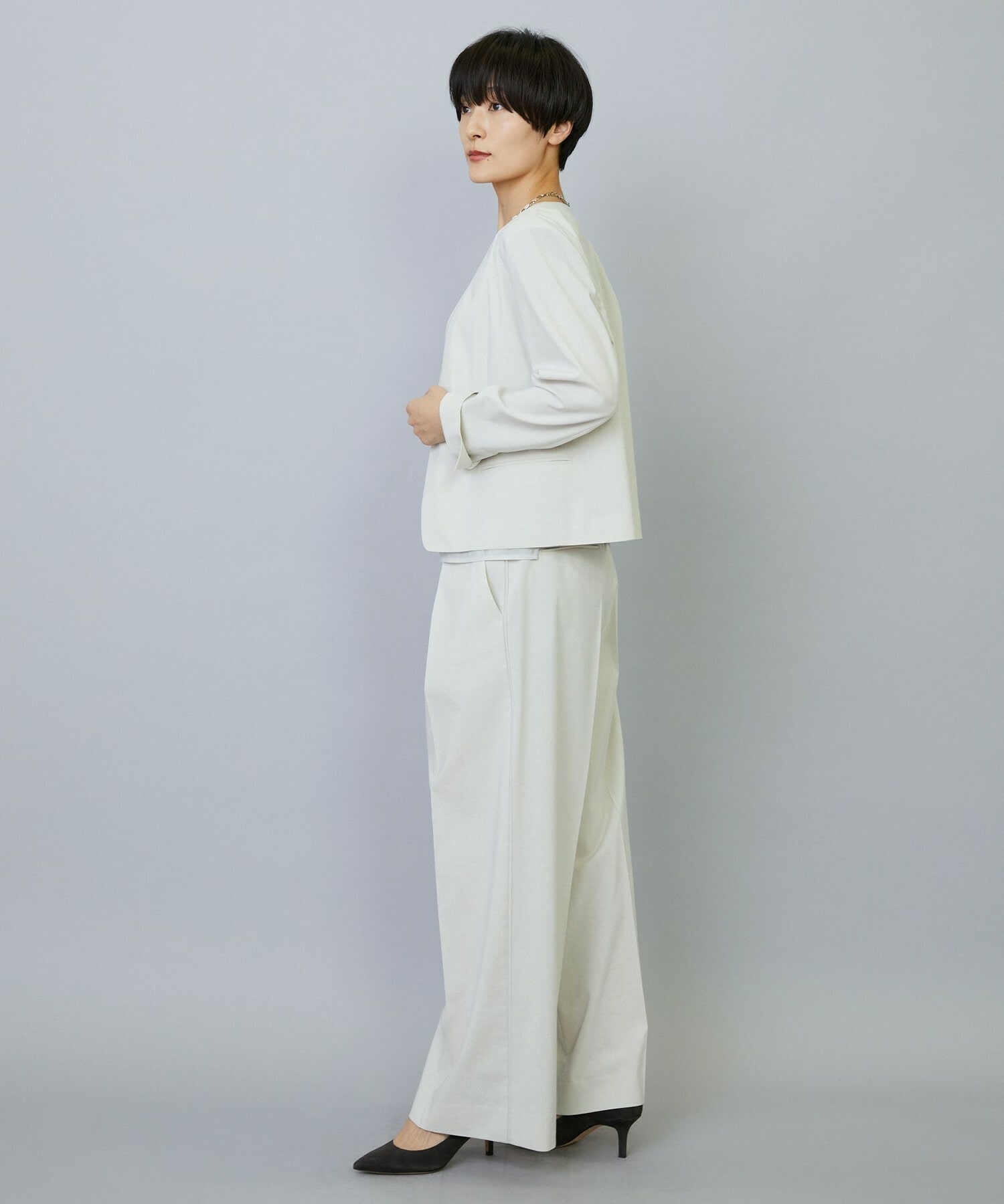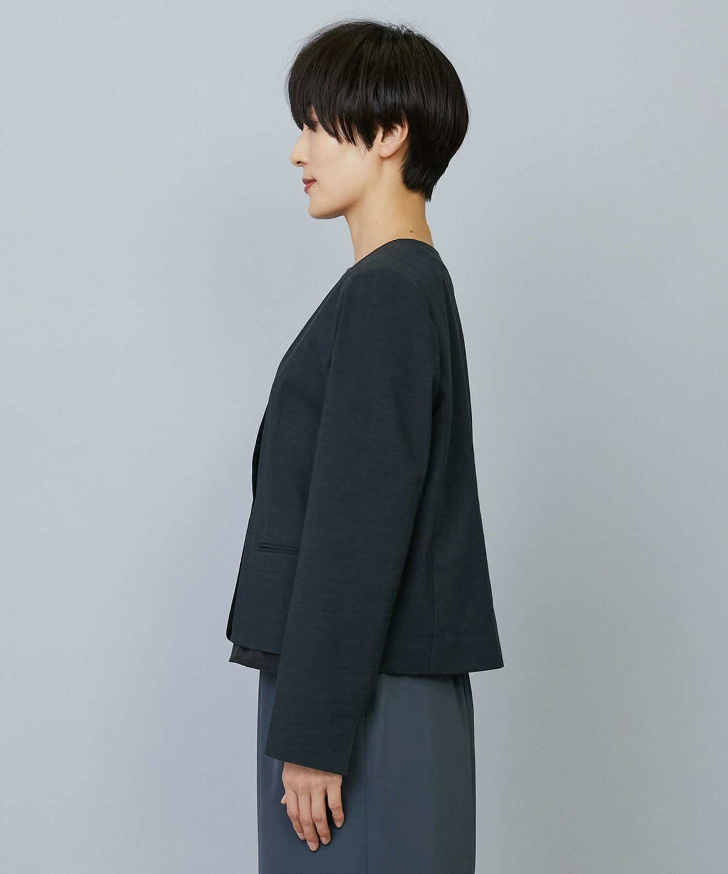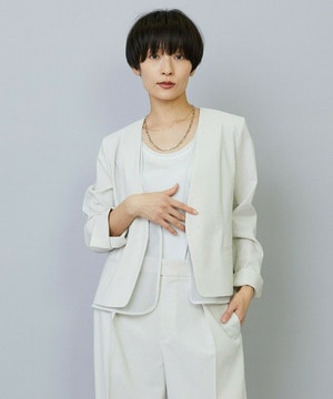 【Lサイズ】スタイリスト戸野塚かおるコラボ ドライリネンストレッチノーカラージャケット