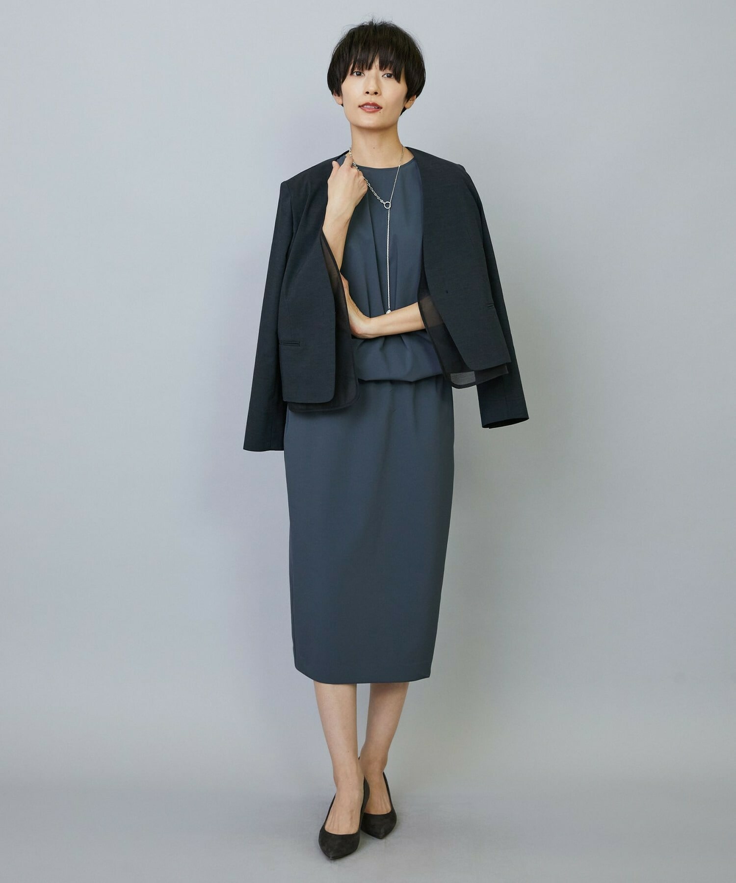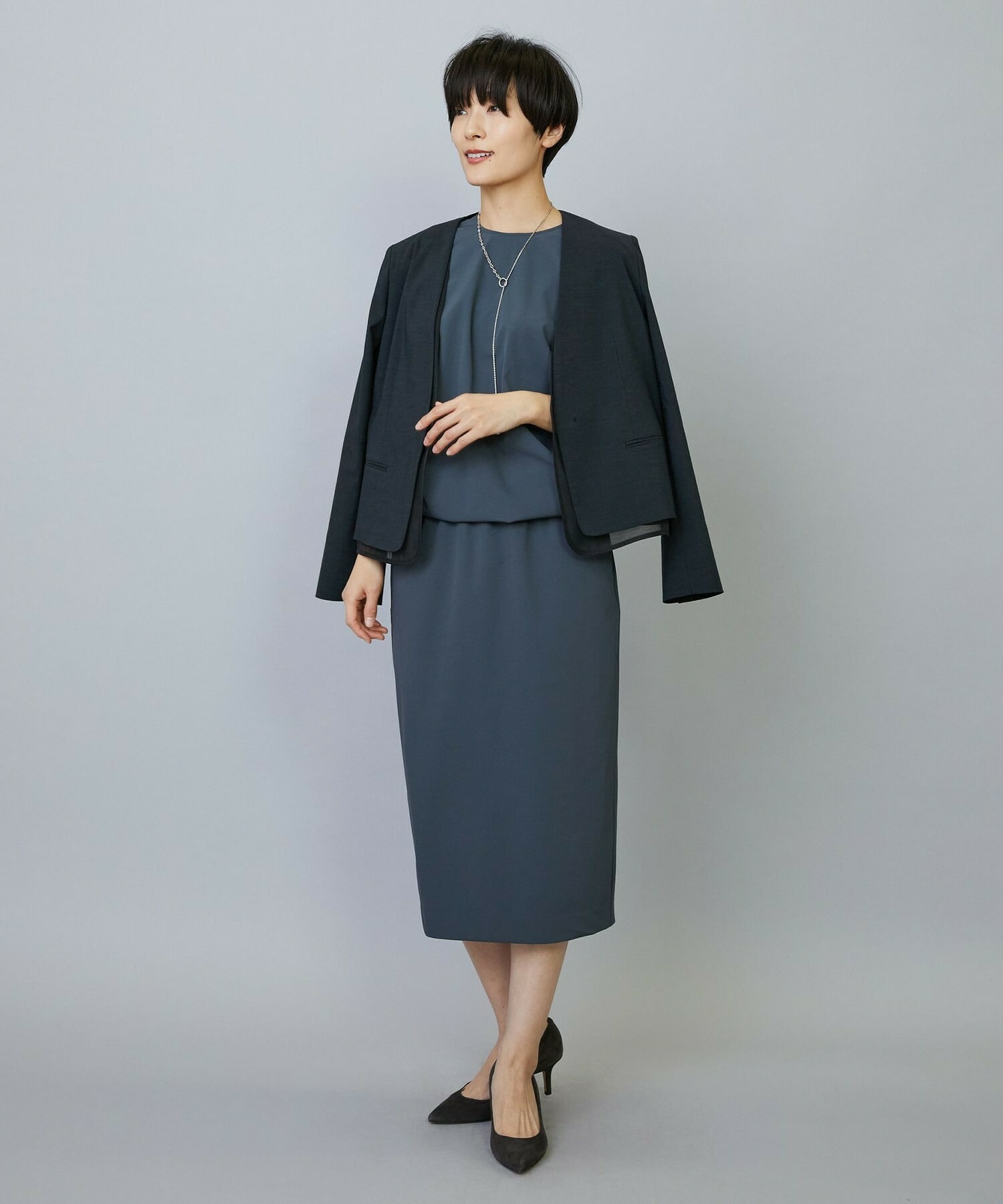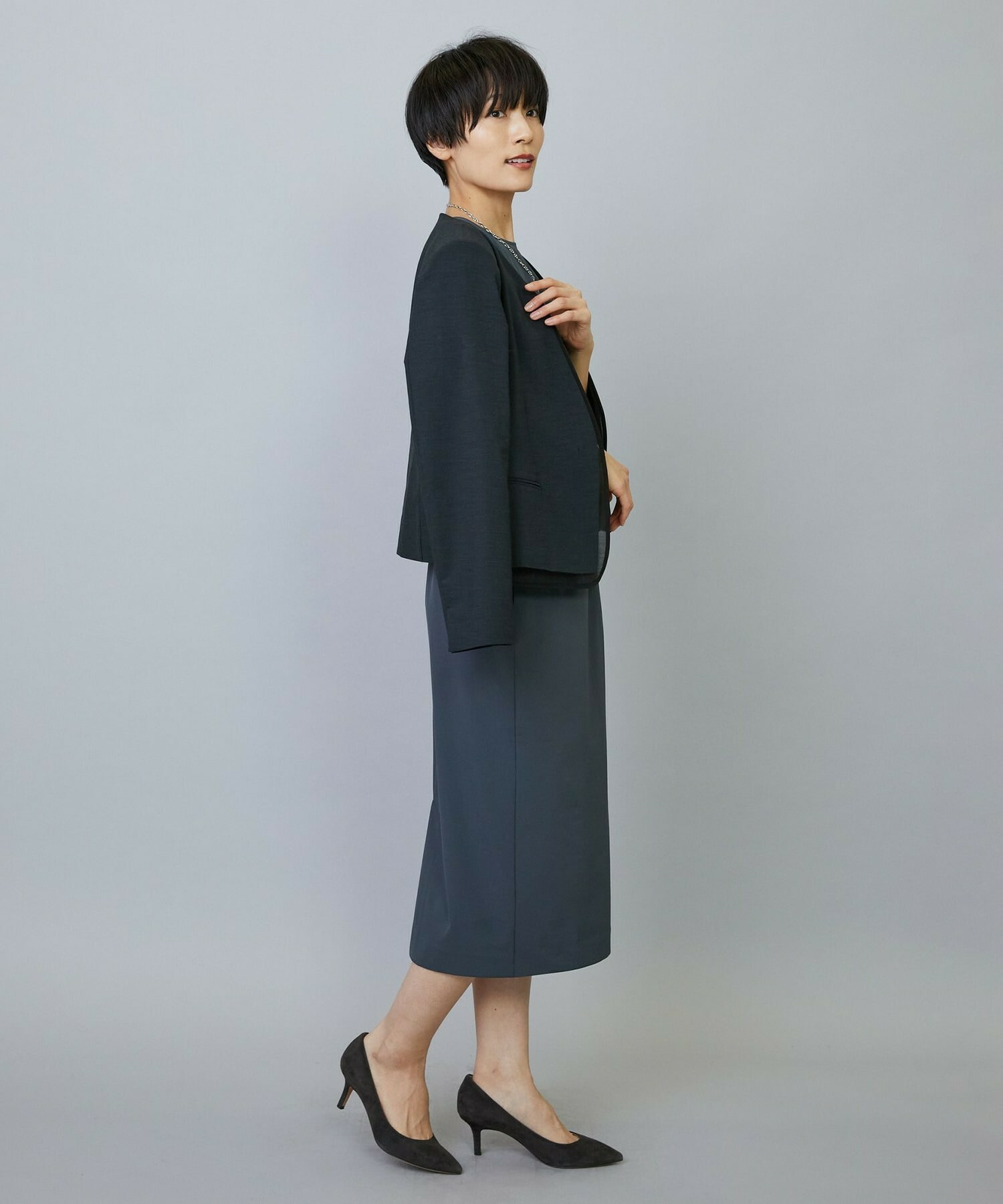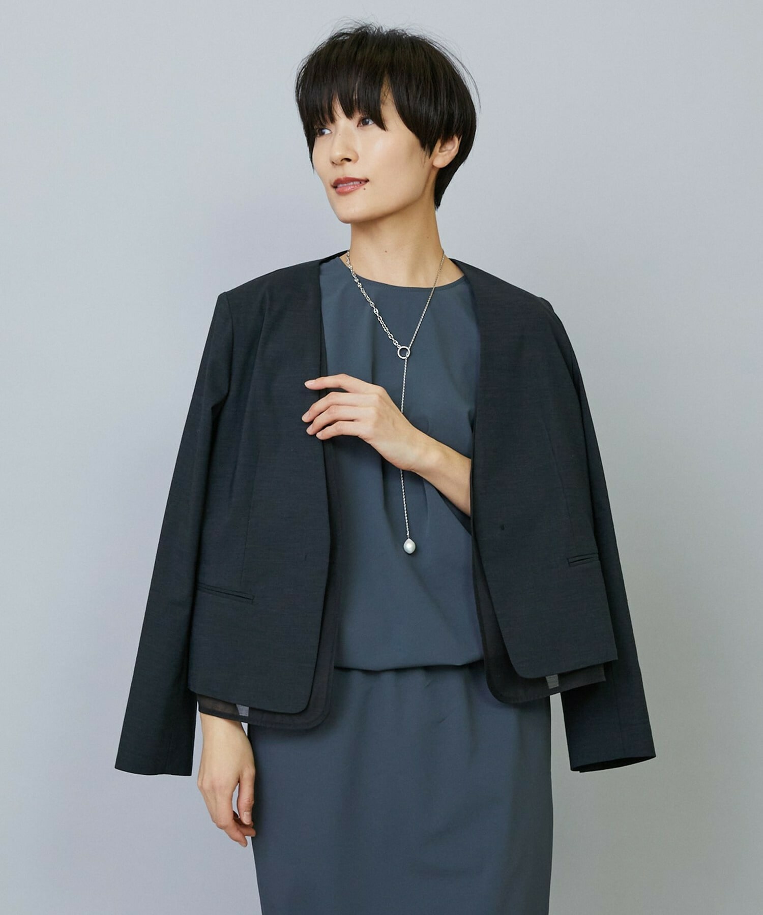 【Lサイズ】スタイリスト戸野塚かおるコラボ ドライリネンストレッチノーカラージャケット