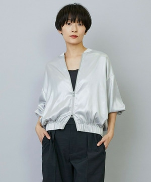 • 【MOGA】【Lサイズ】スタイリスト戸野塚かおるコラボ ネイルヴィンテージサテンショートブルゾン 詳細画像 シルバー 1