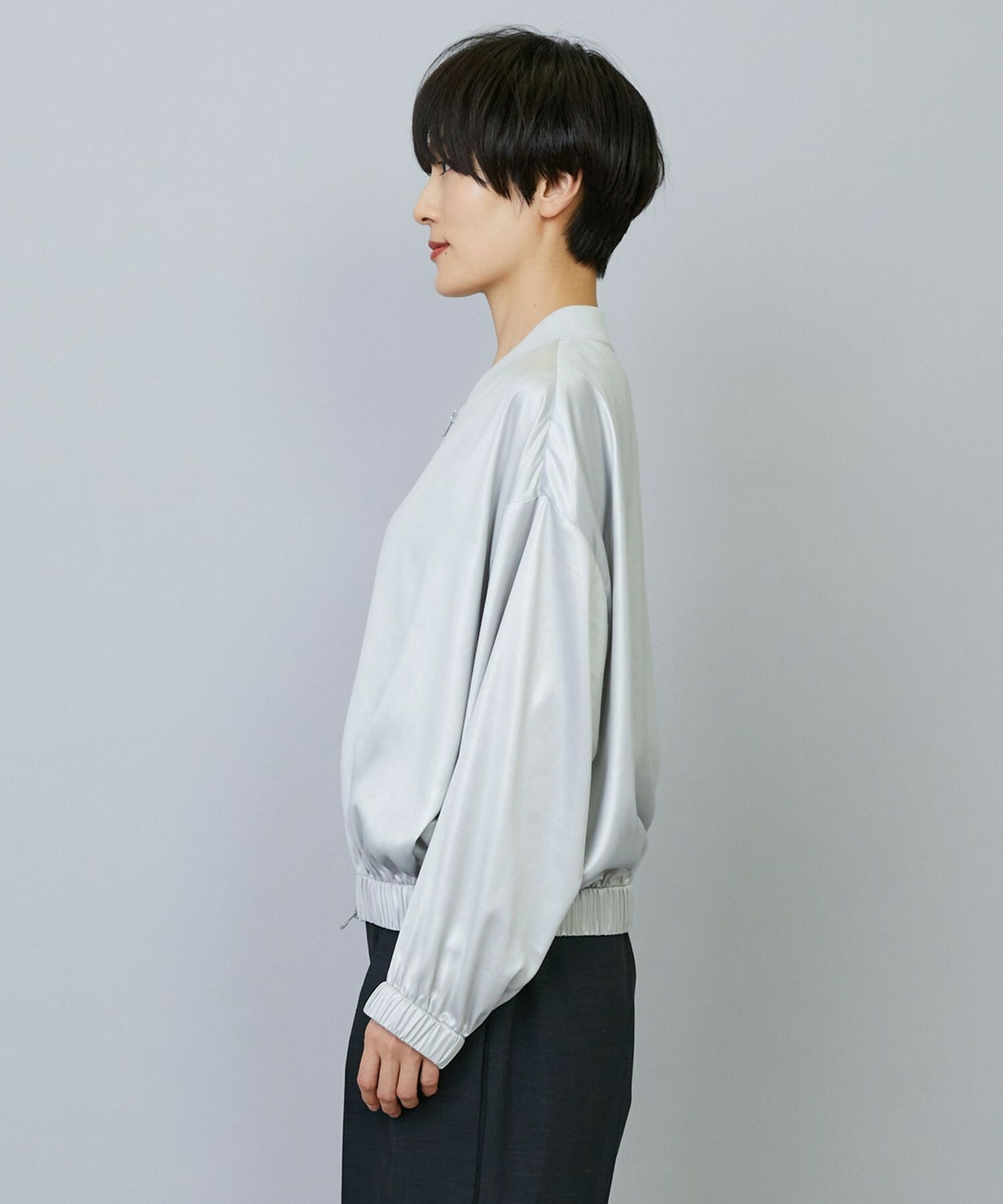 • 【MOGA】【Lサイズ】スタイリスト戸野塚かおるコラボ ネイルヴィンテージサテンショートブルゾン 詳細画像 シルバー 4