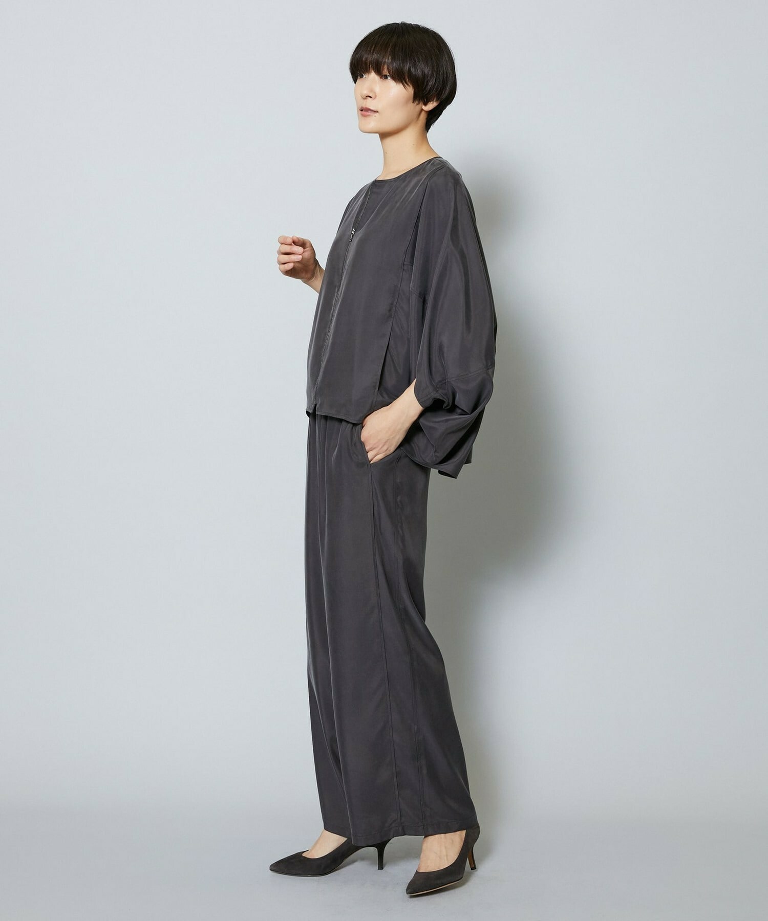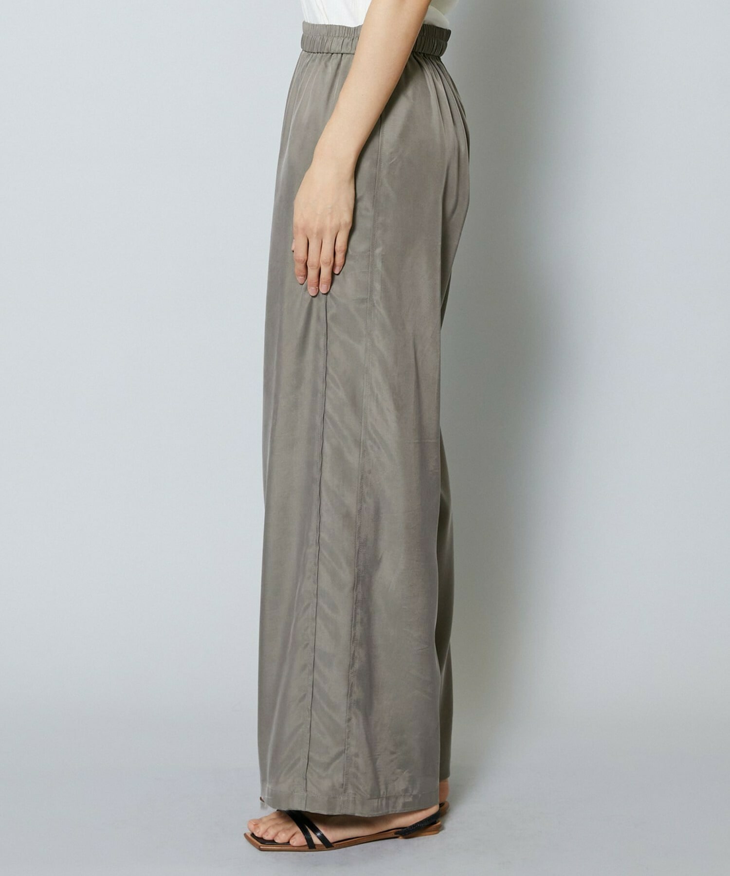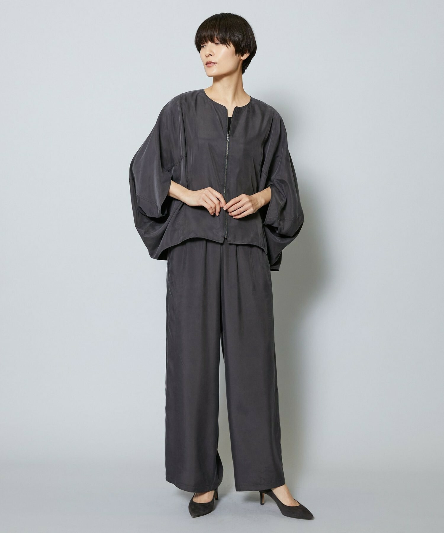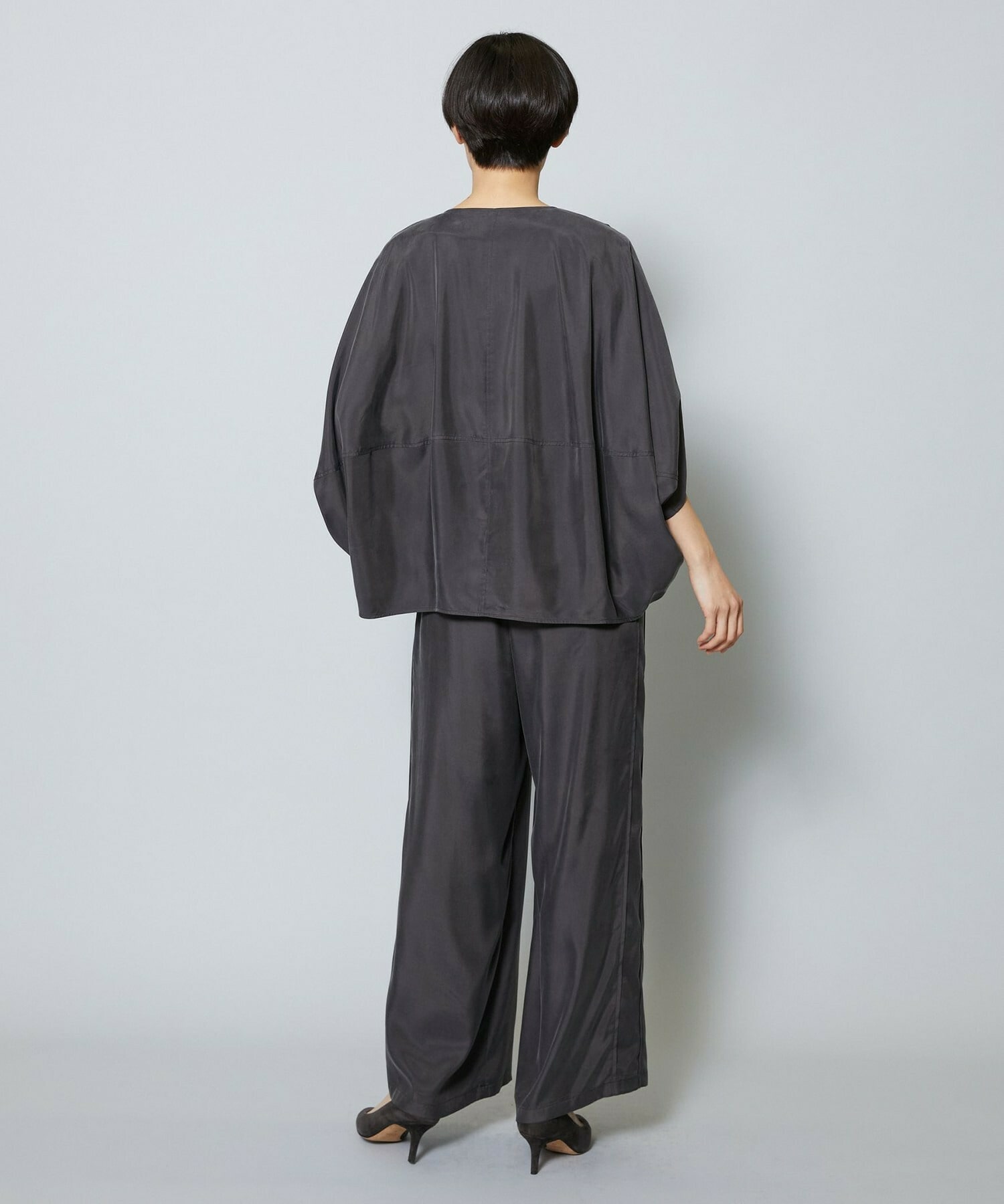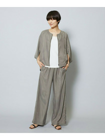 軽やかでとろみのある素材感で大人のリラックスムードあるワイドパンツ。サイドの切り替えのステッチを浮かせ、羽織と共通性のあるポイントにしています。セットアップでの着用の他、シャツやTシャツなどとも合わせやすく、幅広く汎用性のあるボトムです