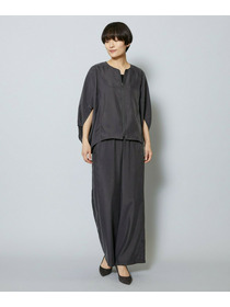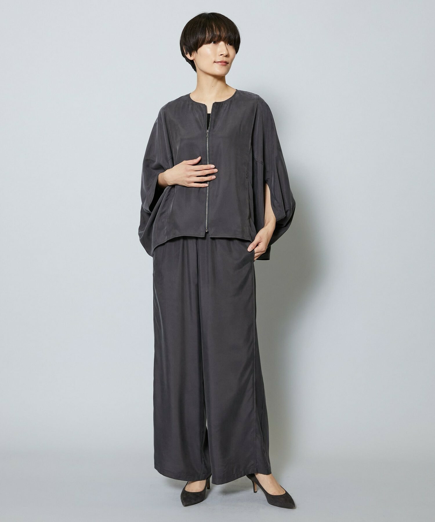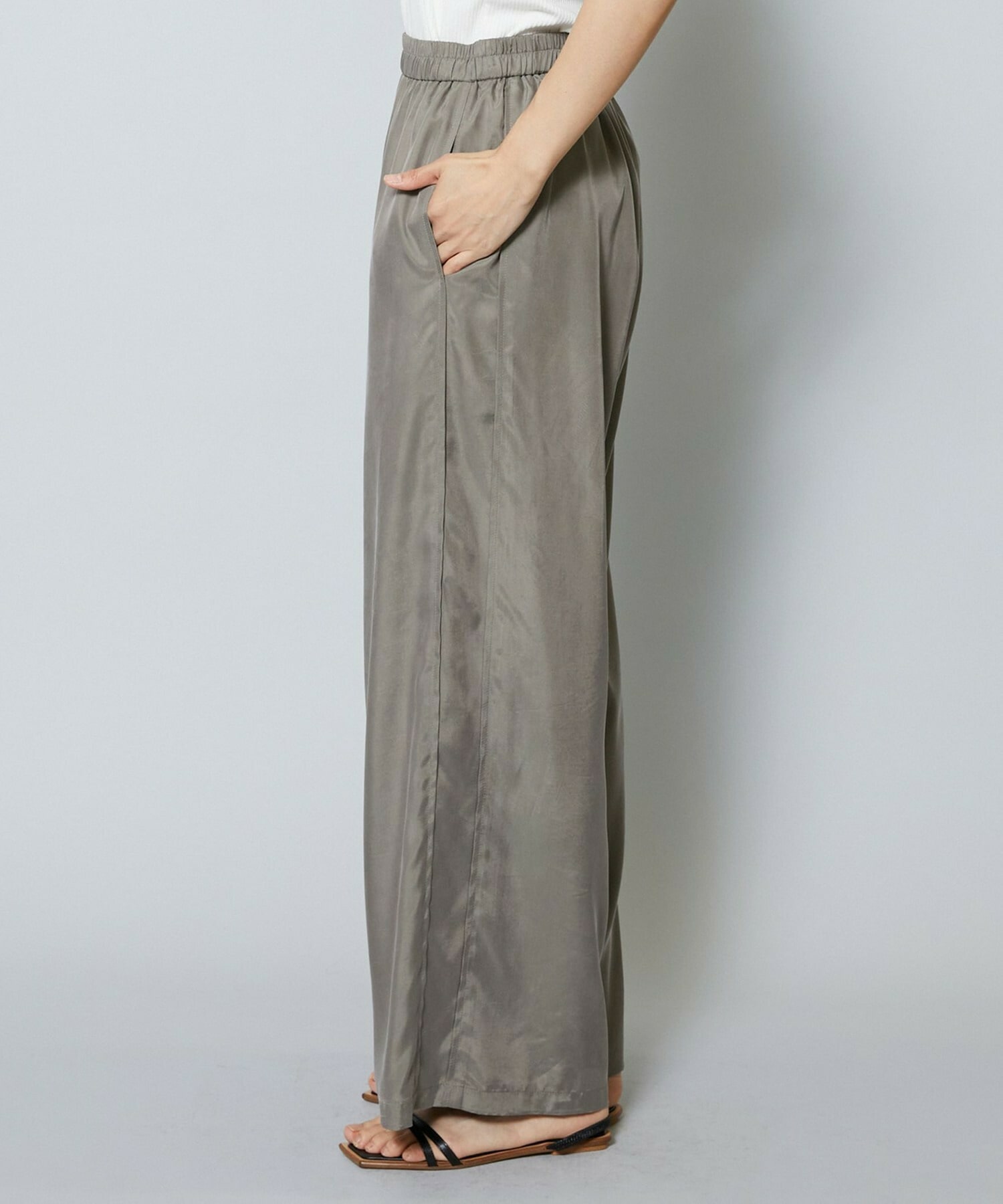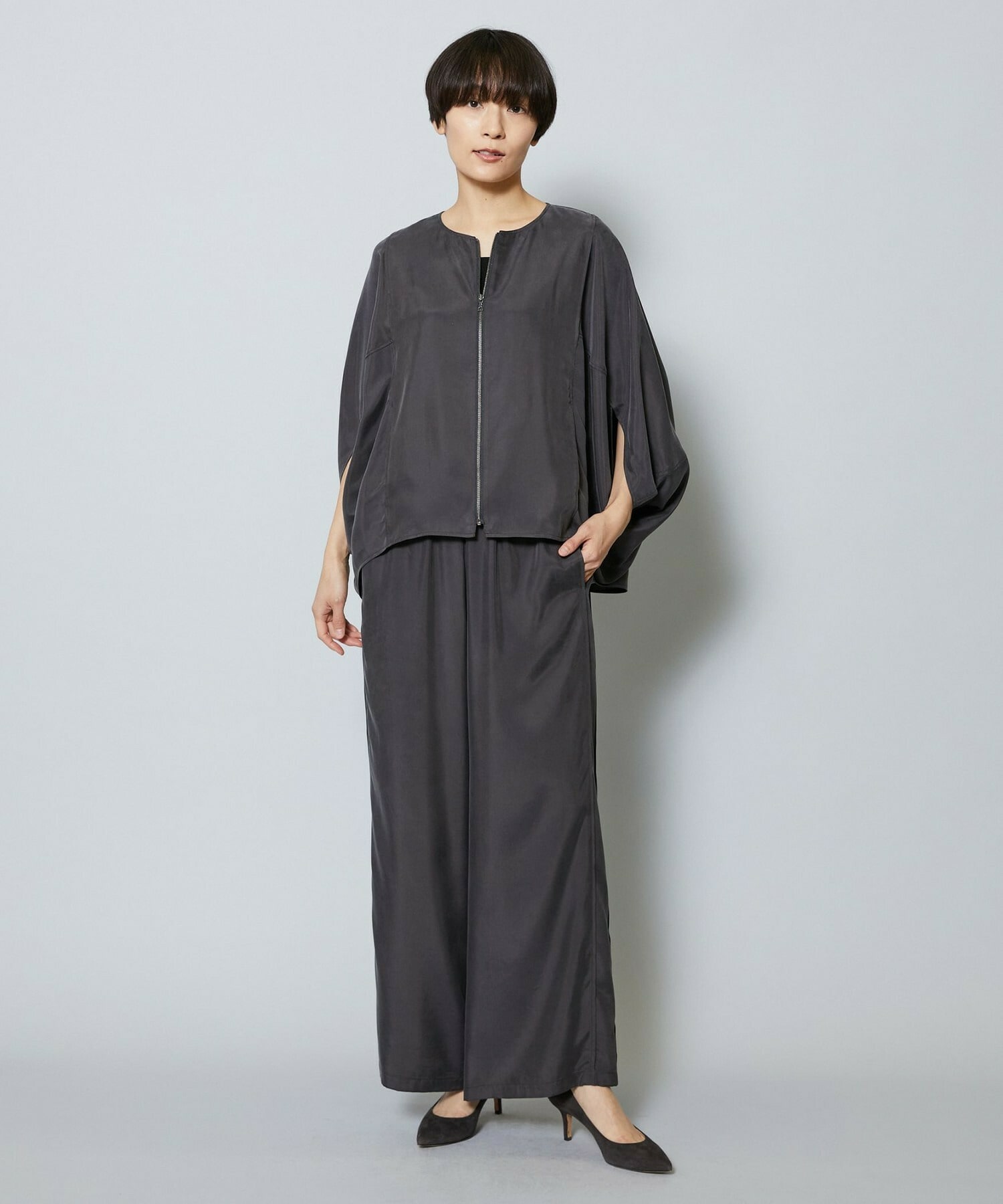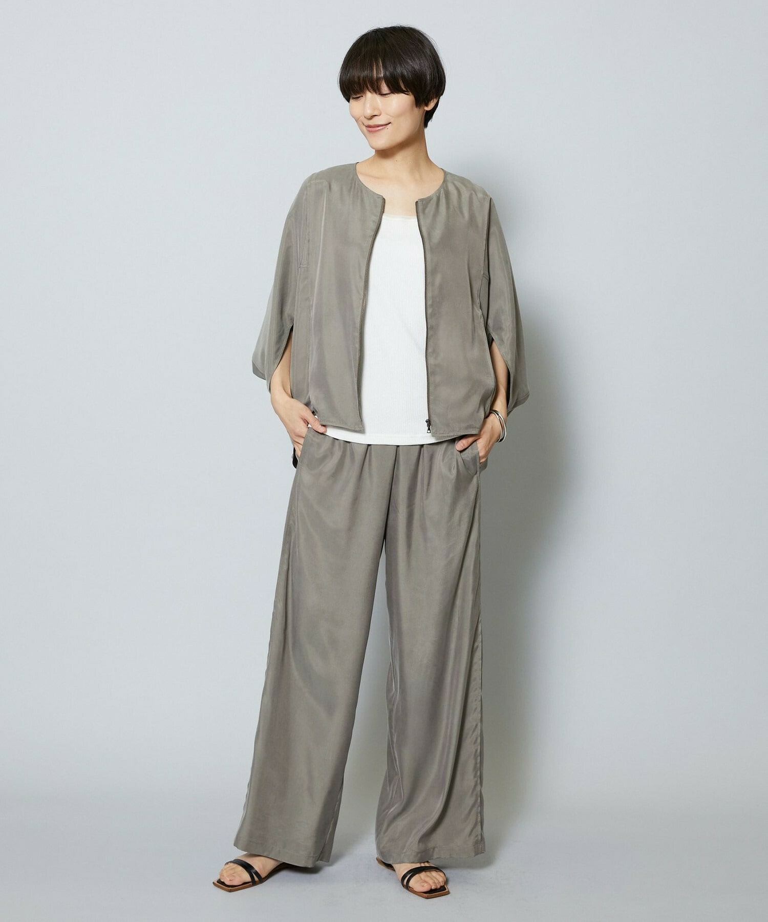 軽やかでとろみのある素材感で大人のリラックスムードあるワイドパンツ。サイドの切り替えのステッチを浮かせ、羽織と共通性のあるポイントにしています。セットアップでの着用の他、シャツやTシャツなどとも合わせやすく、幅広く汎用性のあるボトムです