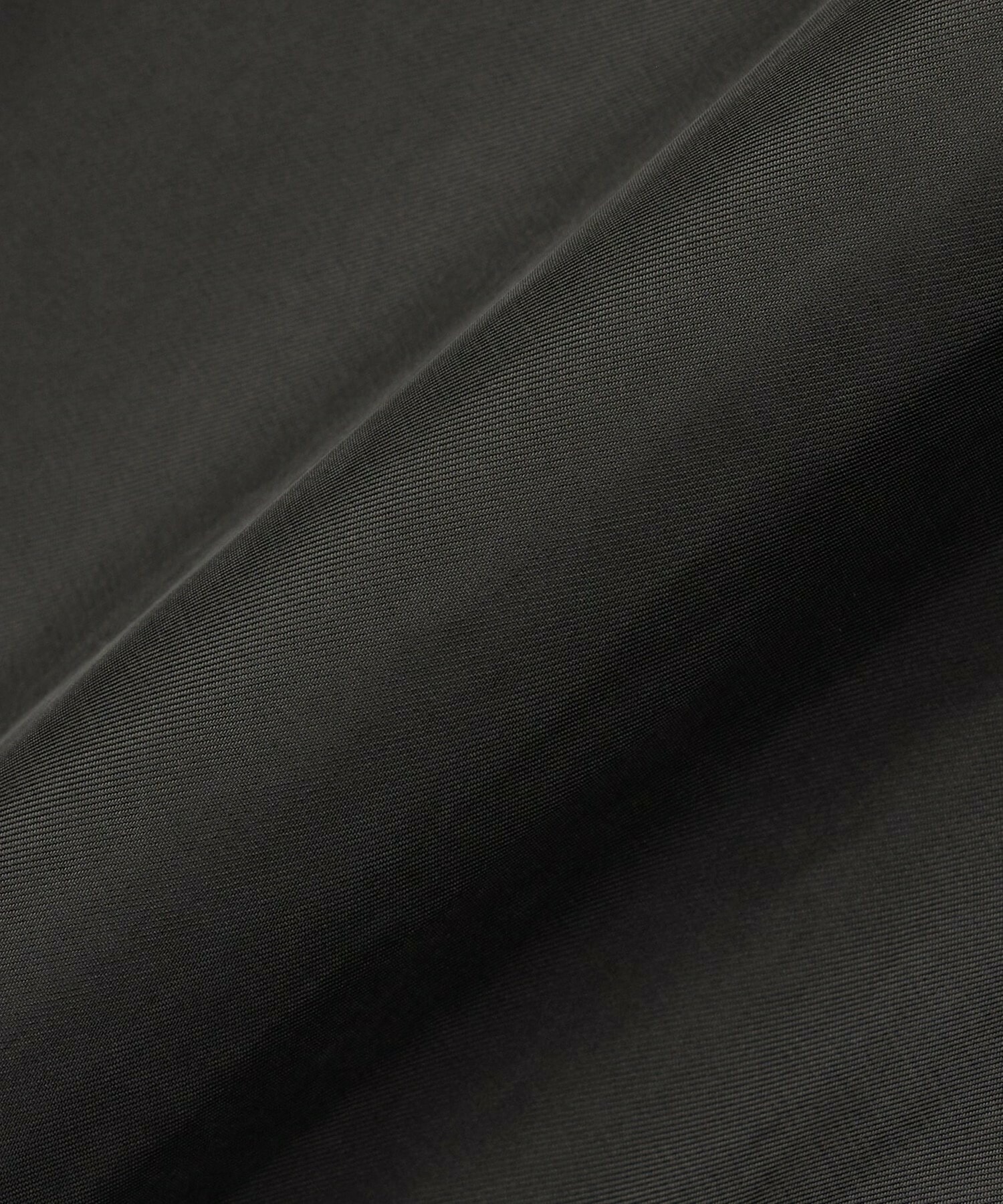 程良い光沢感のあるシルキーなキュプラとハイマルチの柔らかいポリエステルを掛け合わせたハイブリッド生地。キュプラ100%に比べシワになりにくく、弱めのフィブリル加工を施しているのでキレイなだけじゃないソフトなビンテージ感がこなれた印象に。