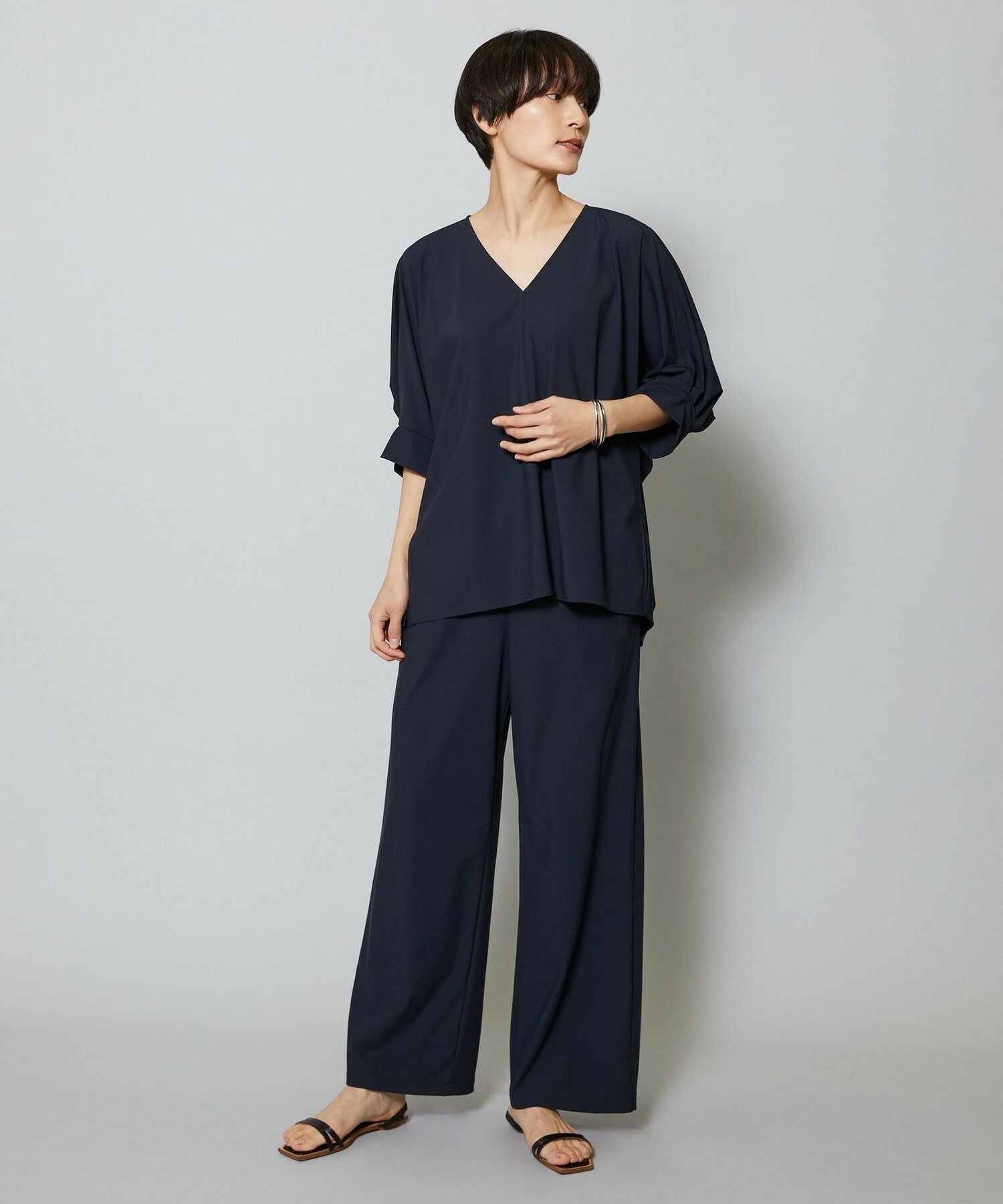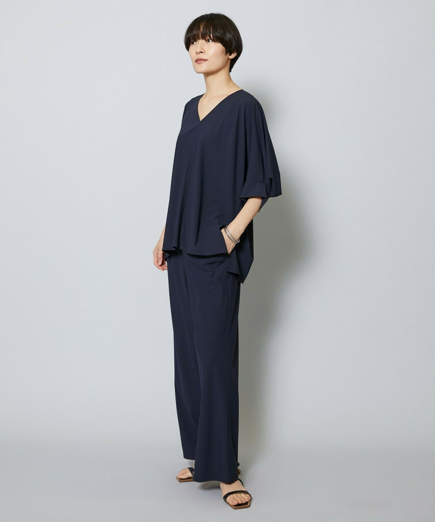 • 【MOGA】【Lサイズ】クールトリコットVネックドルマンスリーブトップス 詳細画像 ネイビー 24