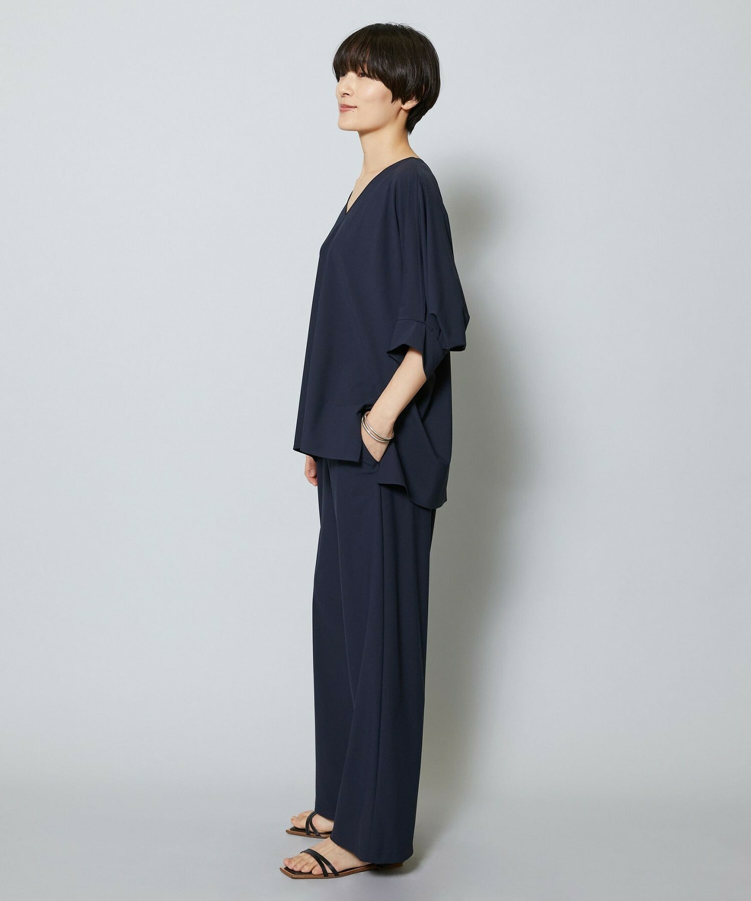 • 【MOGA】【Lサイズ】クールトリコットVネックドルマンスリーブトップス 詳細画像 ネイビー 9