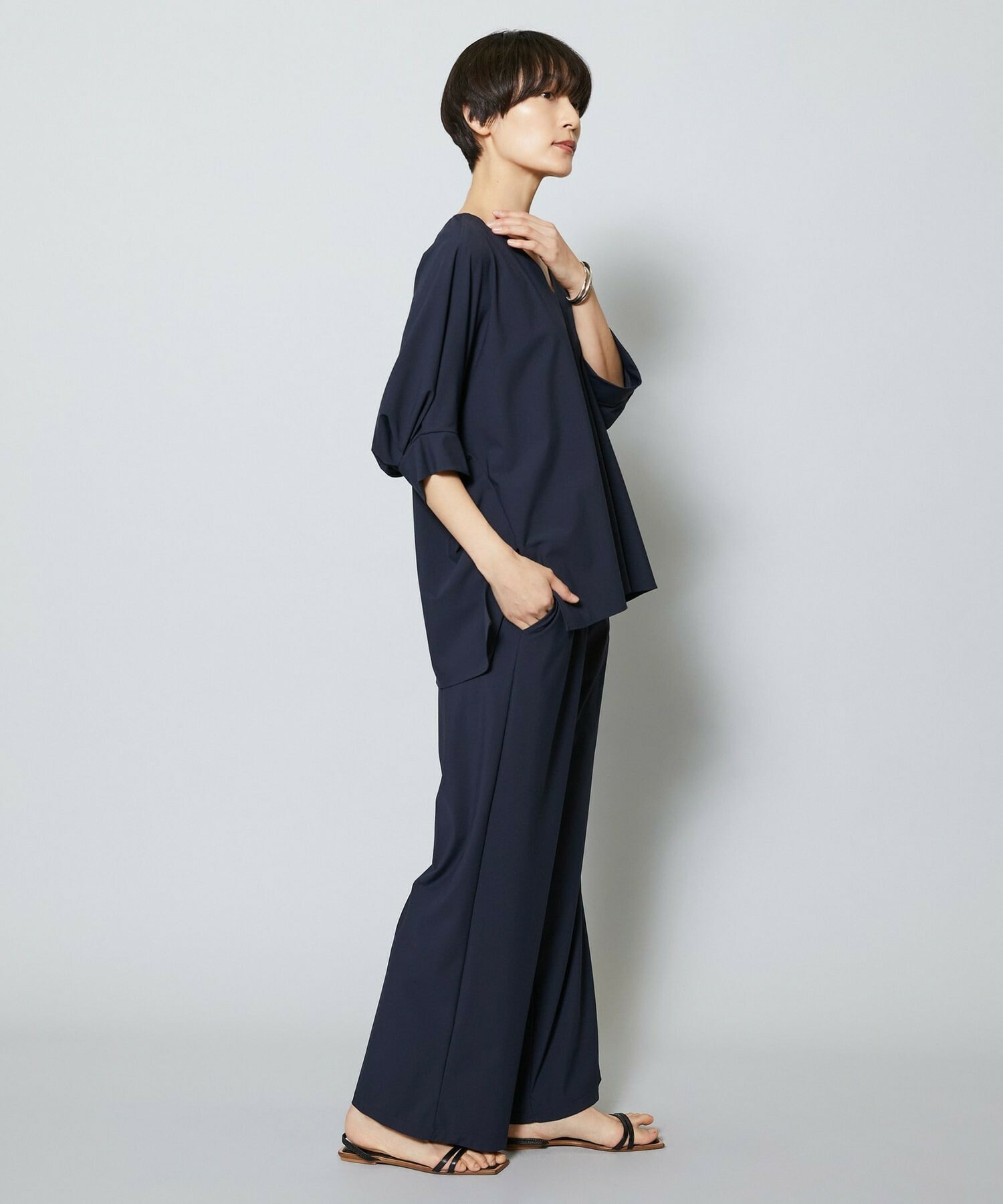 • 【MOGA】【Lサイズ】クールトリコットVネックドルマンスリーブトップス 詳細画像 ネイビー 21